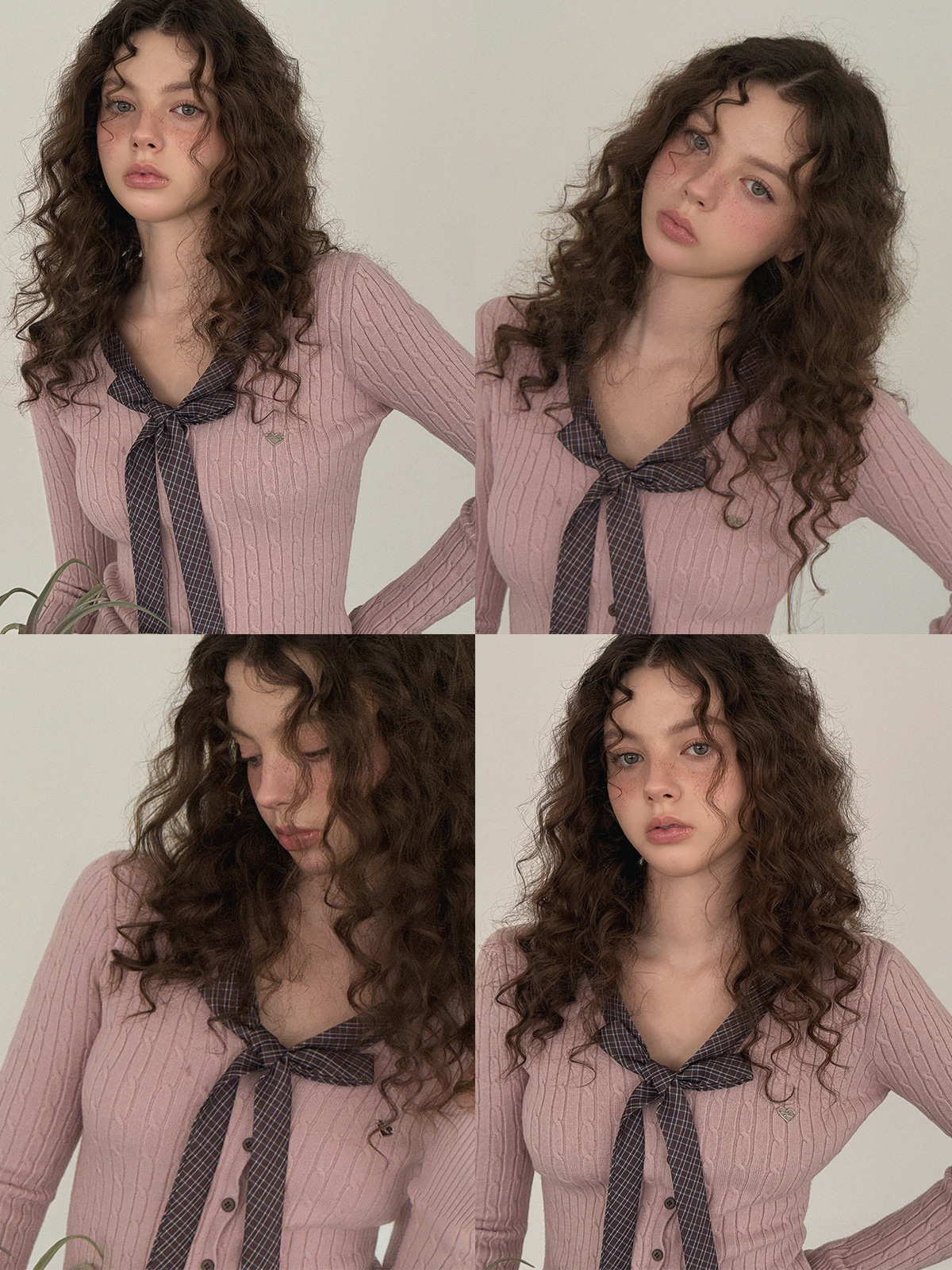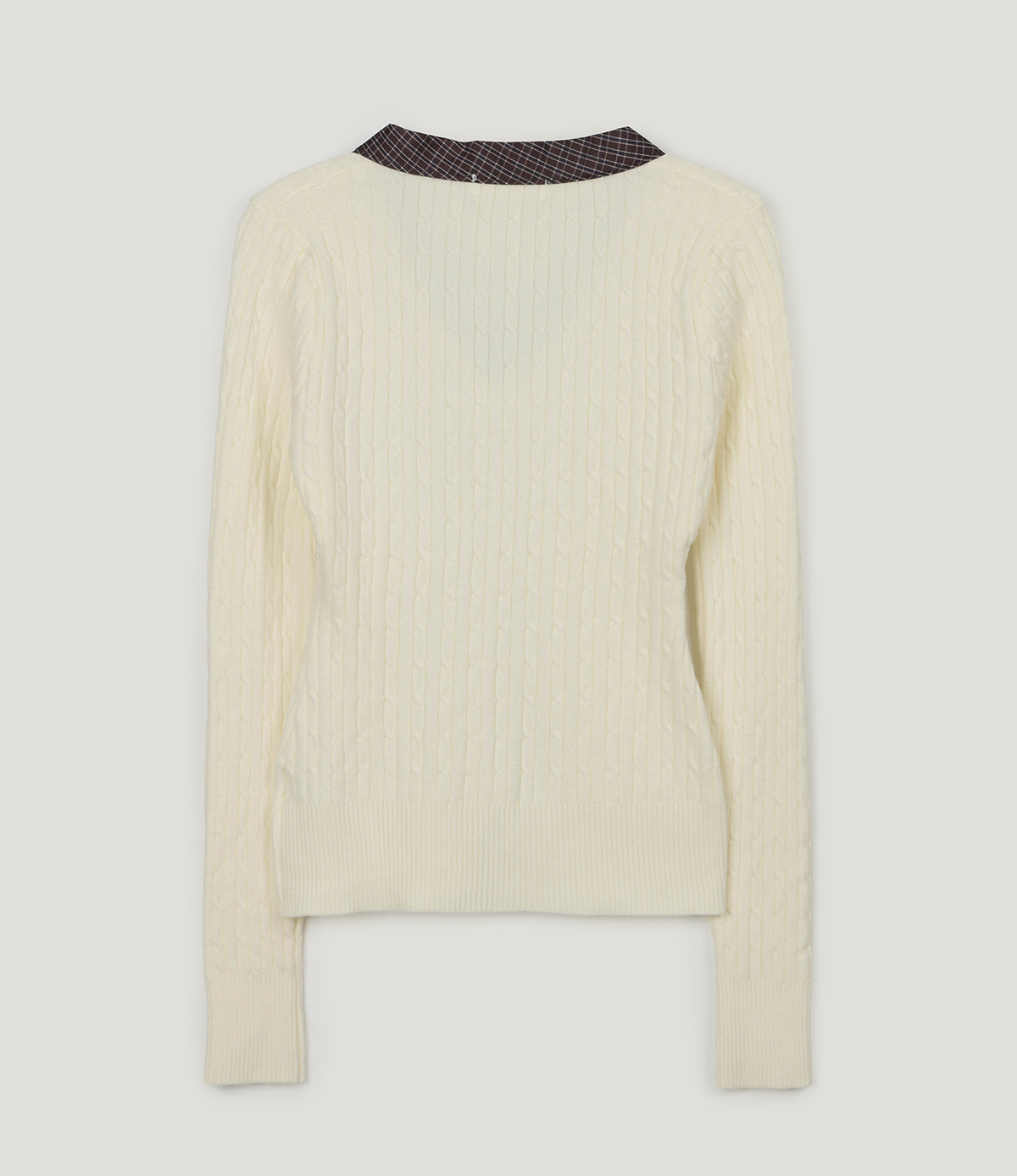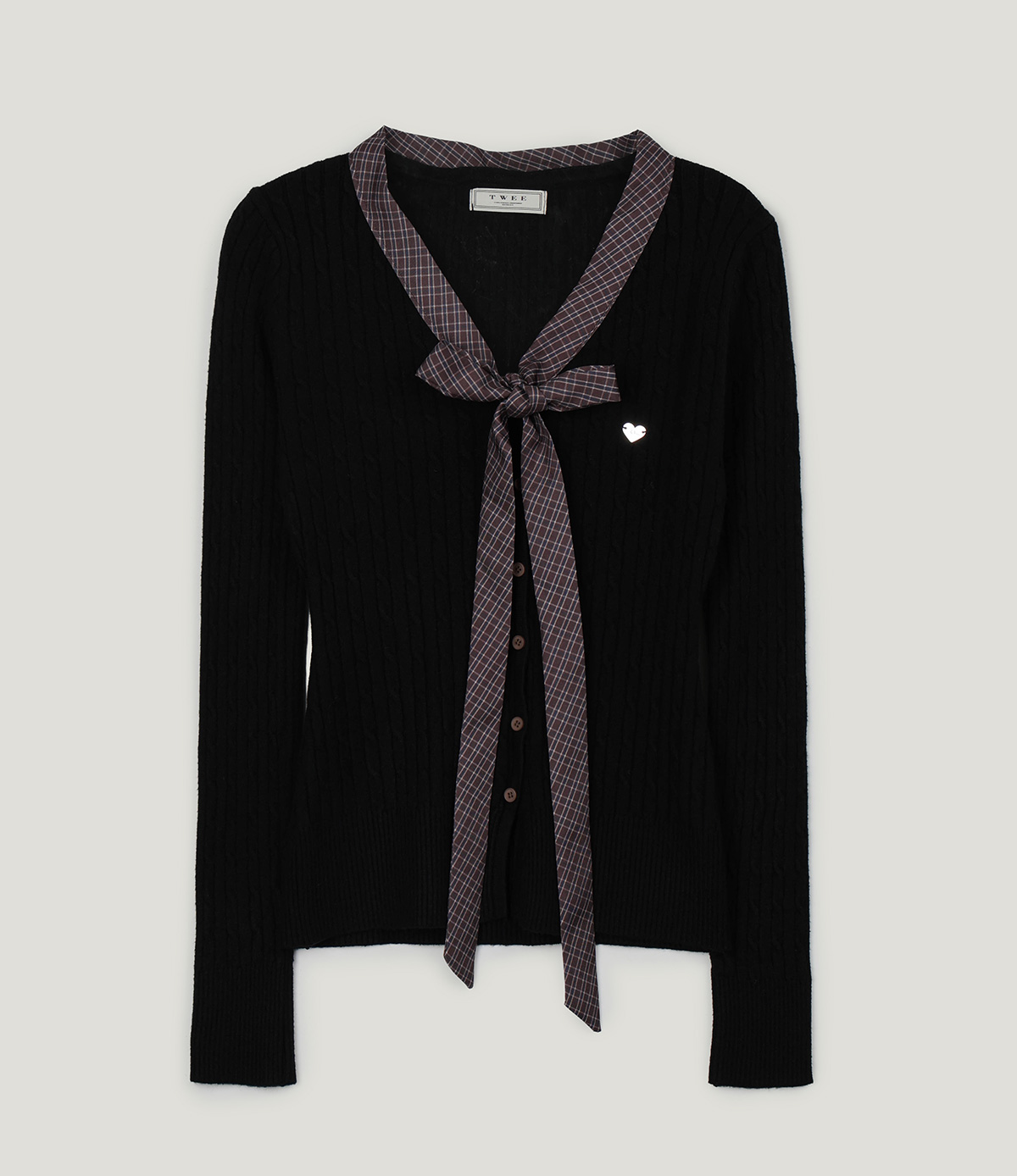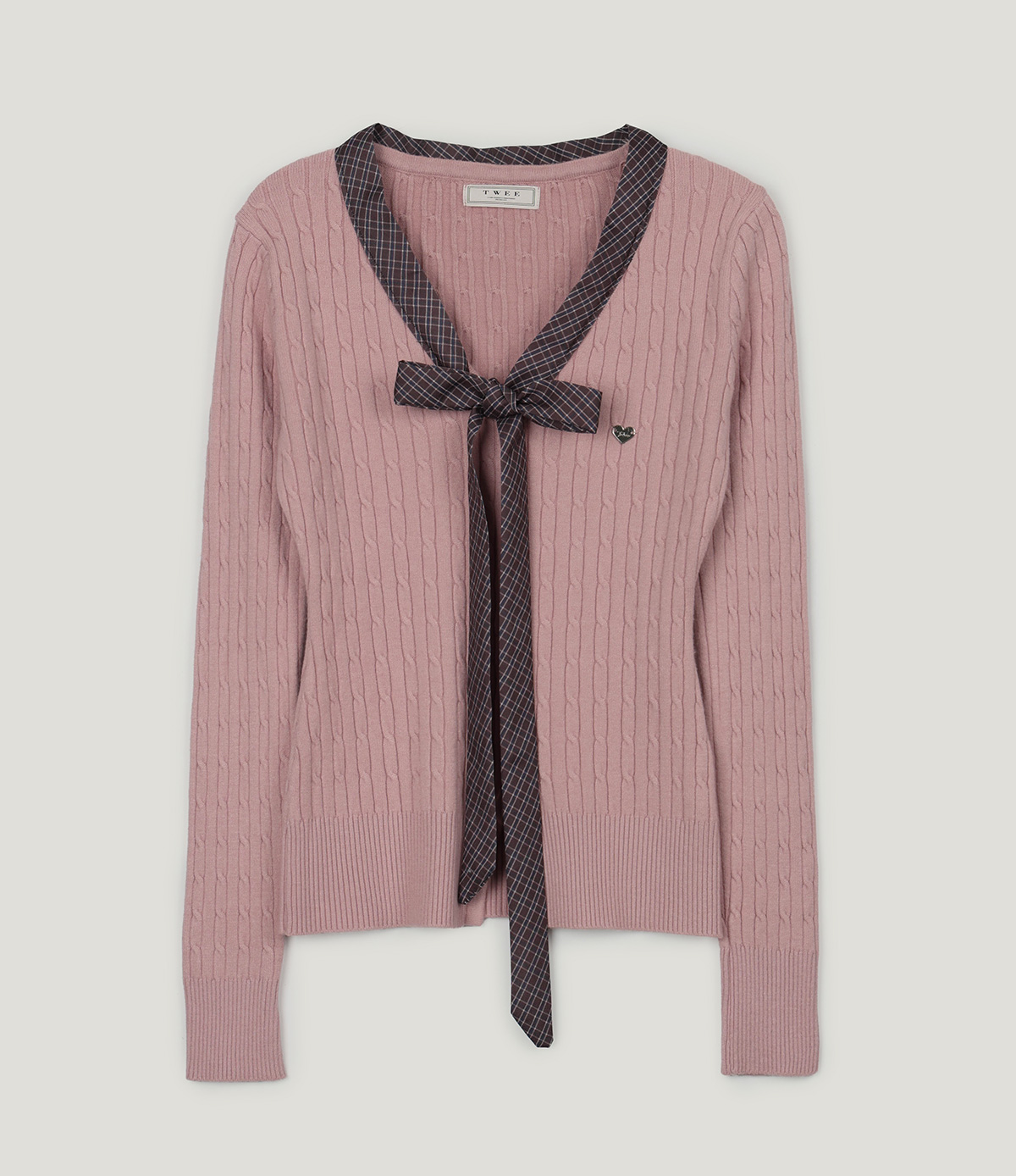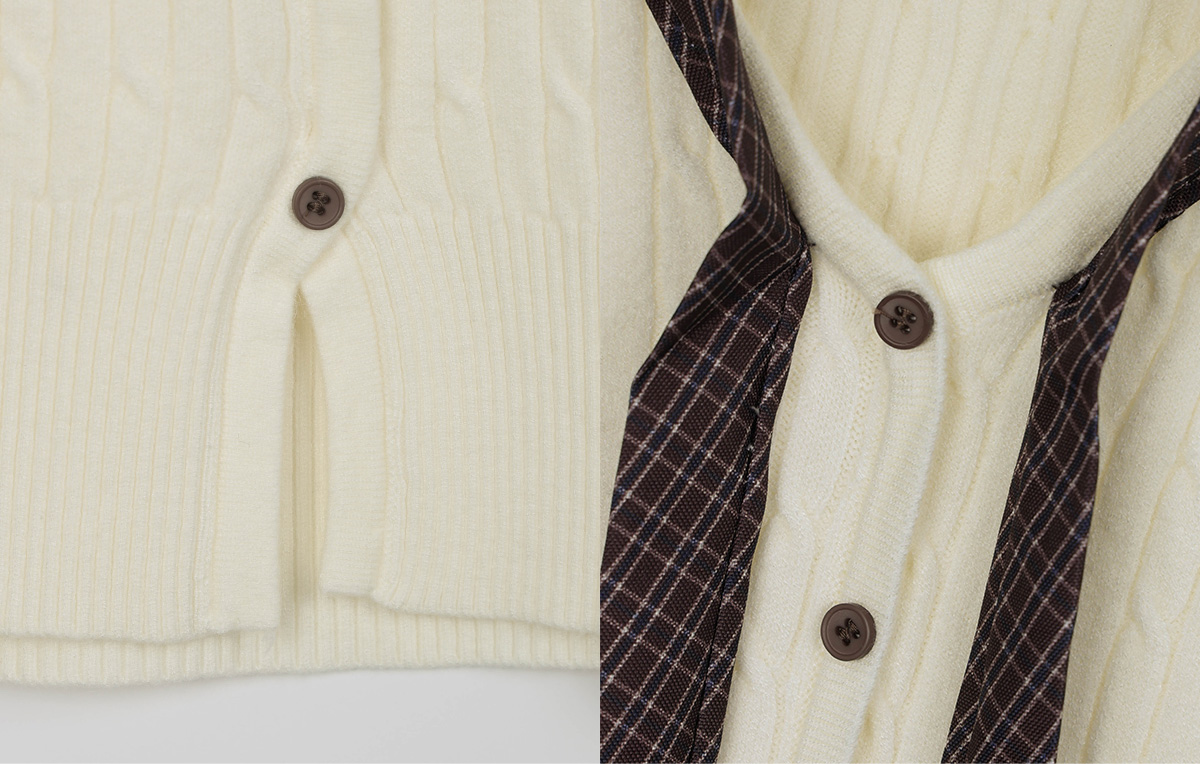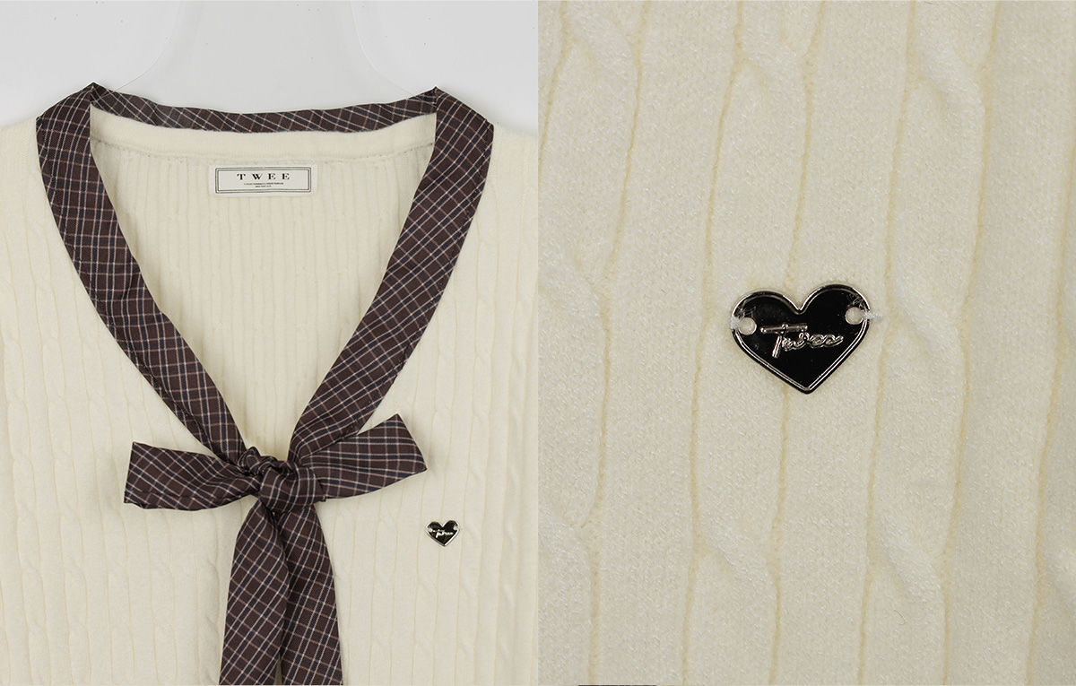 Coron Check Ribbon V-neck Long Sleeve Knit