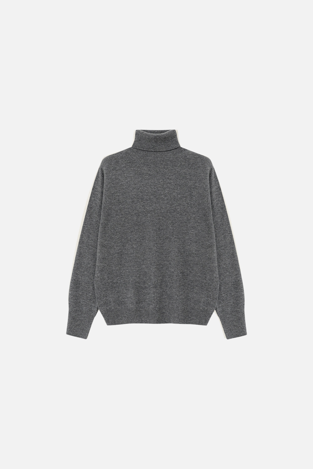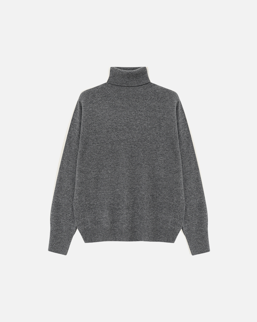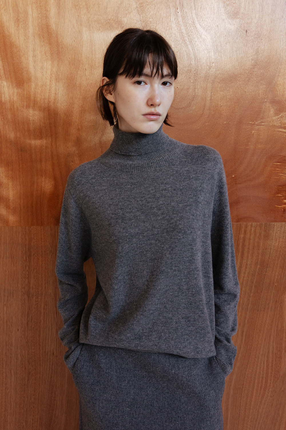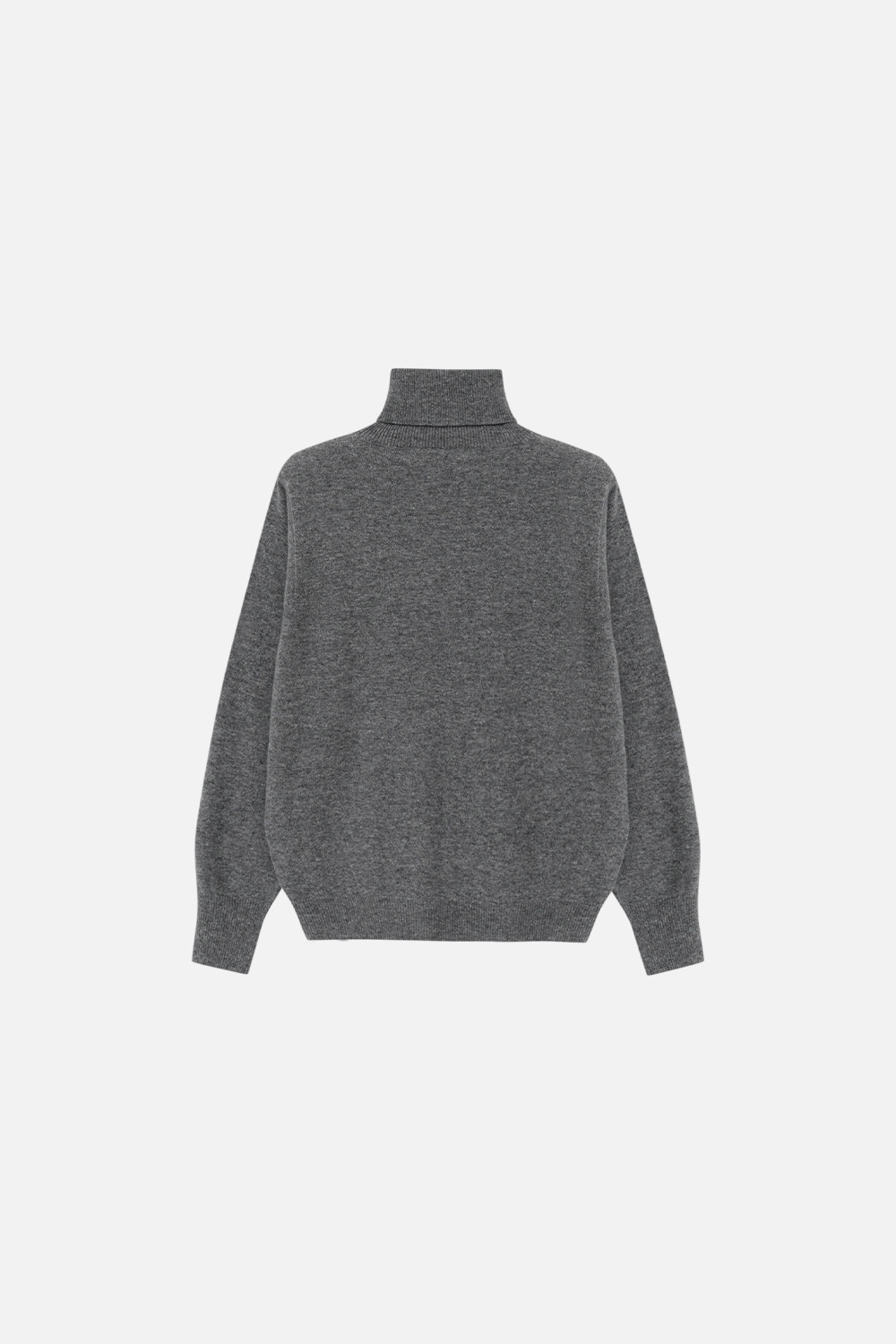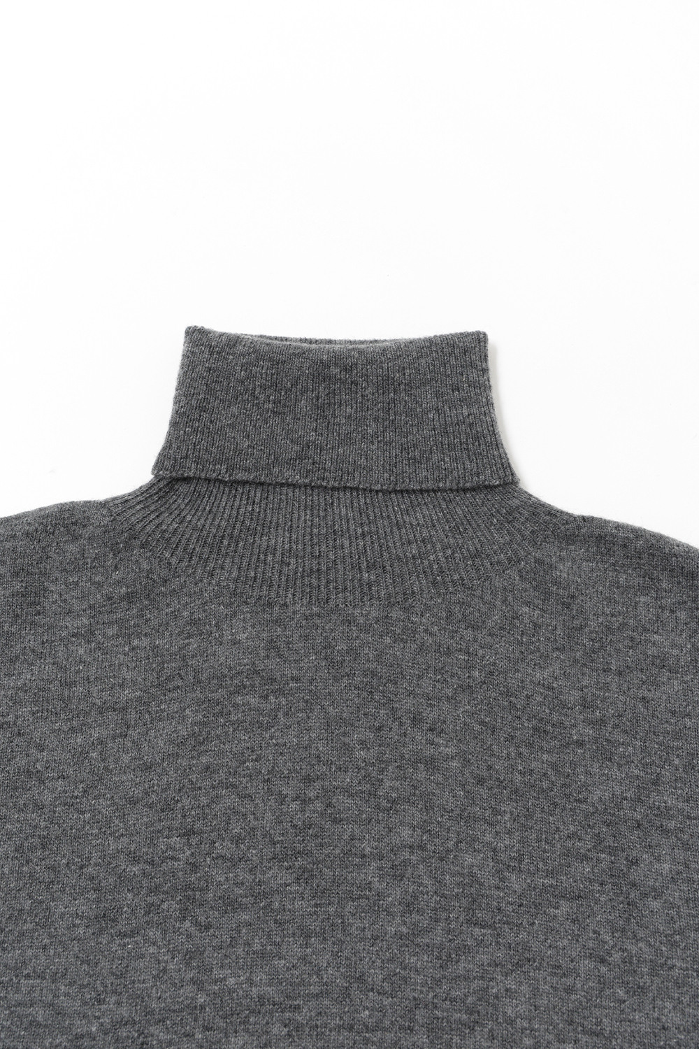 CASHMERE BLEND TURTLE NECK KNIT TOP - D GREY