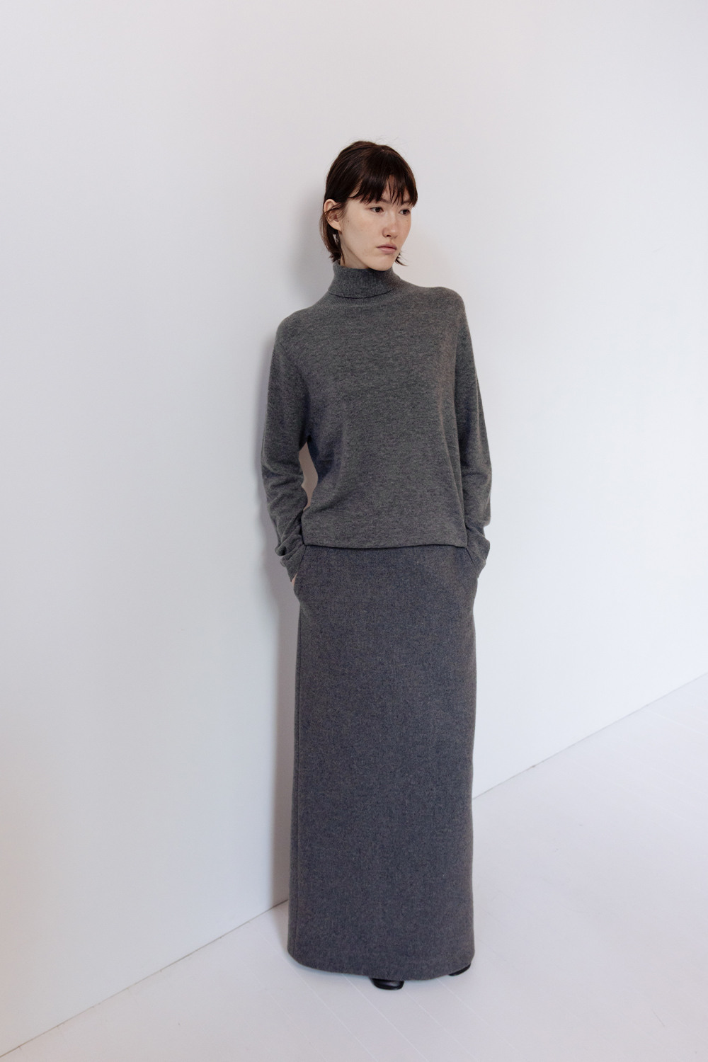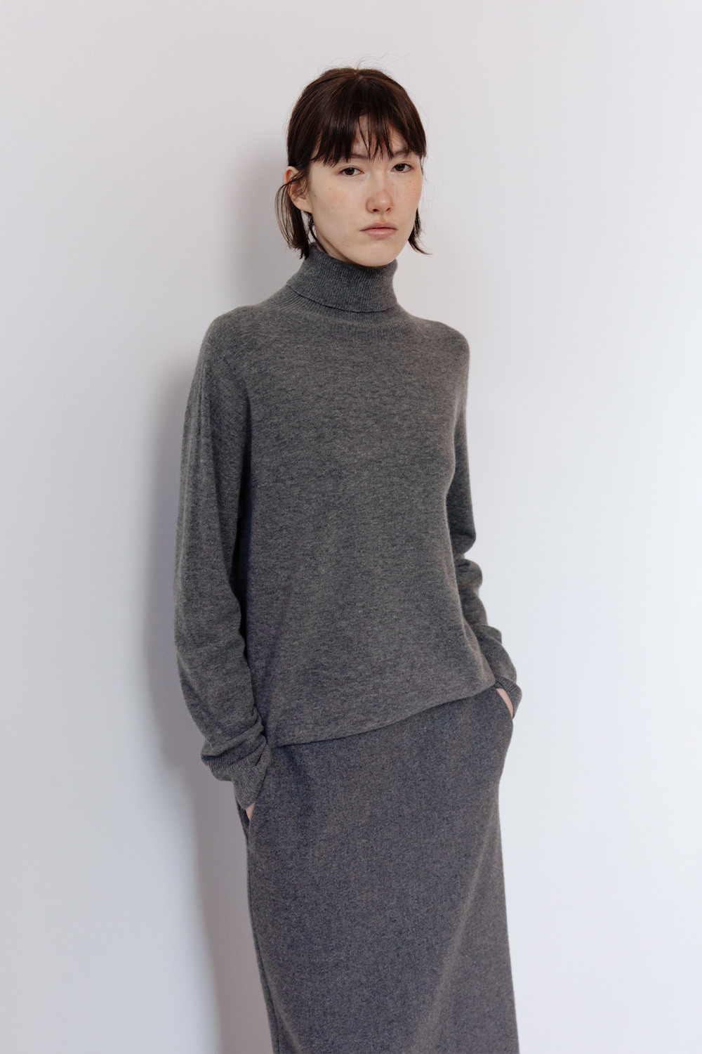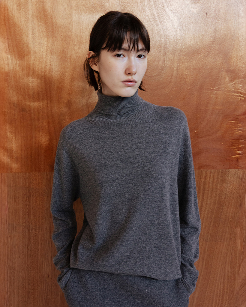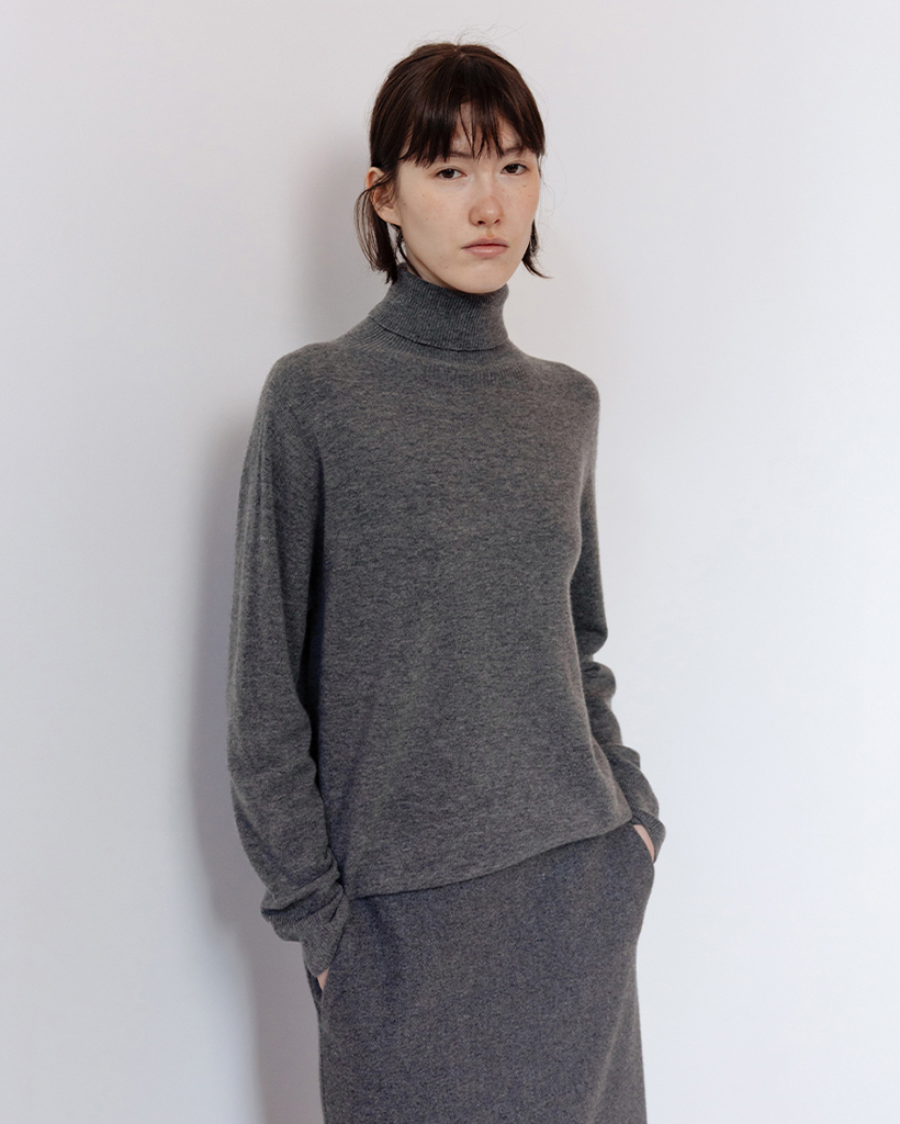 CASHMERE BLEND TURTLE NECK KNIT TOP - D GREY