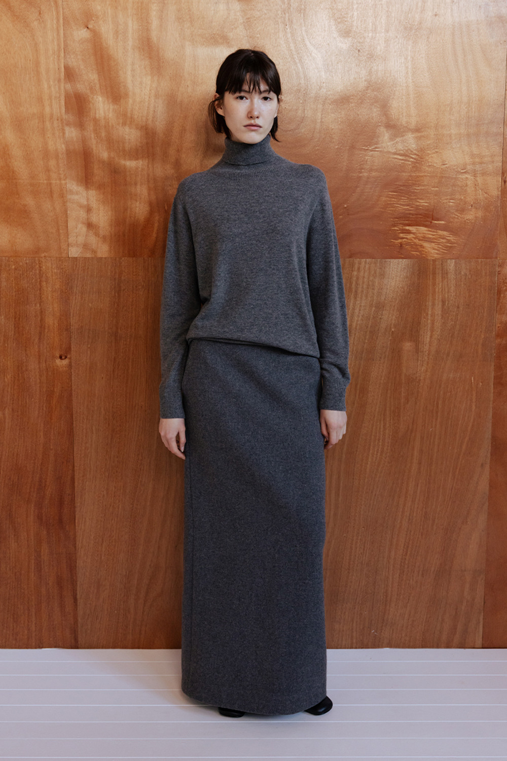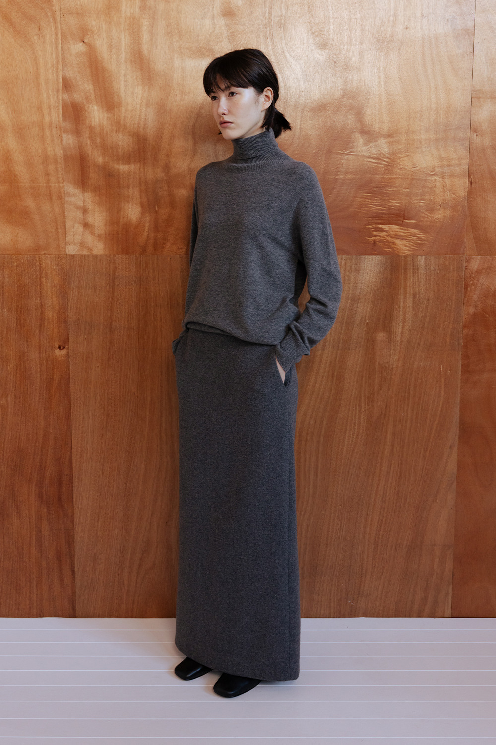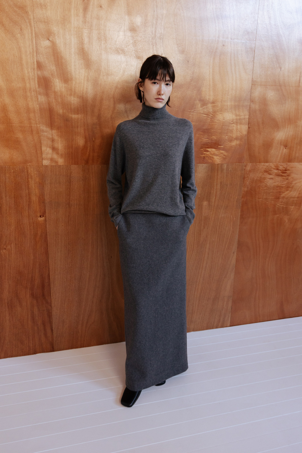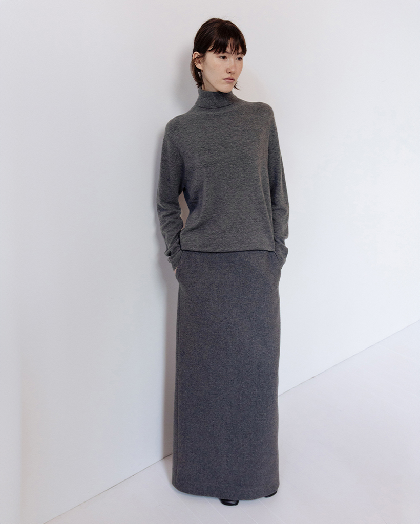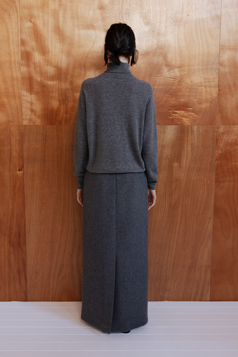 CASHMERE BLEND TURTLE NECK KNIT TOP - D GREY