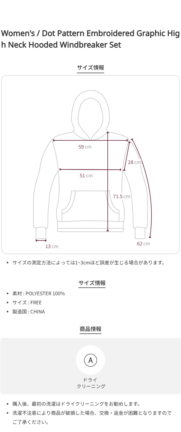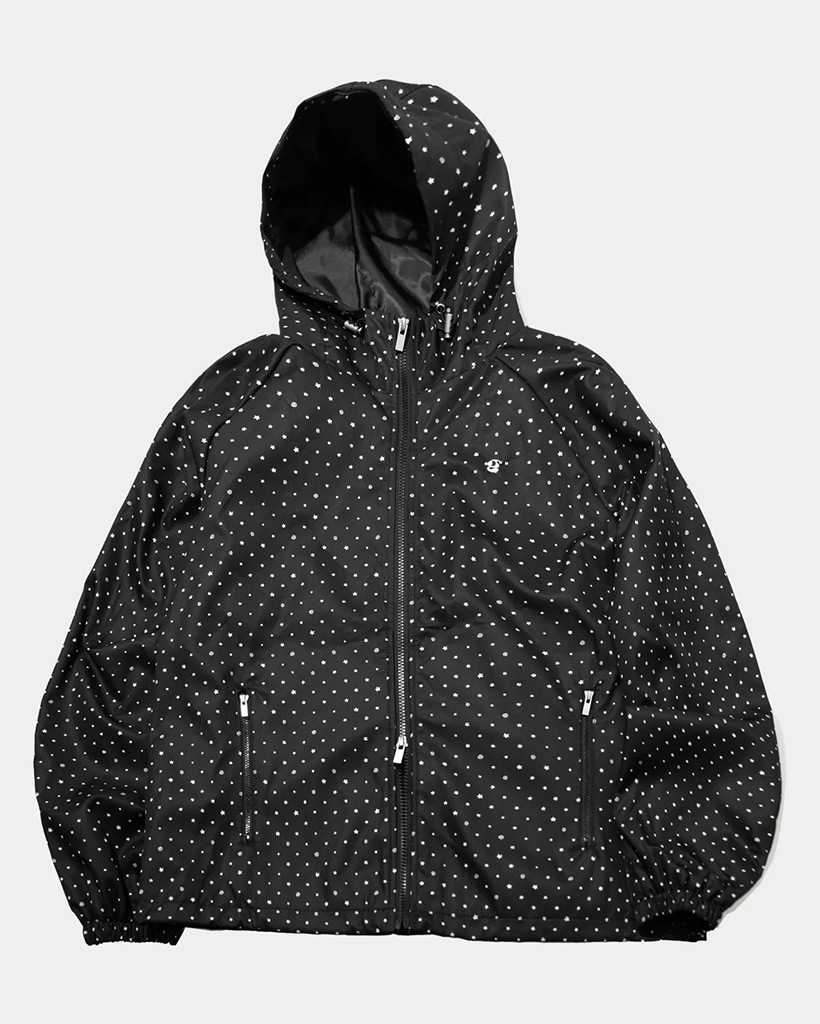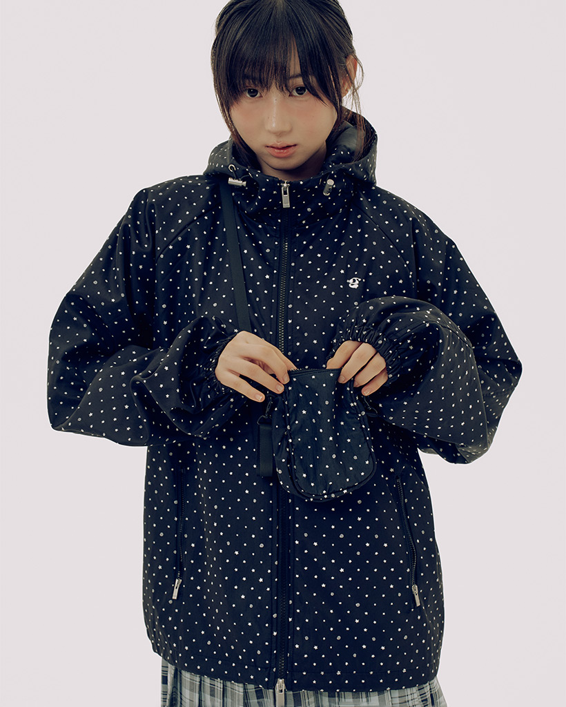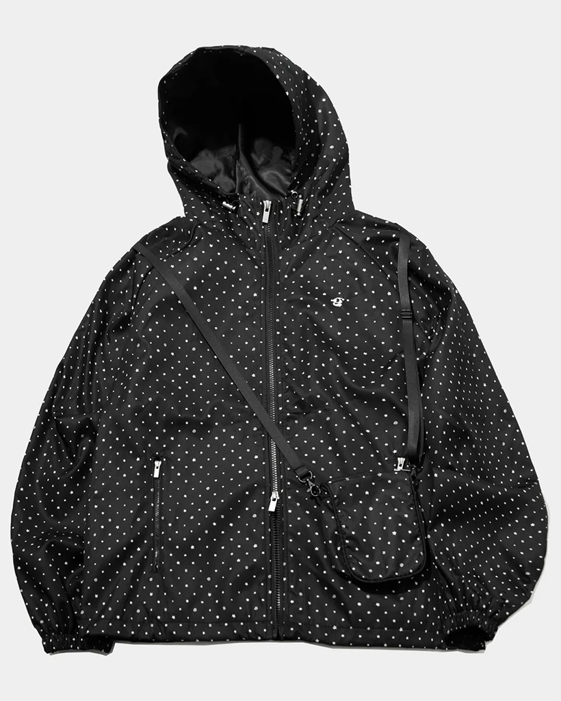 Dot Pattern Embroidered Graphic High Neck Hooded Windbreaker Set [Black]
