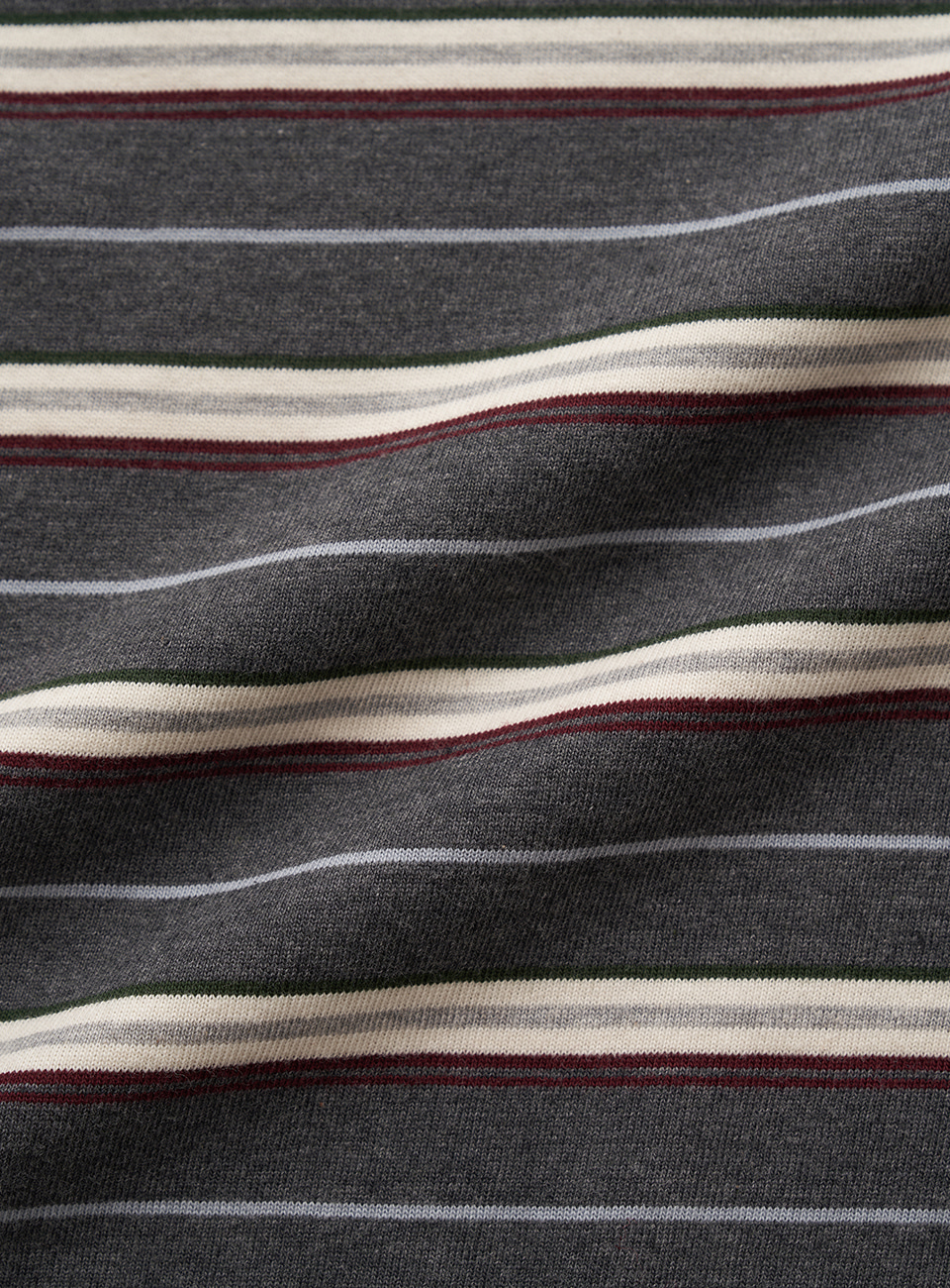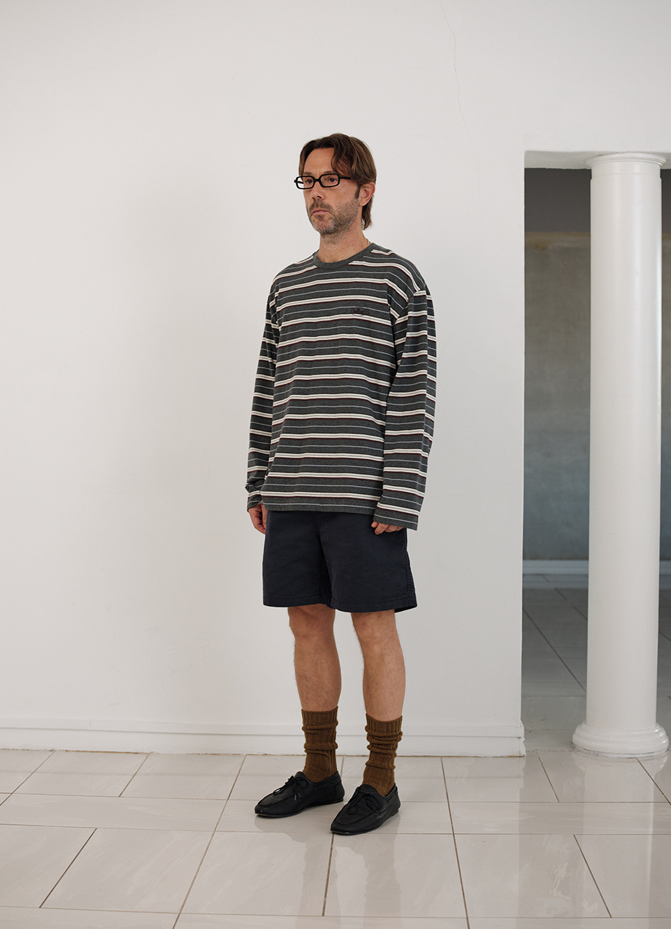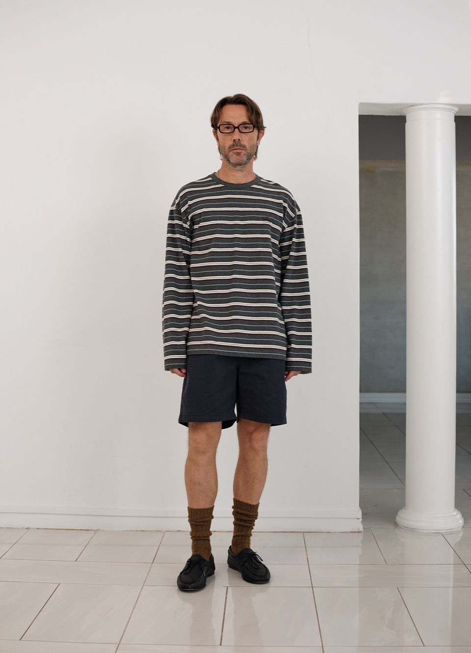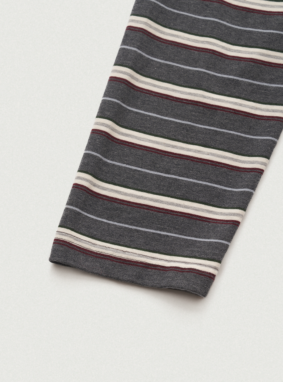 自社開発のグレーストライプパターンと、軽く柔らかな質感が特徴のコットンファブリック