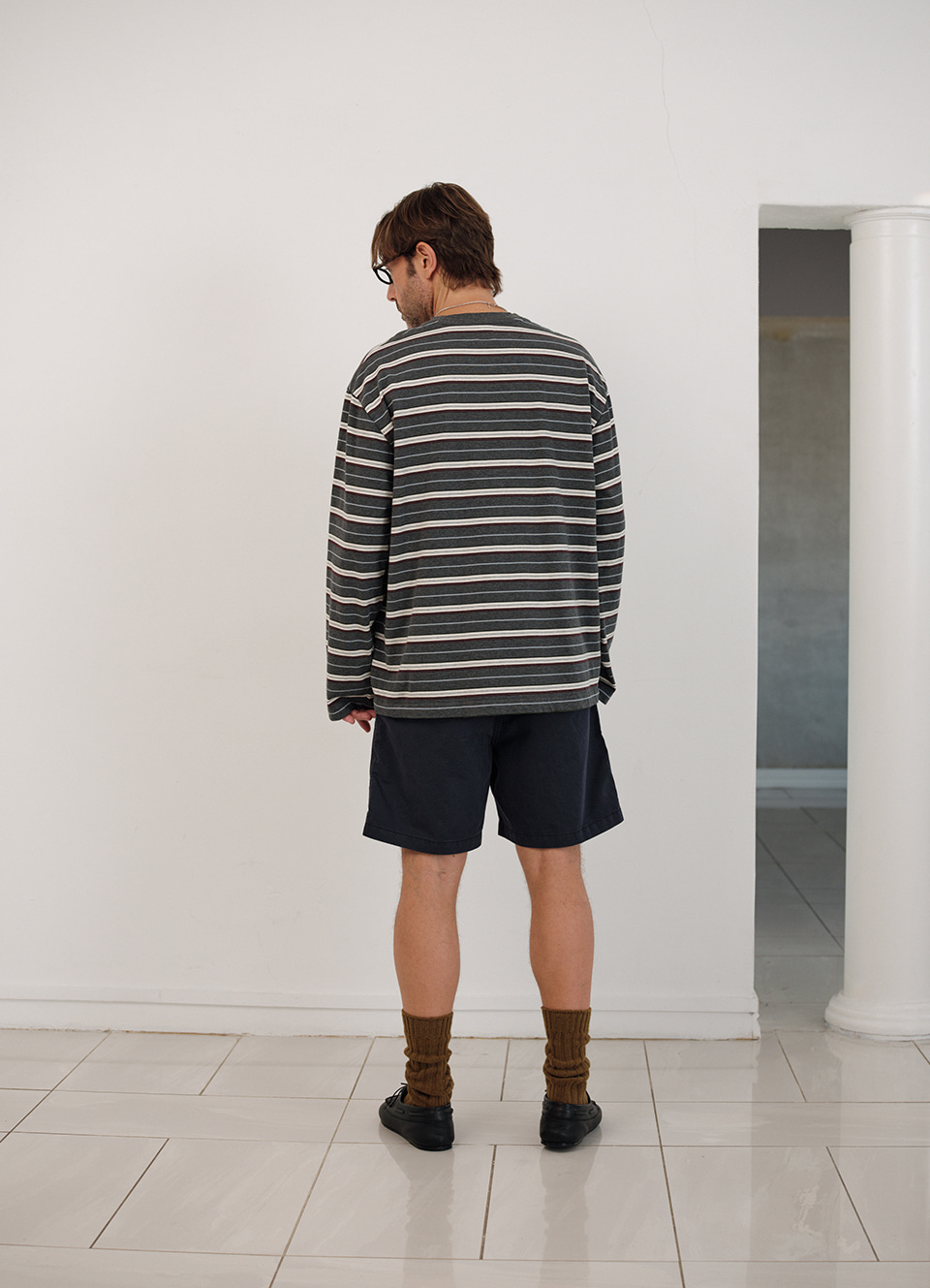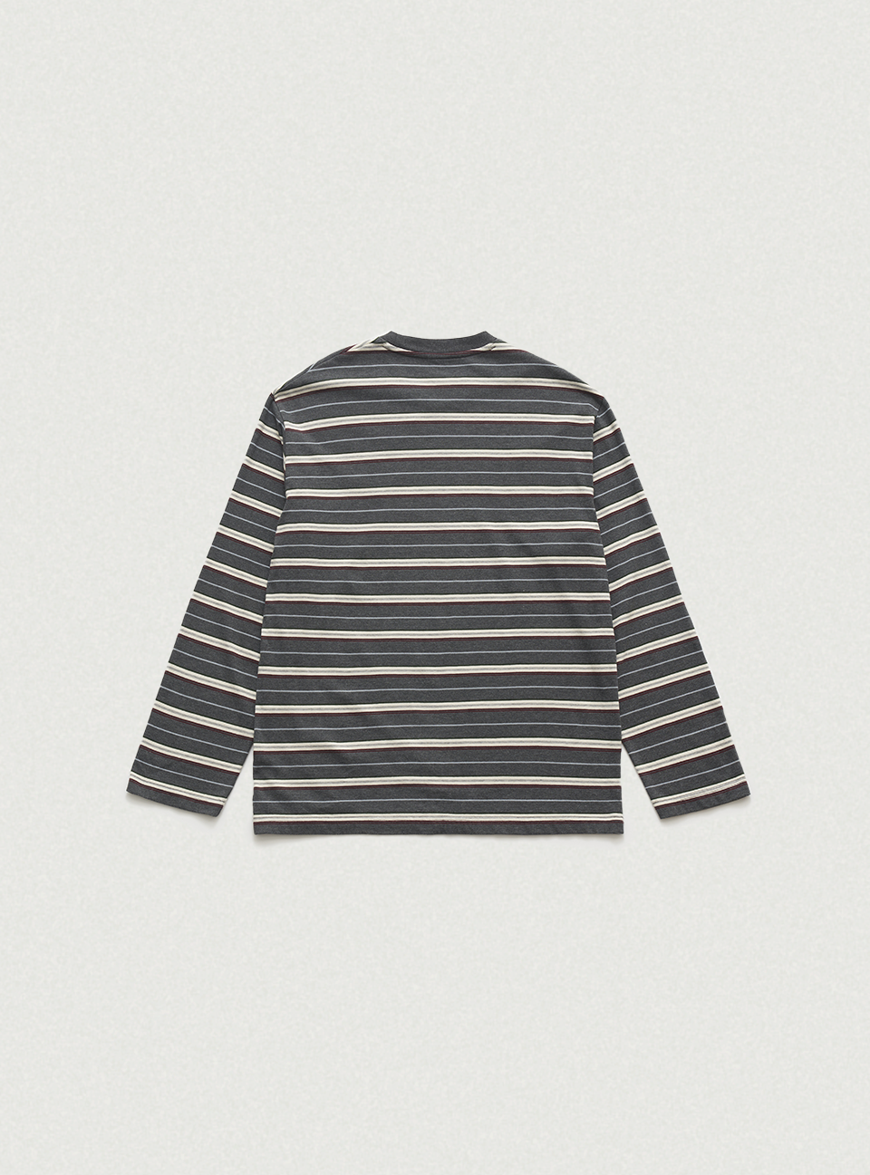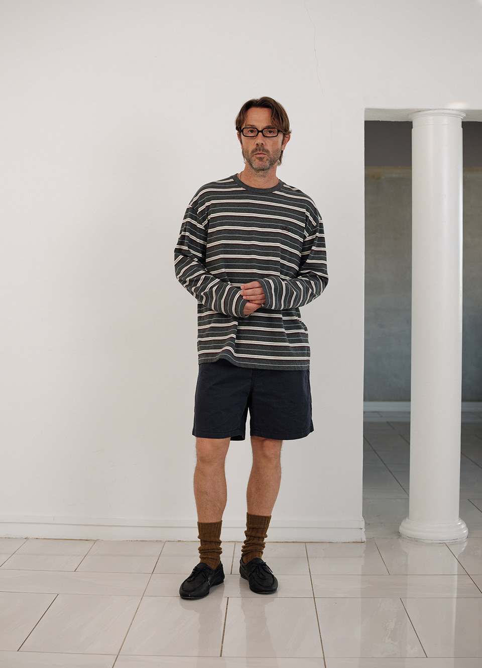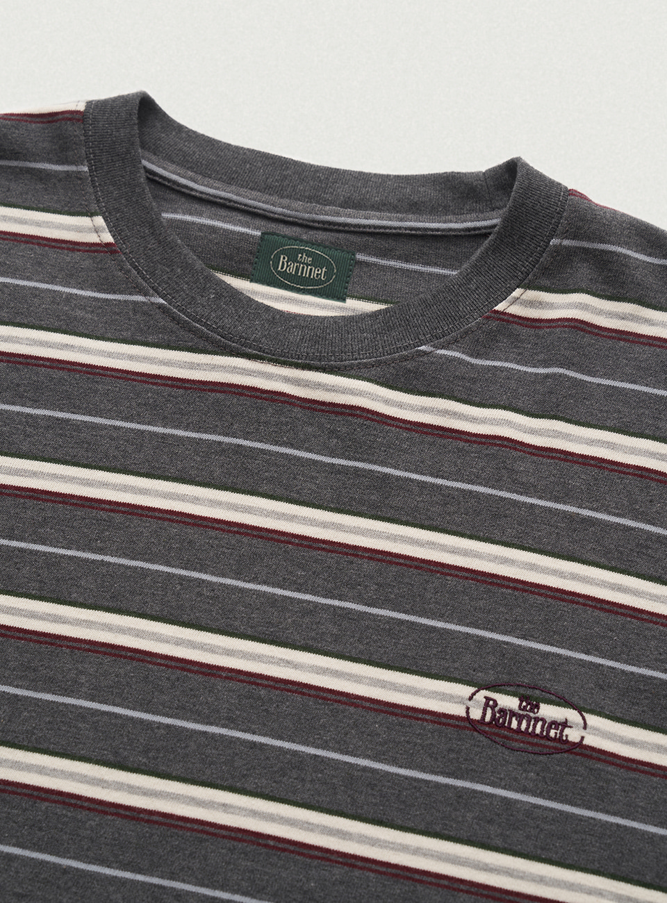 自社開発のグレーストライプパターンと、軽く柔らかな質感が特徴のコットンファブリック