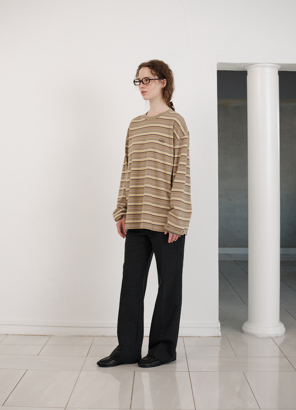 ラウンドネックとドロップショルダーの長袖仕様のTシャツタイプ