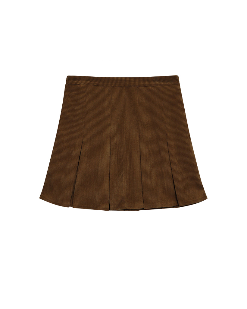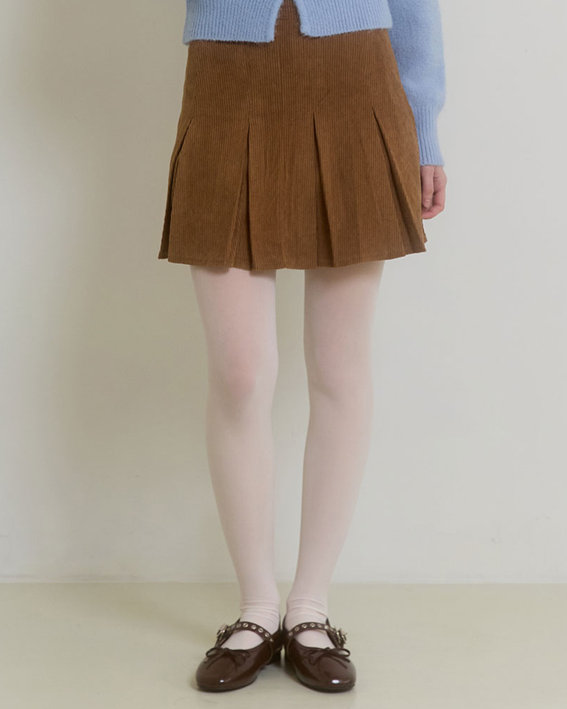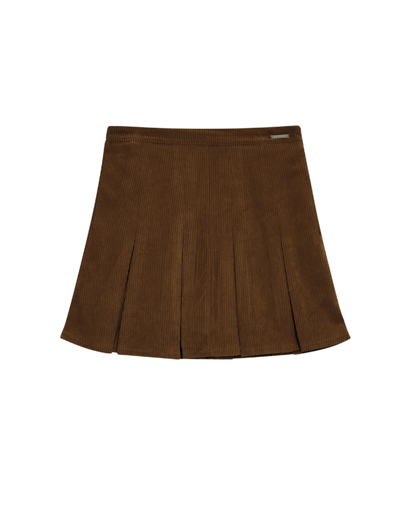 CUDDLE CORDUROY PLEATS SKIRT_BROWN