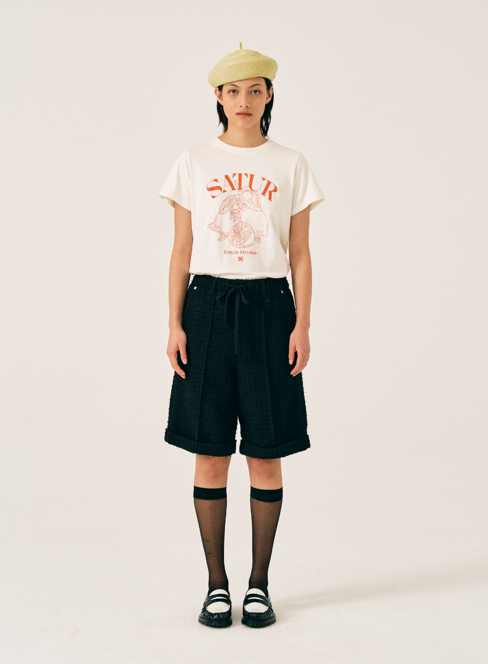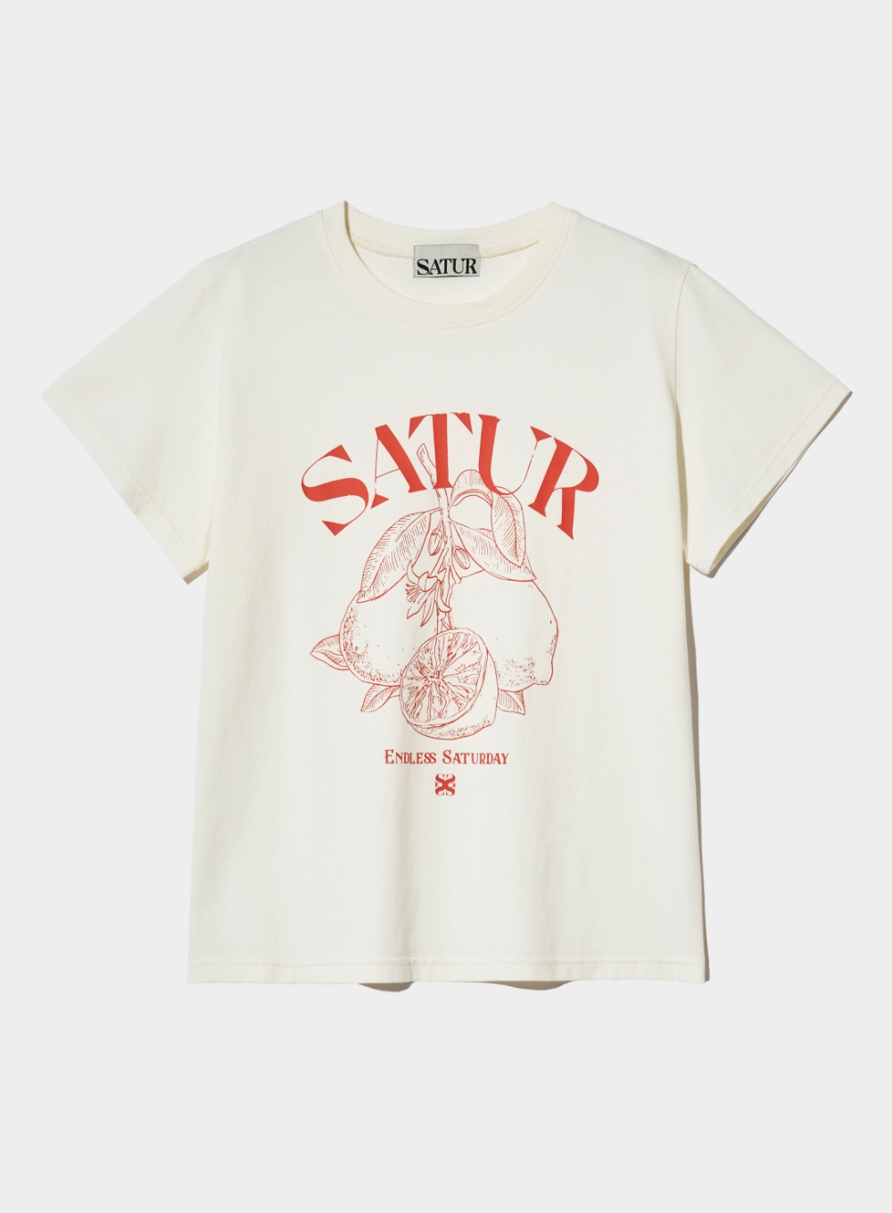 (W) Capri Citron Drawing Summer Graphic T-Shirt - Cream Orange