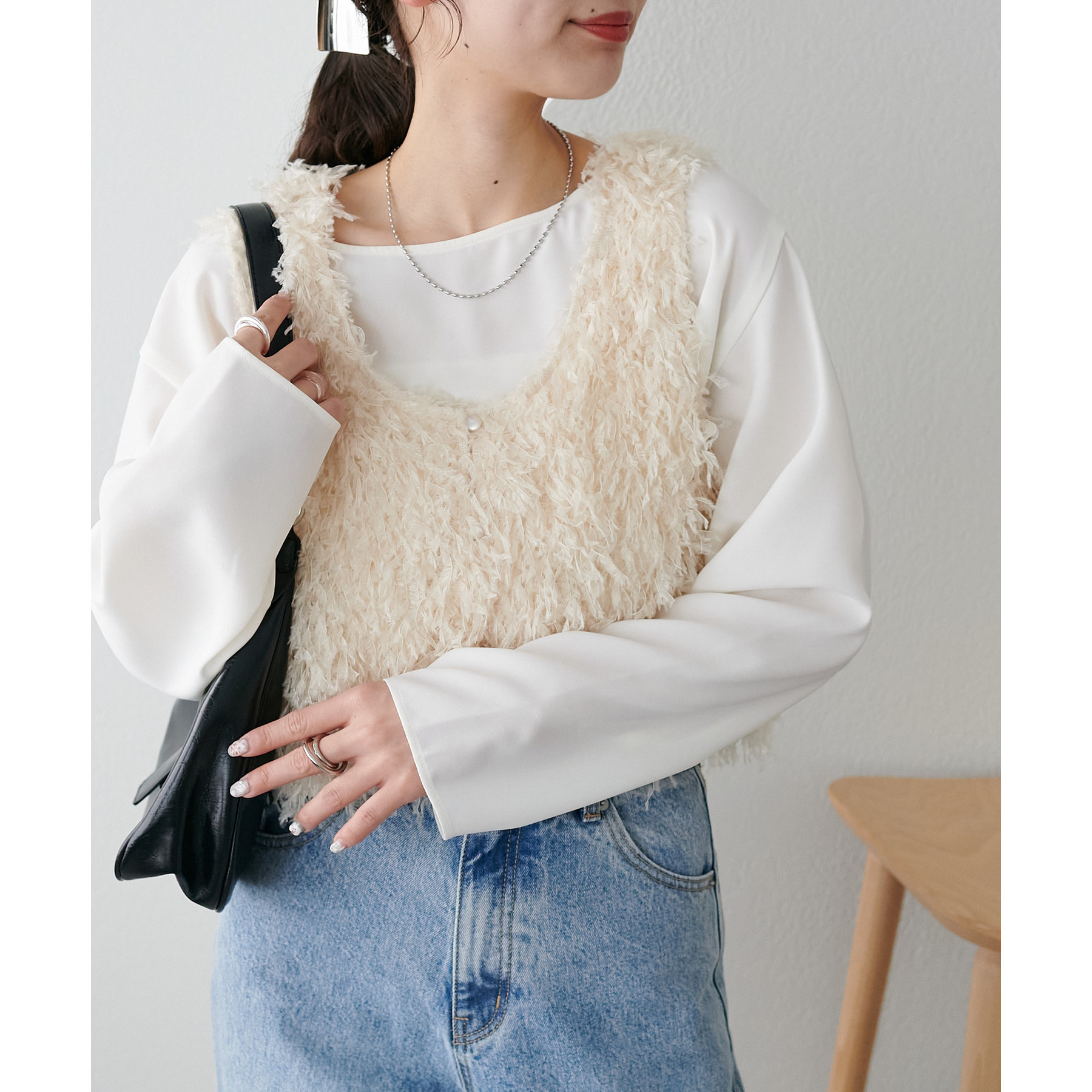 やや長めの着丈なので、レイヤードにもおすすめ◎