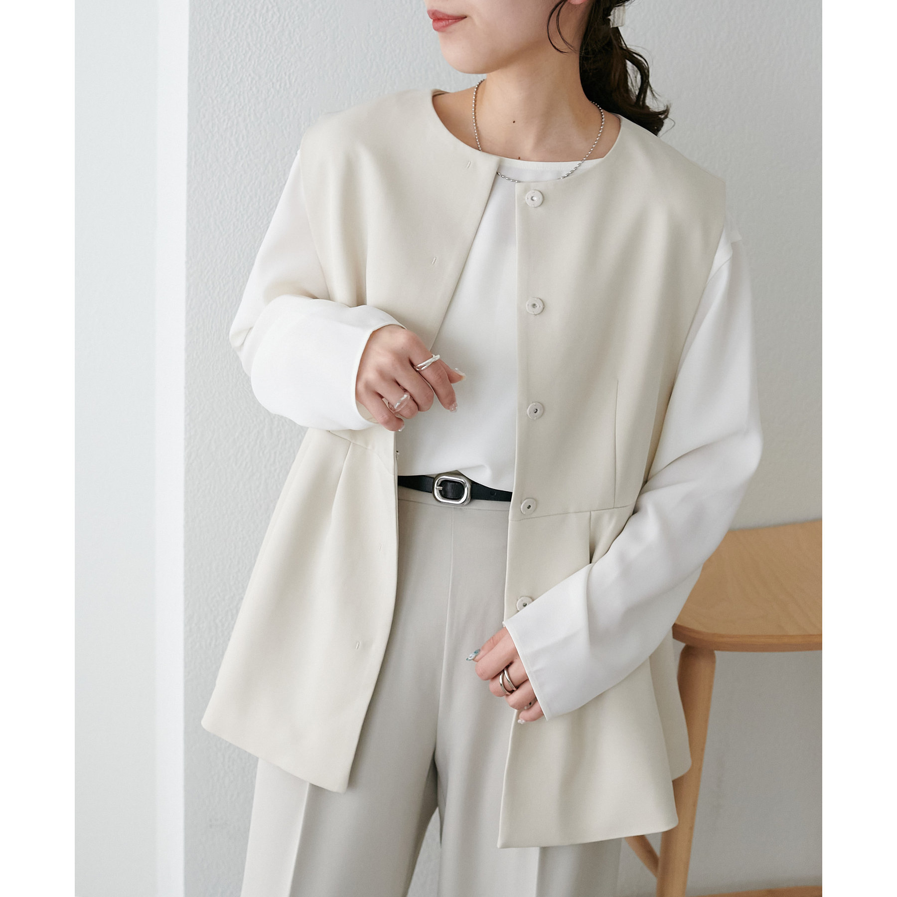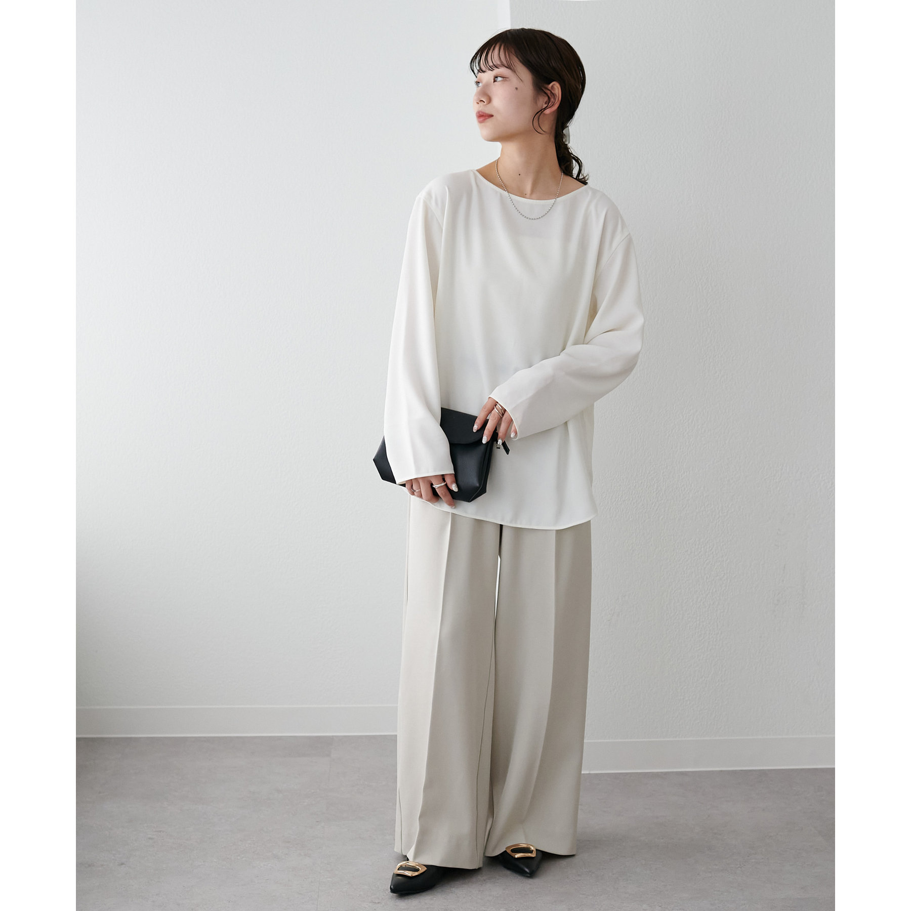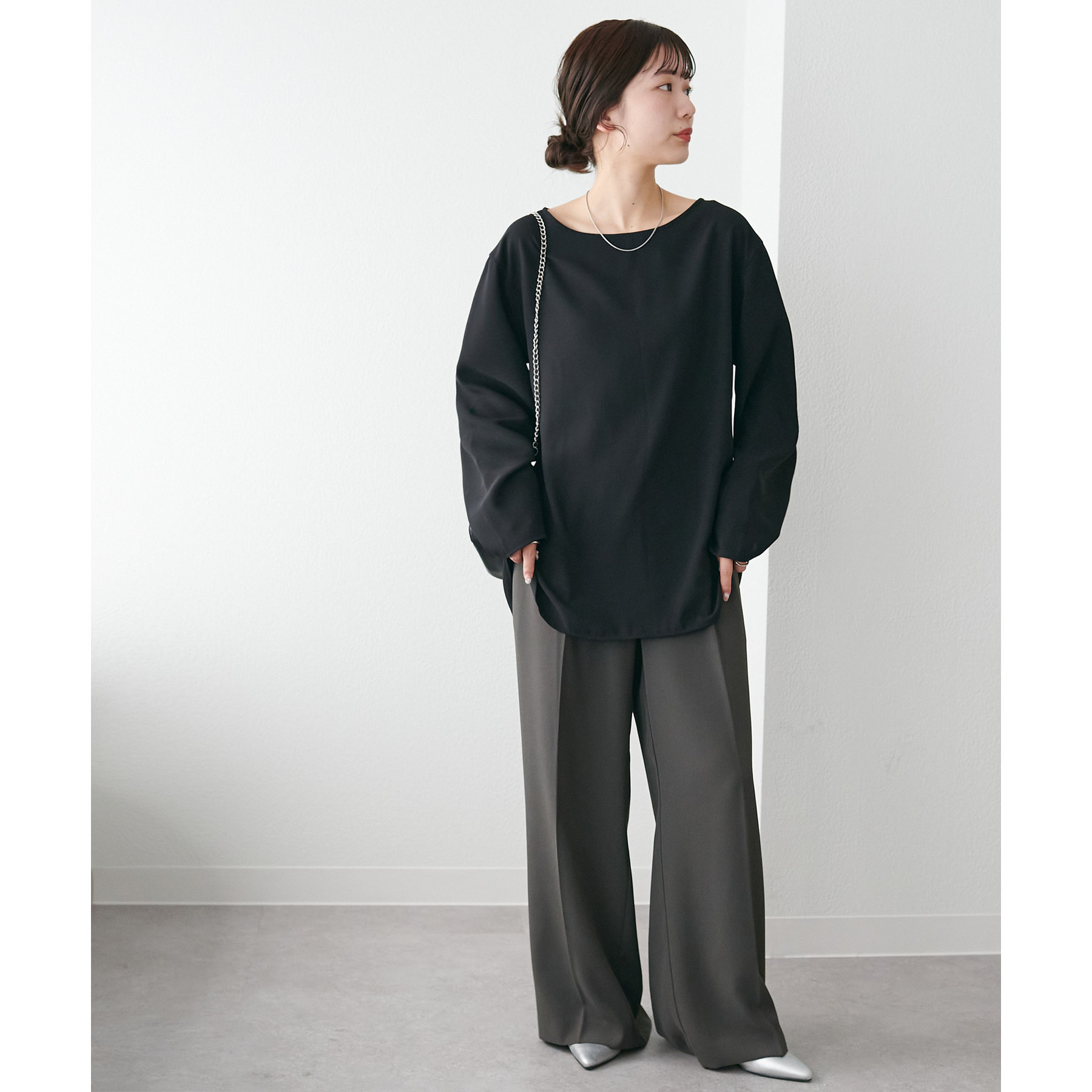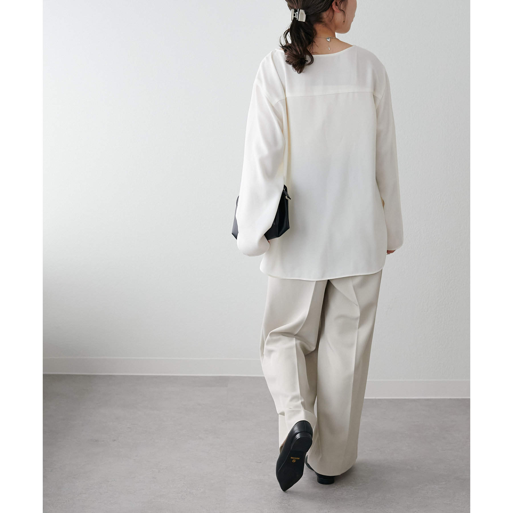 きれい見えする生地感なので、スラックスやテーパードパンツと合わせたオフィス、オケージョンコーデ