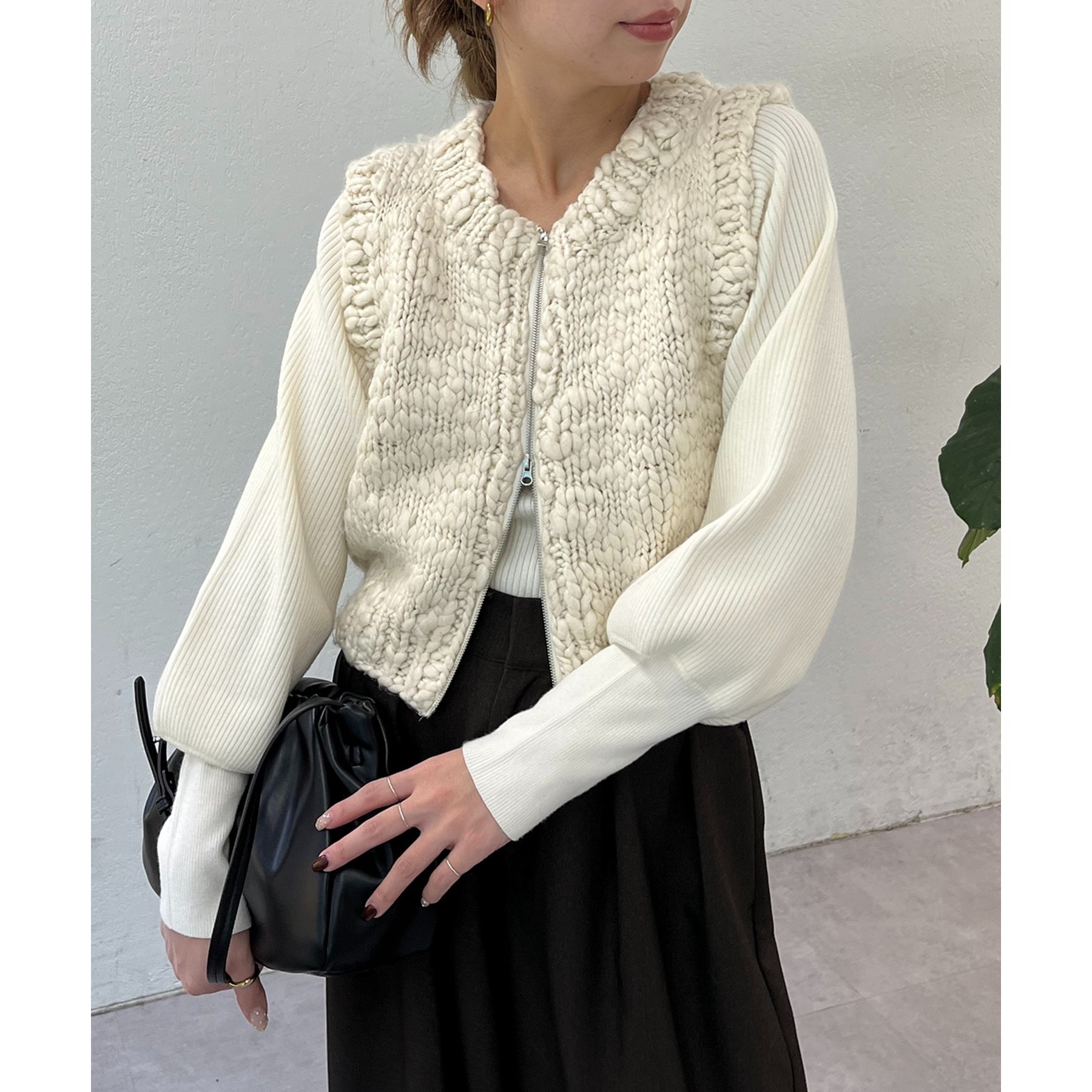 【オフホワイト着用アイテム③】vest:ハンドニットベスト