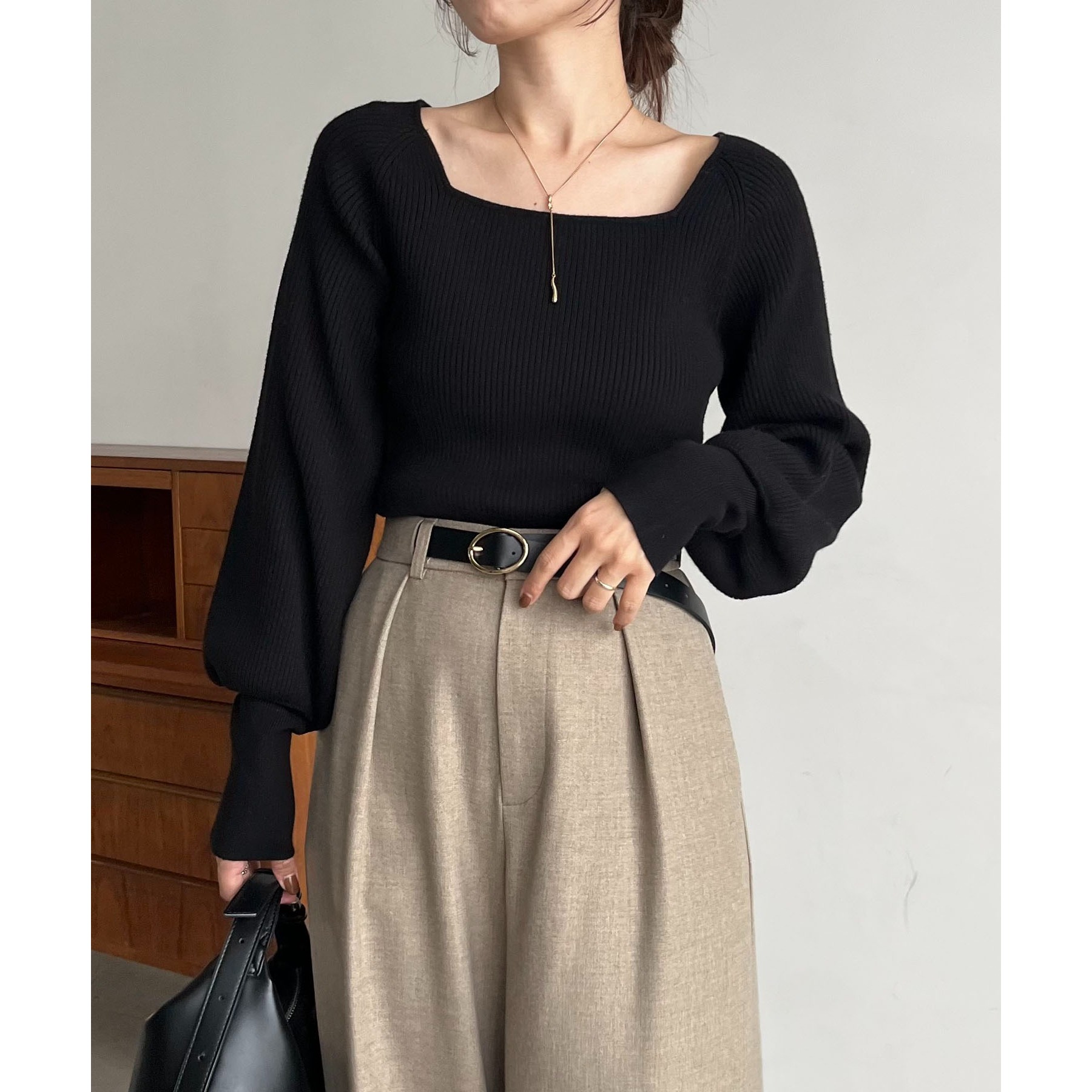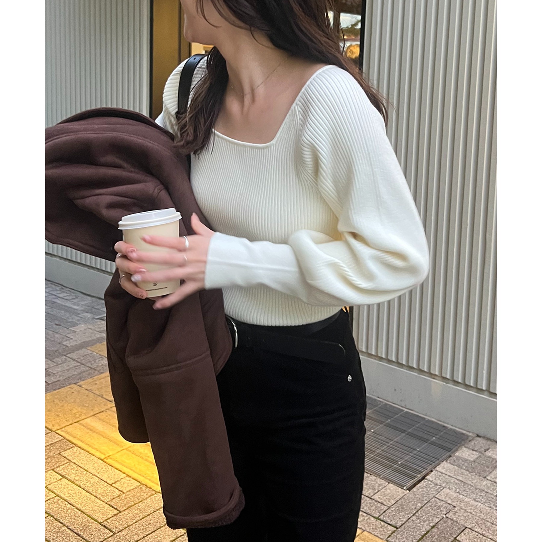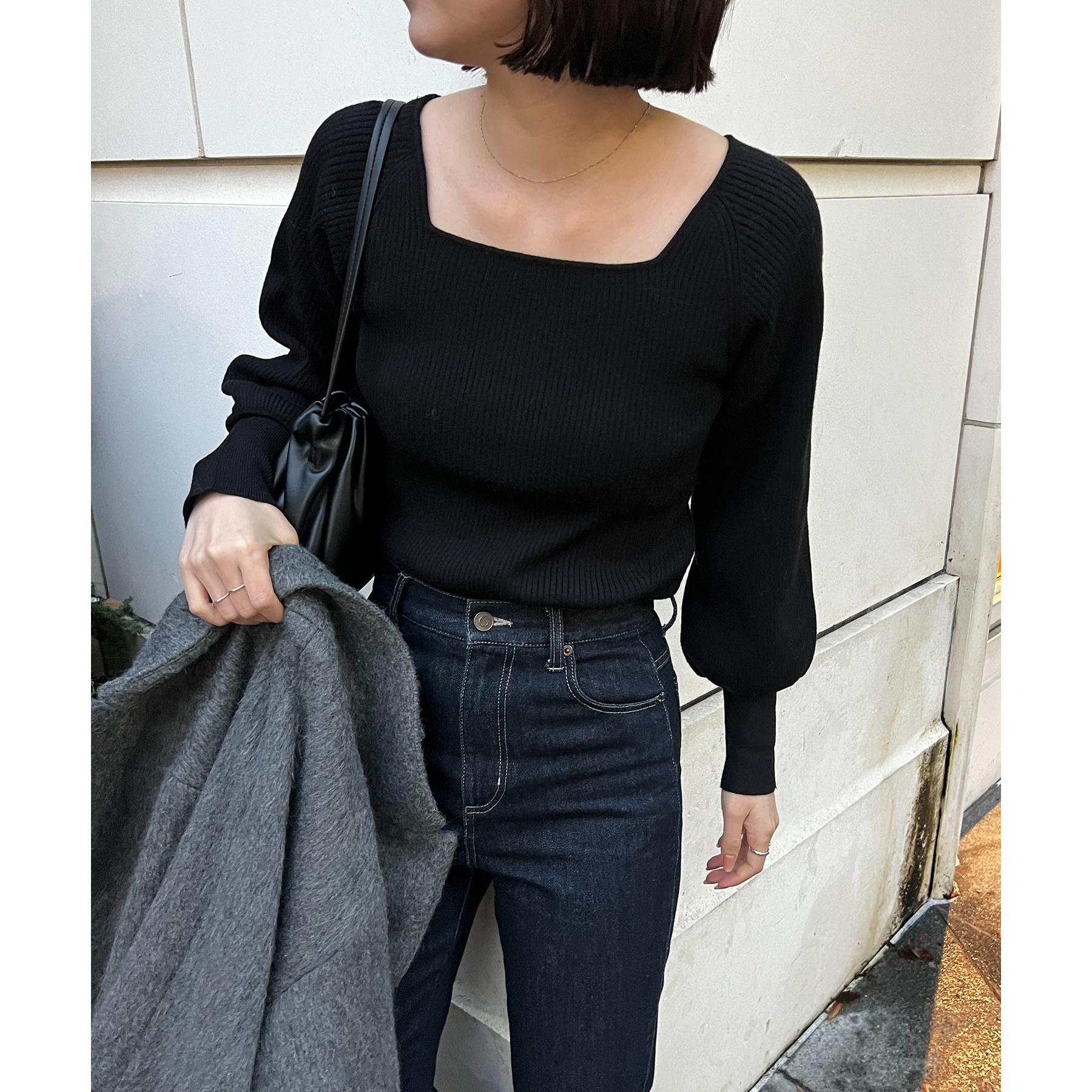 ・パフスリーブで丸みのあるシルエットがコーデのポイントに