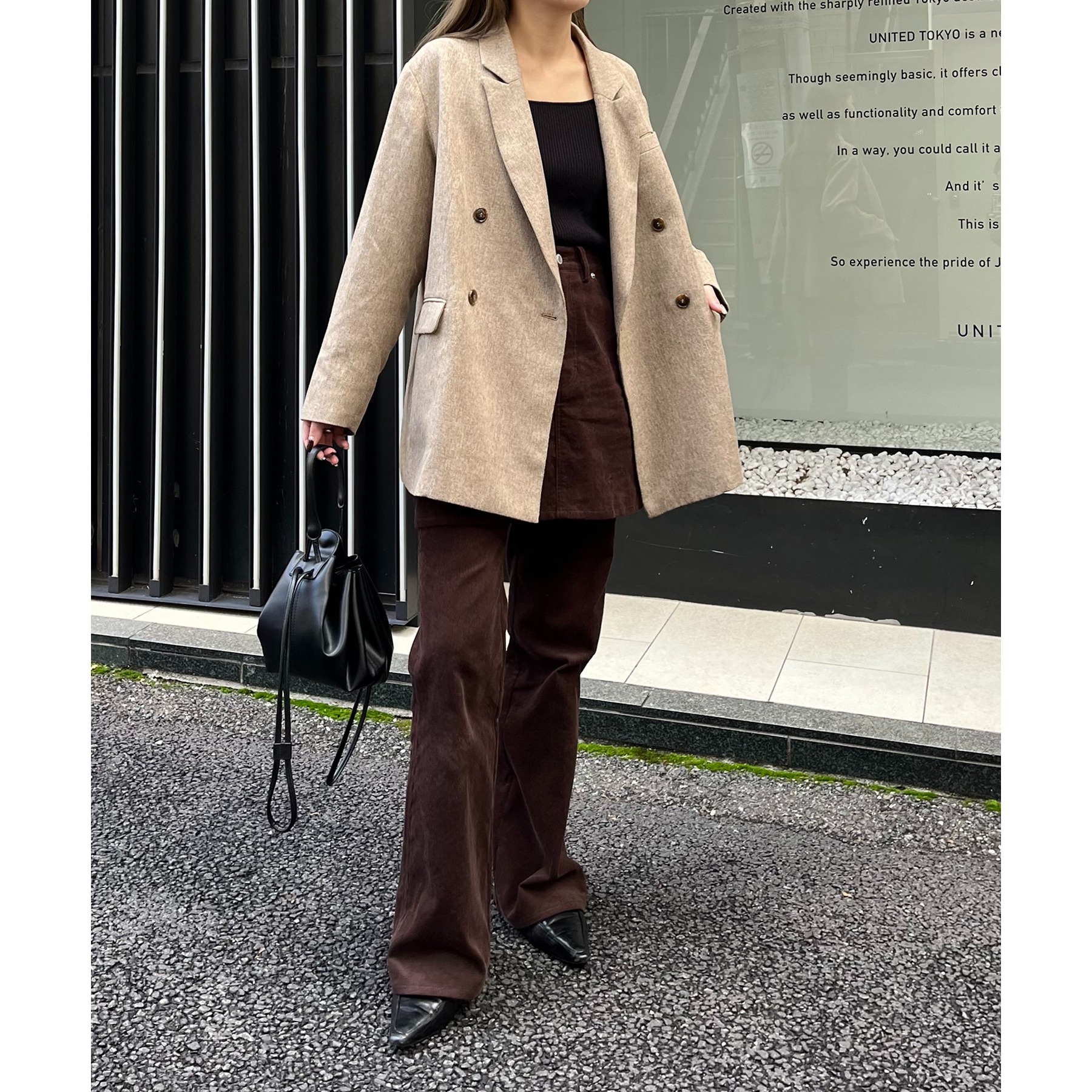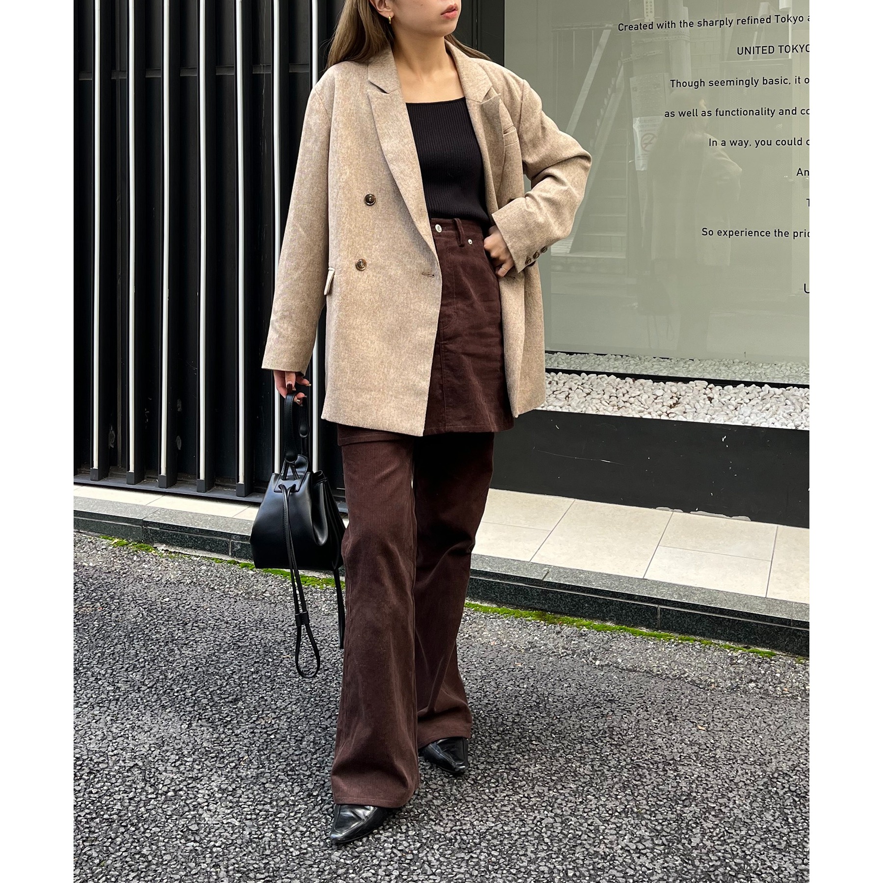 【ブラック着用アイテム②】outer:ツイードジャケット・pants:コーデュロイフレアパンツ・skirt:コーデュロイ台形スカート