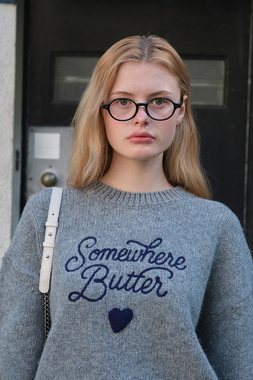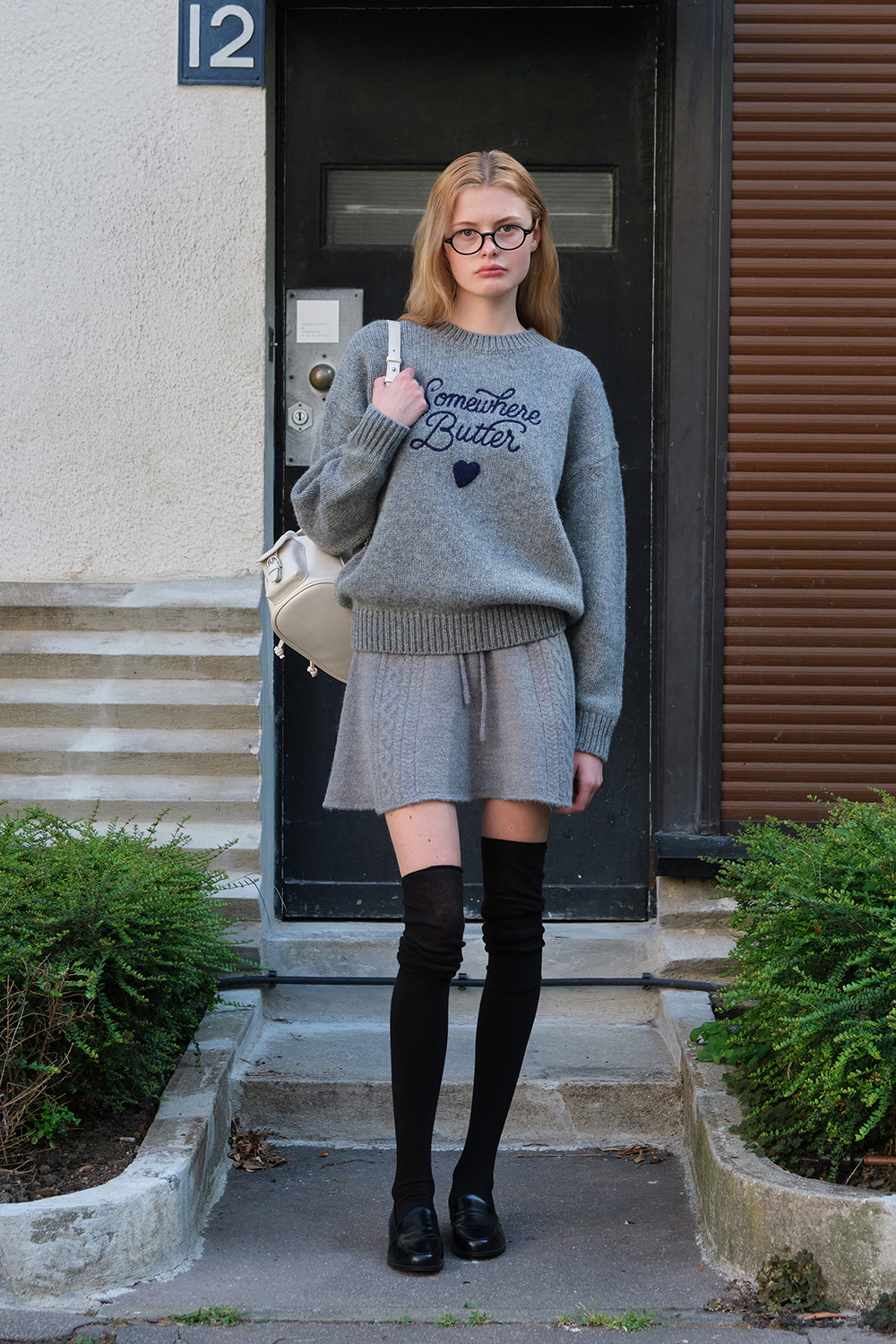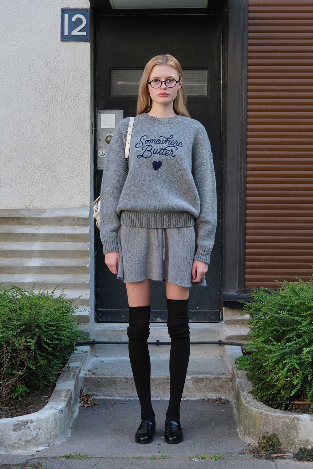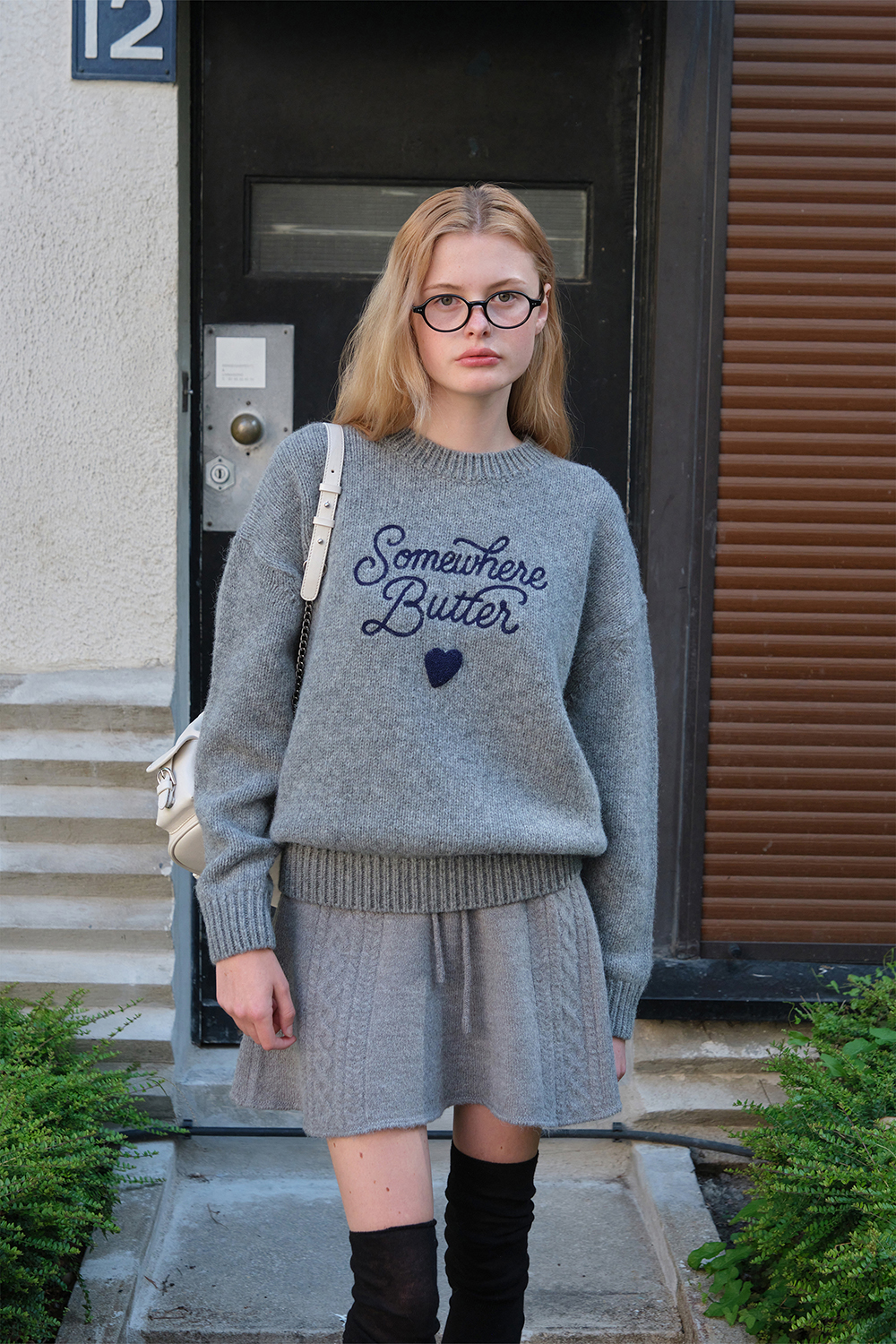 Boucle Heart Wool Knit - Grey