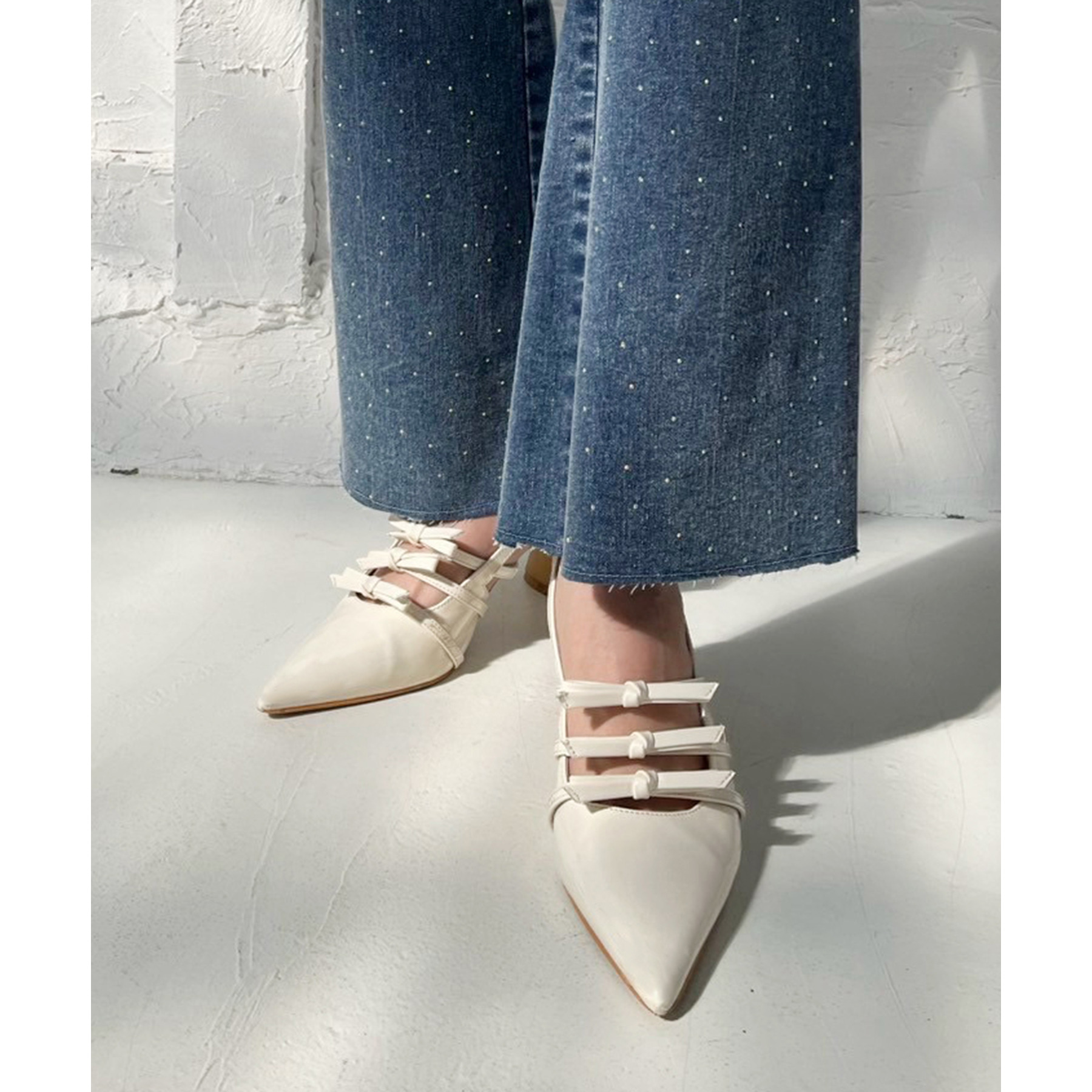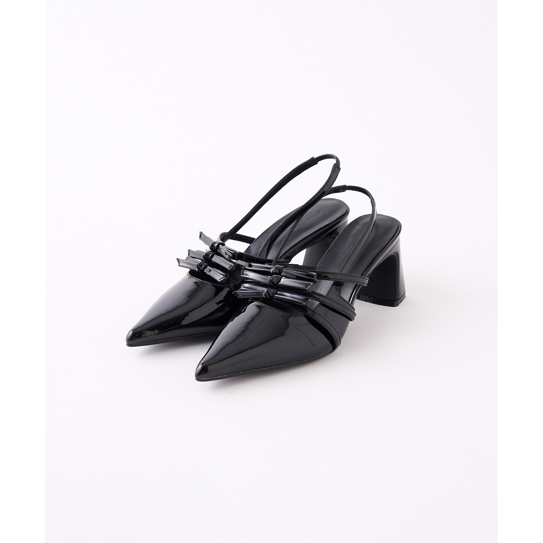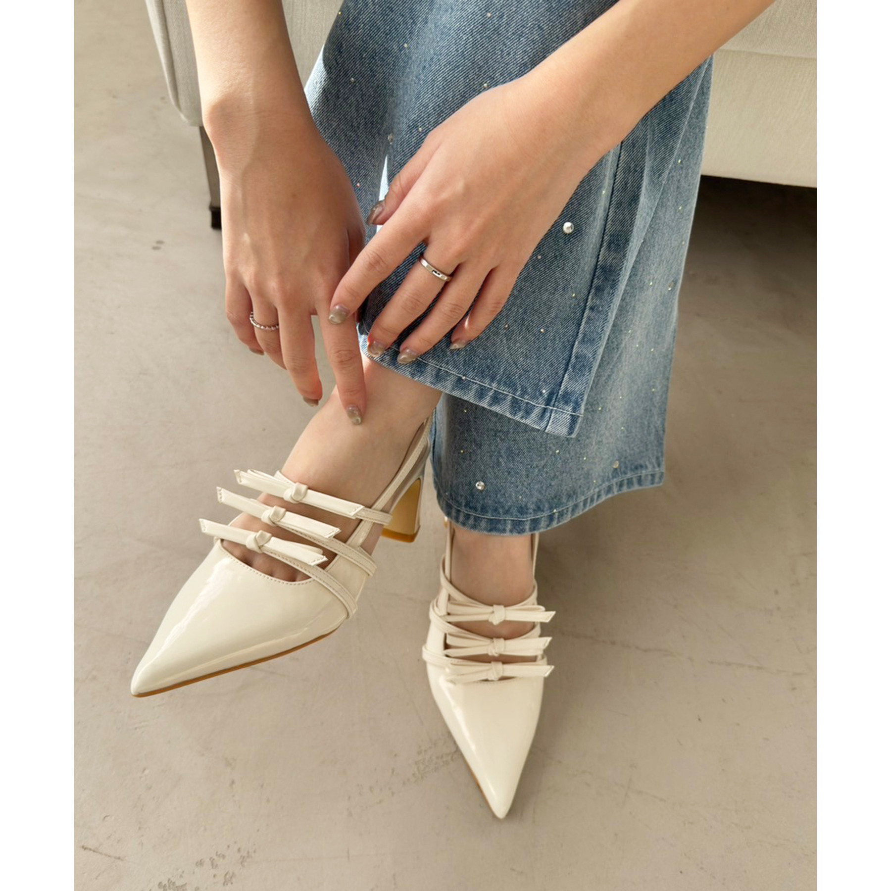 ストラップに付いたリボンが足元を華やかにしてくれるパンプス