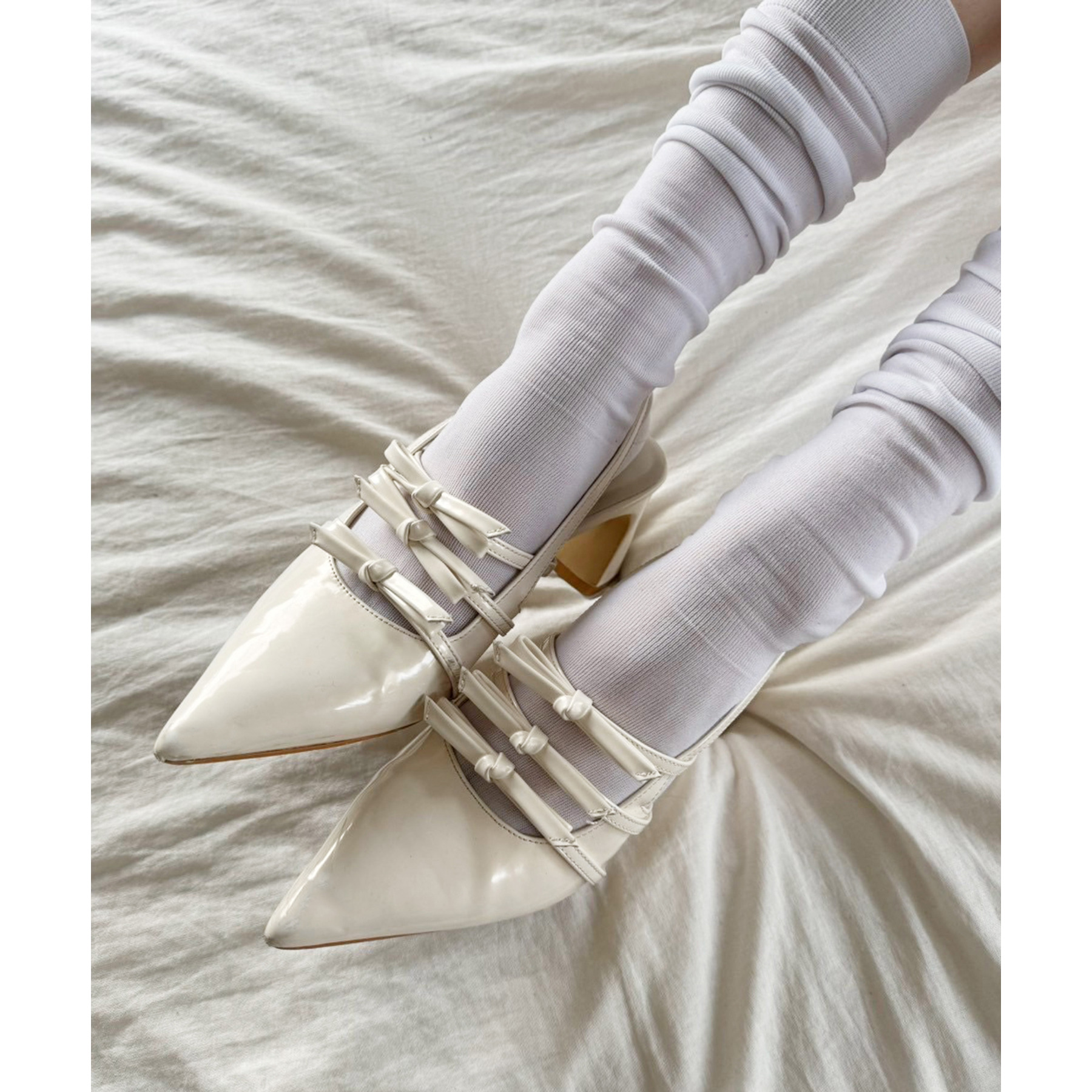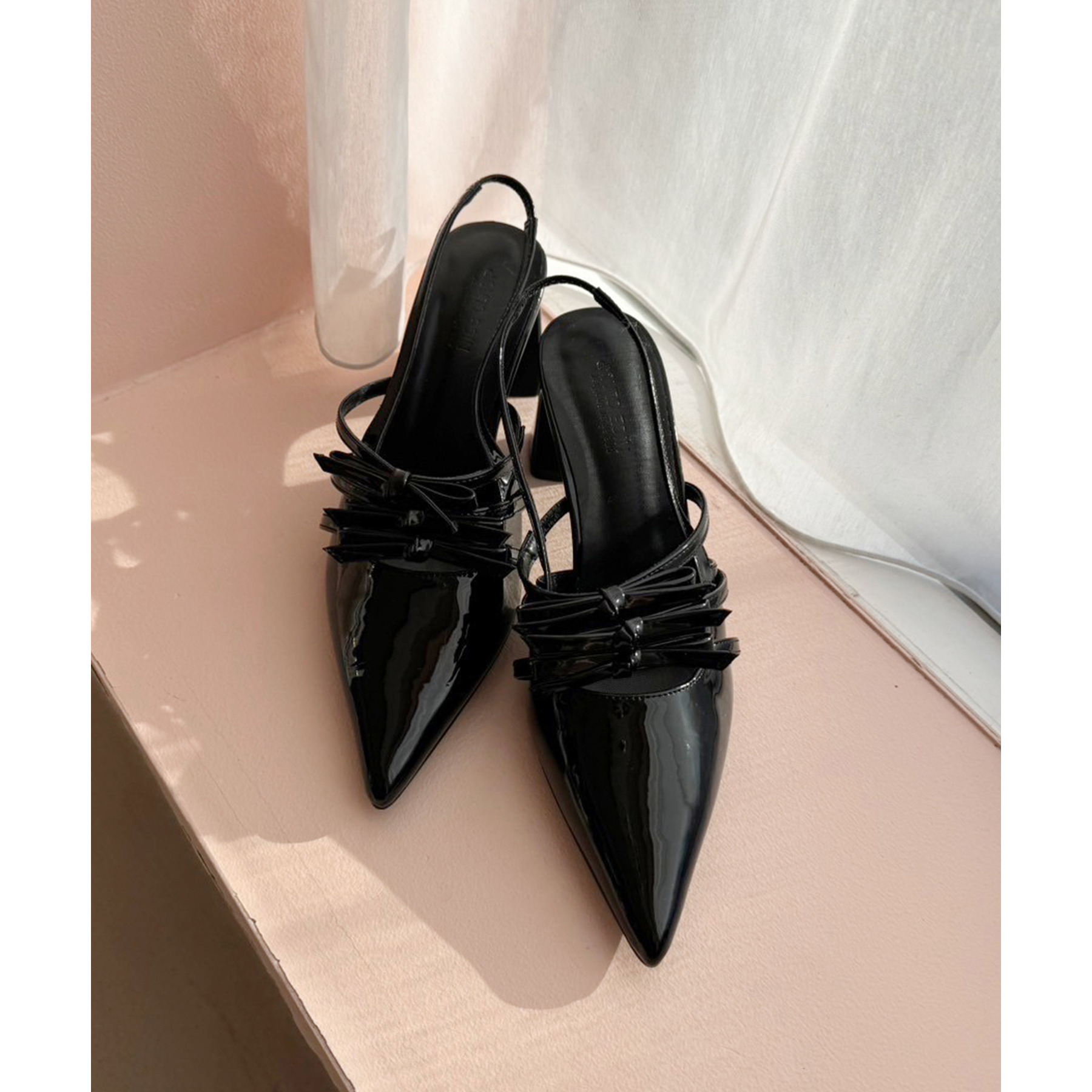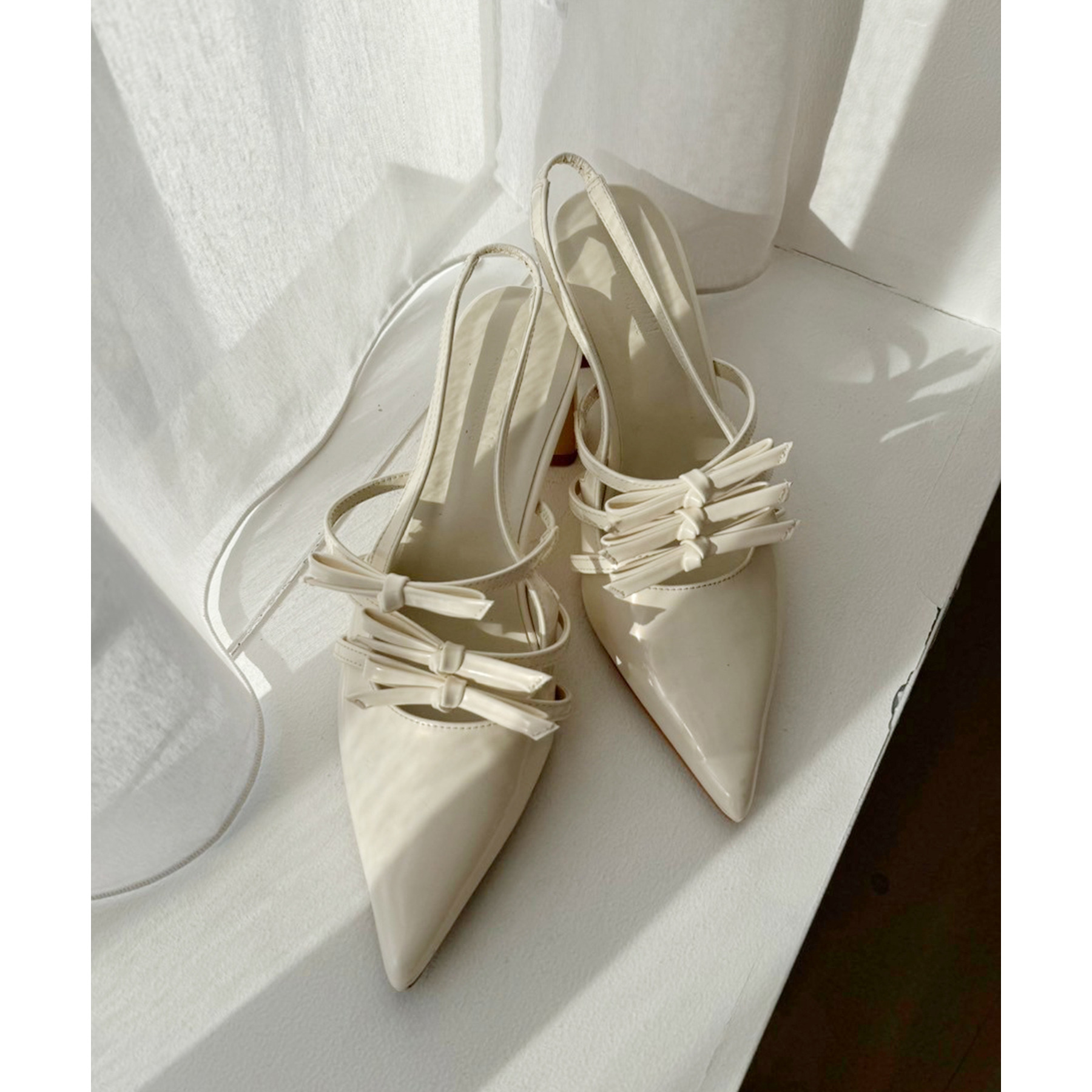 ストラップに付いたリボンが足元を華やかにしてくれるパンプス