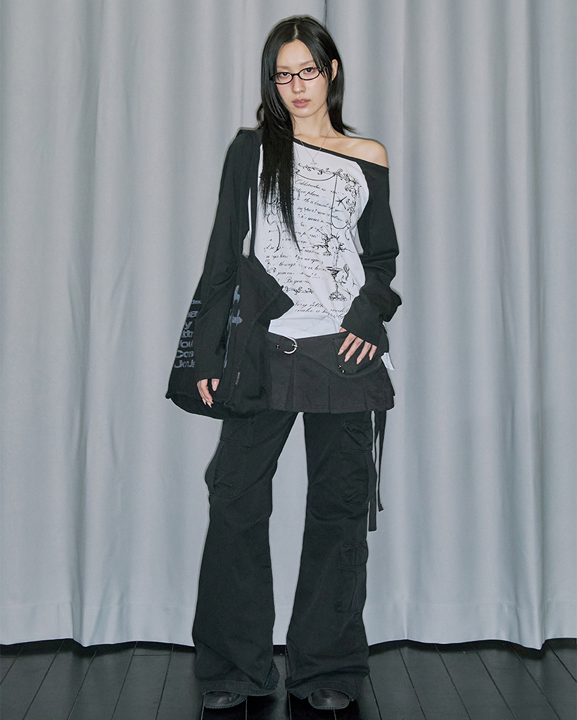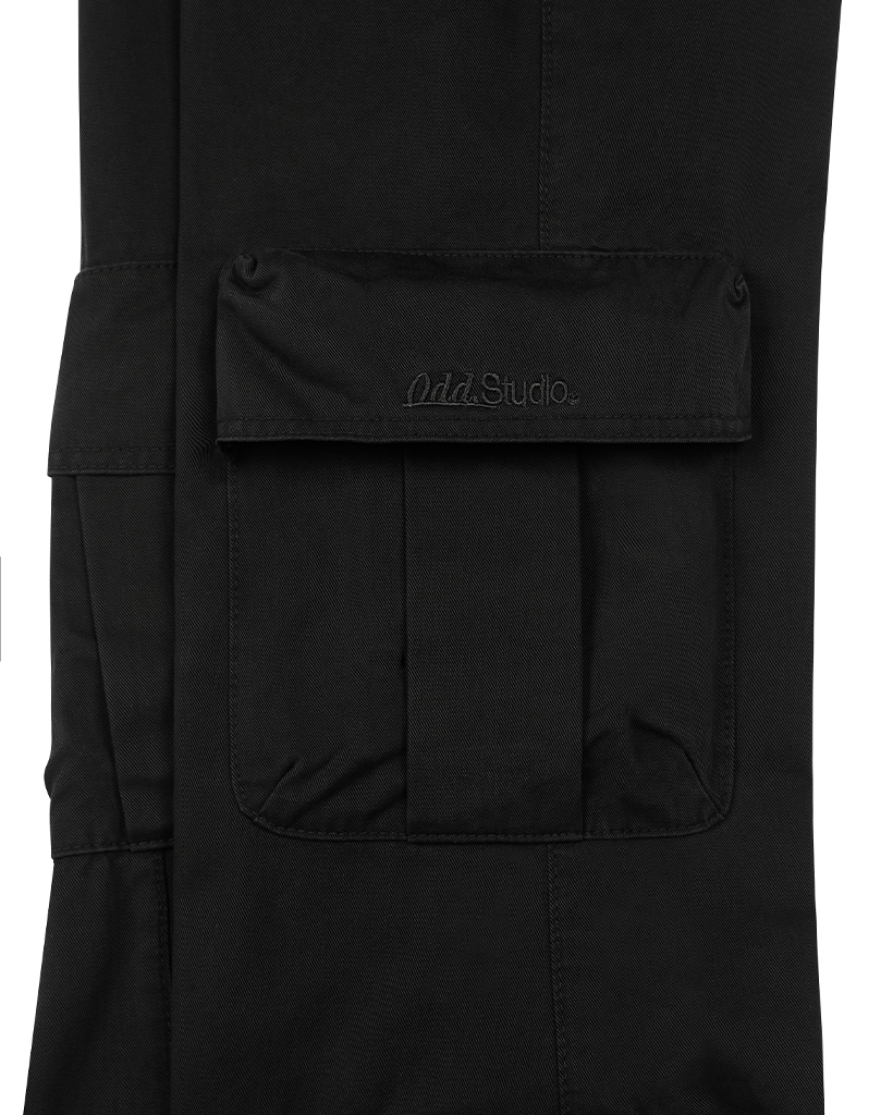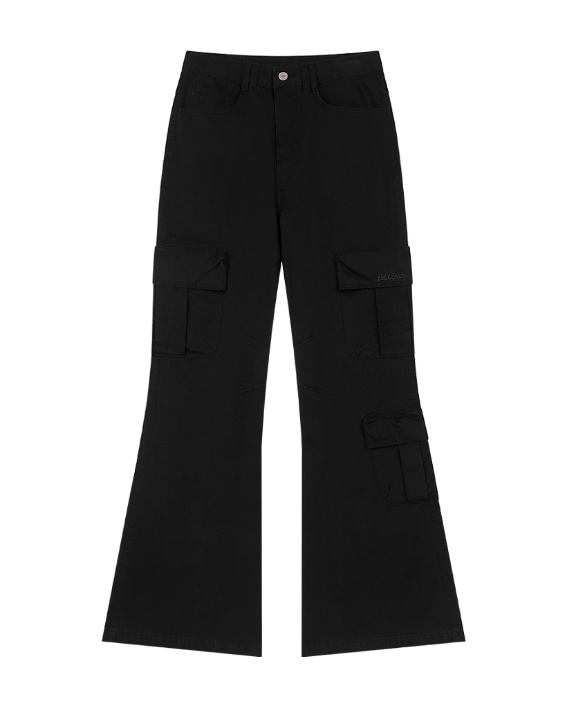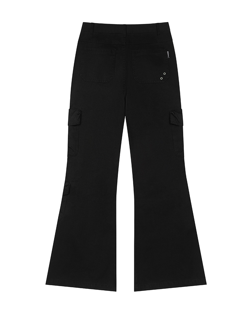 Cargo Pocket Cotton Bootcut Pants - BLACK