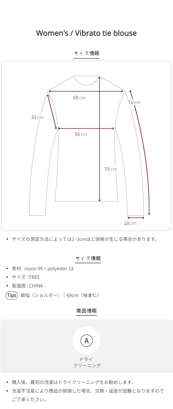HEIGHT 168cm / BUST 81cm / WAIST 58cm / HIP 83cm