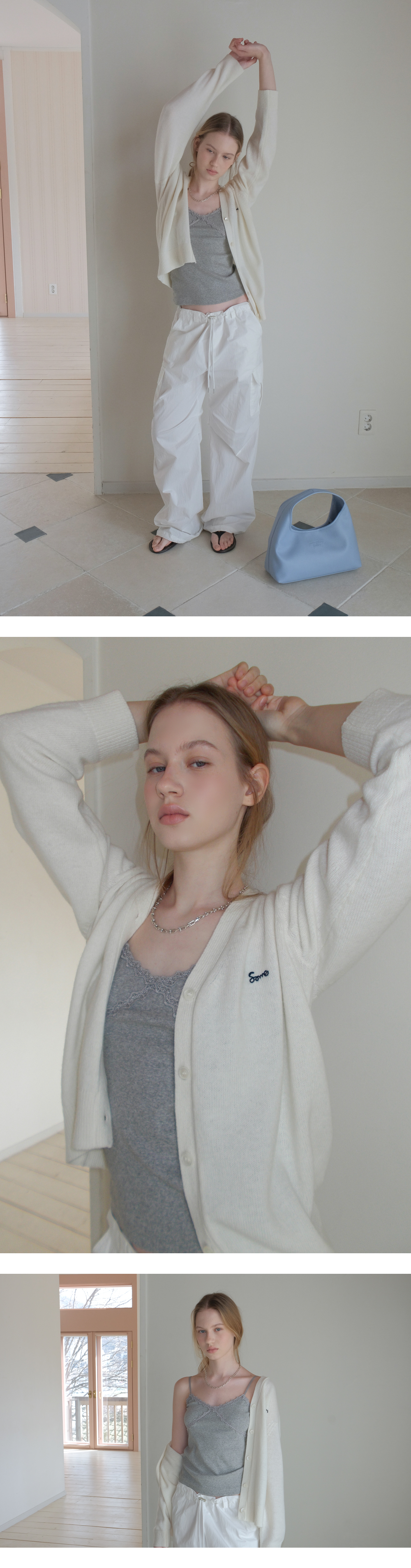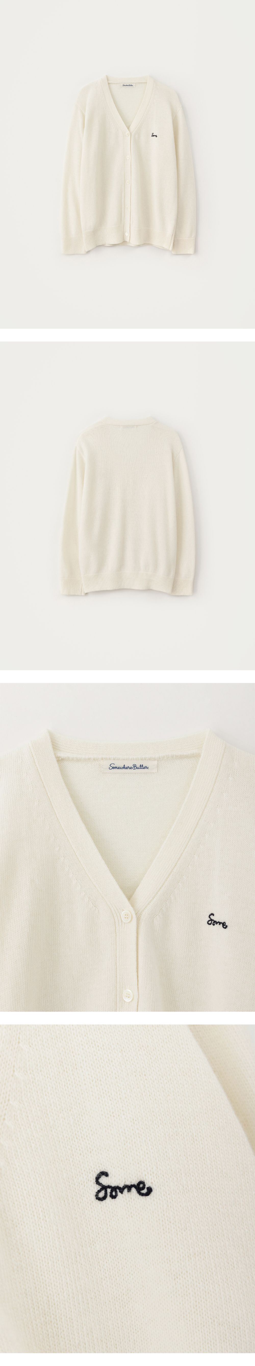 デイリールックに取り入れやすい『Rudy V-Neck Cardigan』です。柔らかなファインウール混紡糸で軽く、保温性にも優れ、程よくゆとりのあるシルエットを提供します。胸元片側にはサムロゴのチェーン刺繍ディテールでさりげないポイントを加え、前立ては総針始末でクリーンに仕上げました。袖口と裾はリブ編みで安定したフィットをキープし、サムウェアバターのロゴ刻印入りシェルボタンでディテールをプラス。深すぎないVネックで、さまざまなインナーとのレイヤードにも最適です。