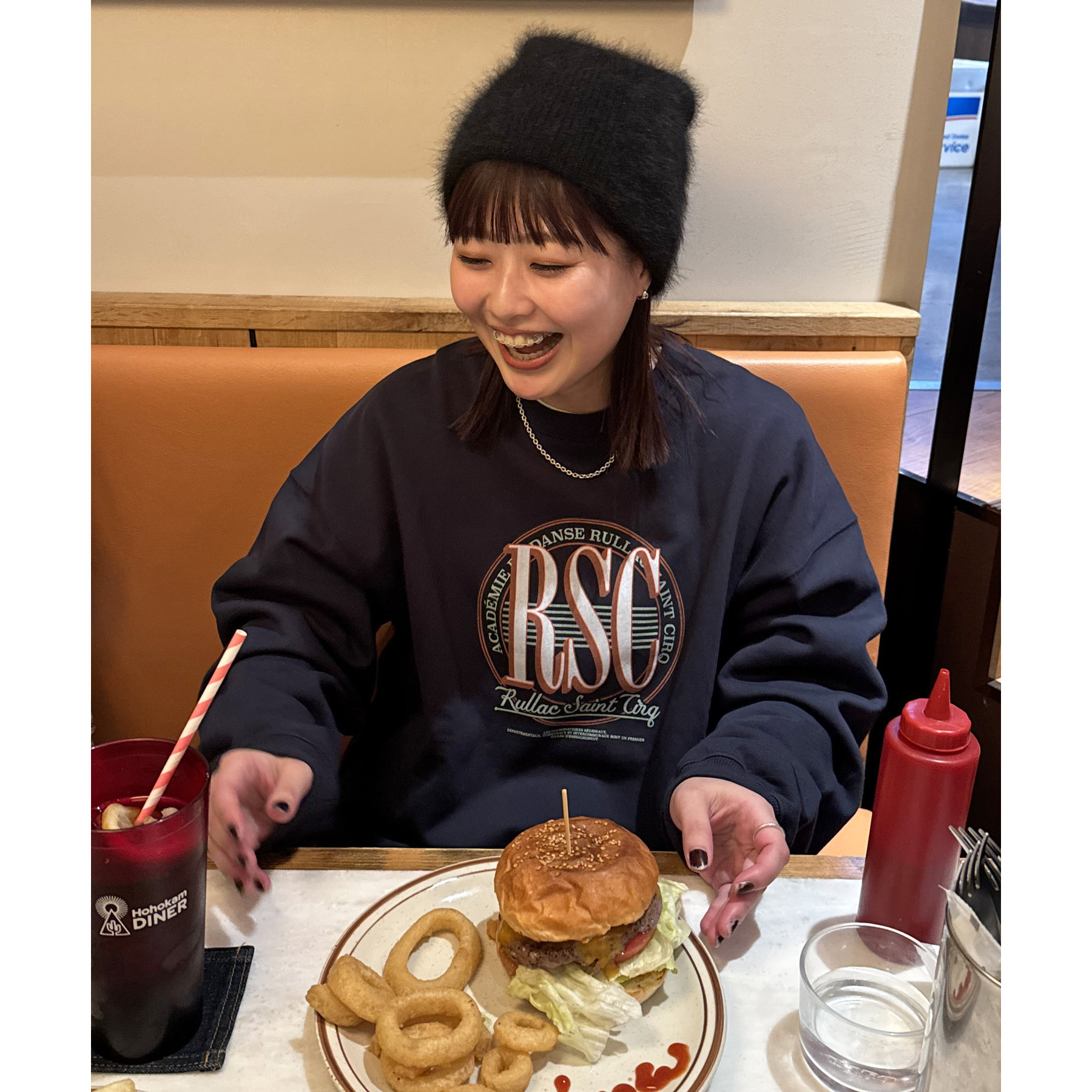 159cmレディーススタッフ(Fサイズ着用):ロゴにカラーが入っているので、小物で色味を拾ってもかわいいです◎