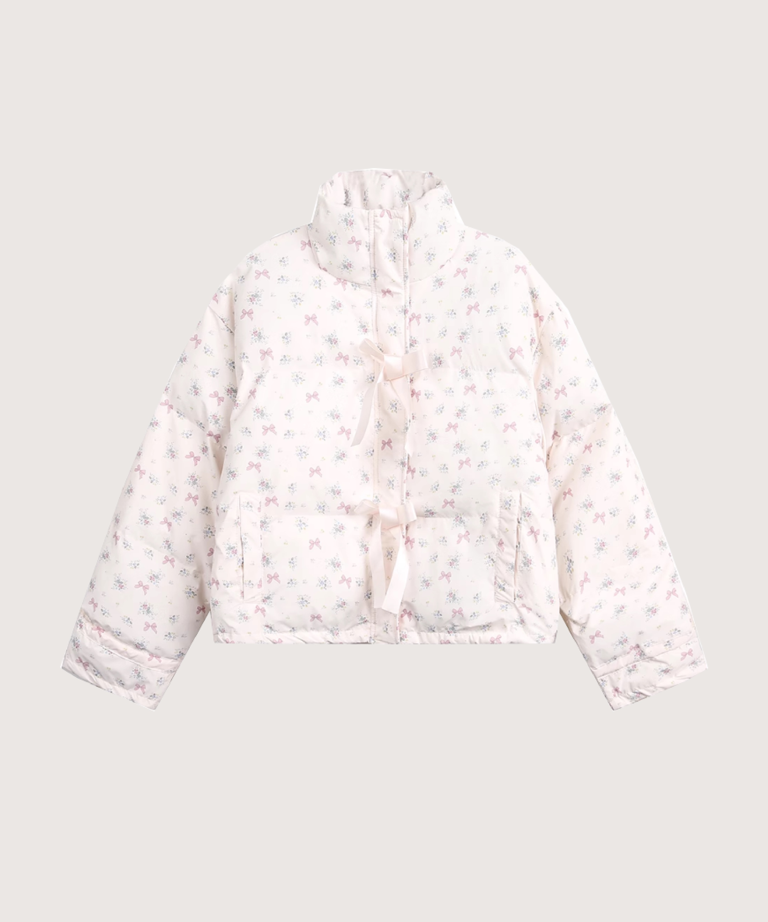 スイートフローラルリボンモチーフダウンジャケット
