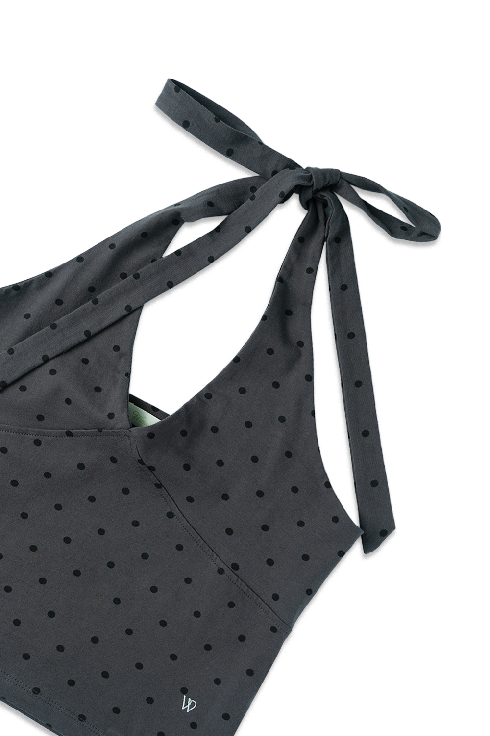 ドット柄の愛らしさを、洗練されたシルエットで表現した「Dot Halter Neck Top」です。