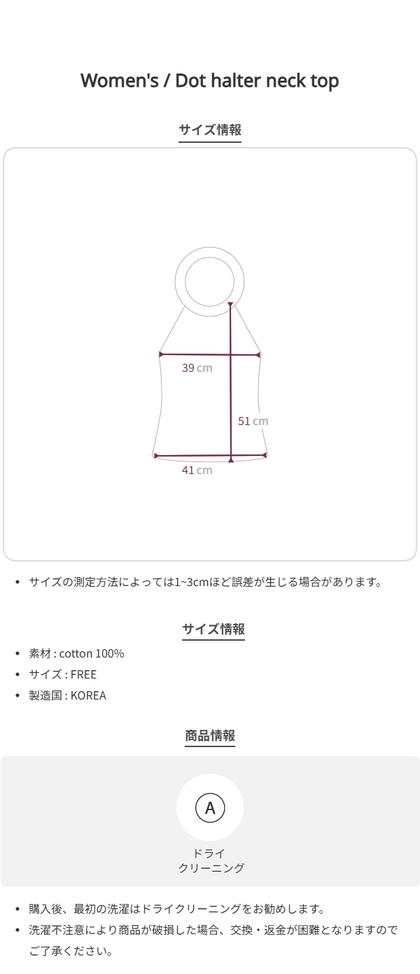 繊細なドットパターンとホルターネックデザインが調和し、ナチュラルでフェミニンなムードを演出します。