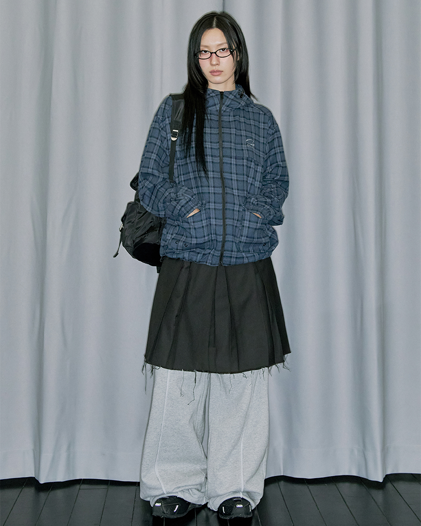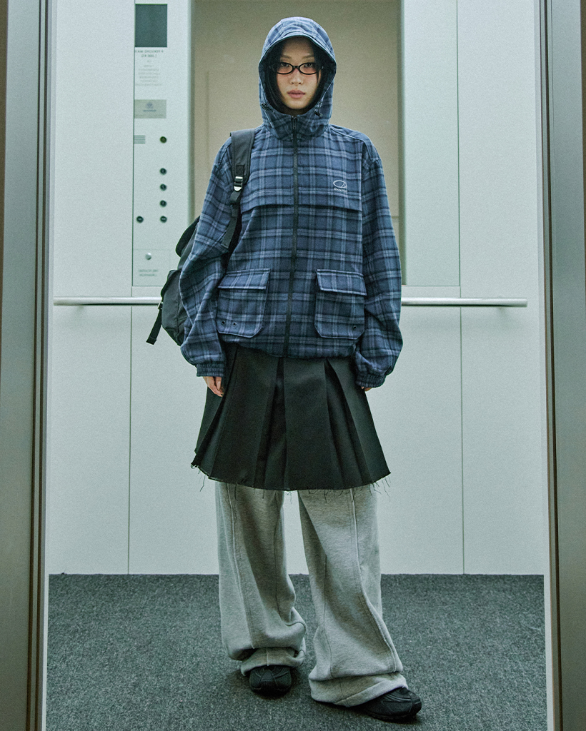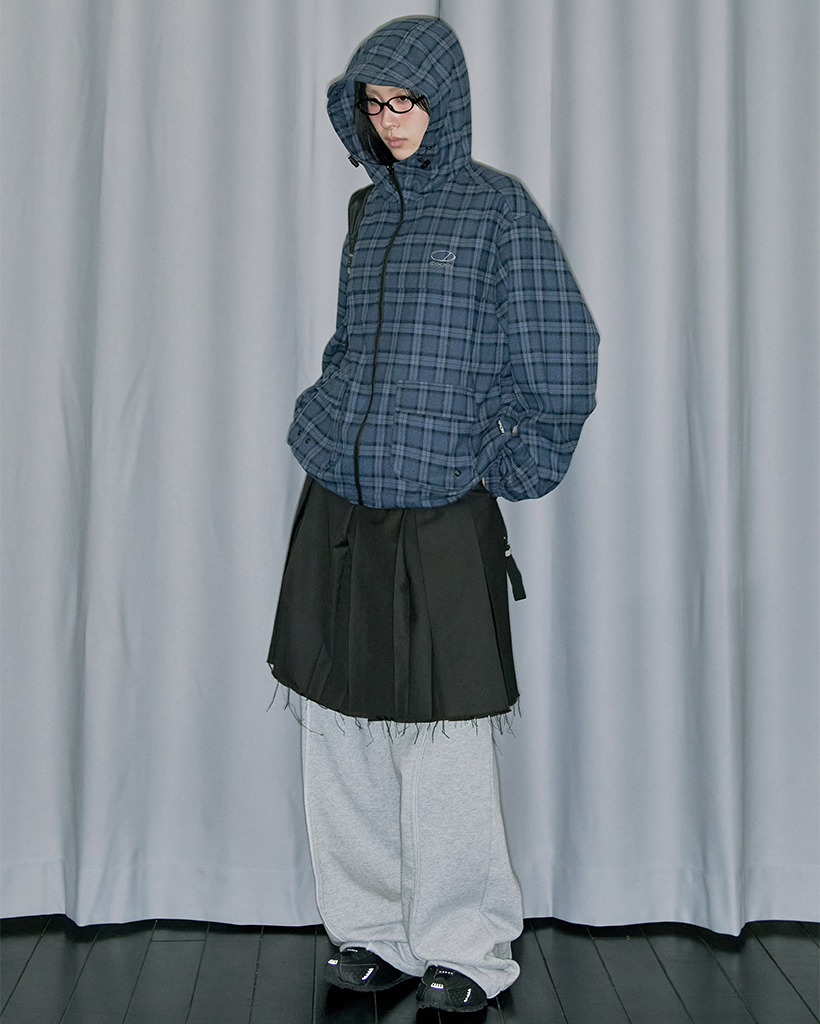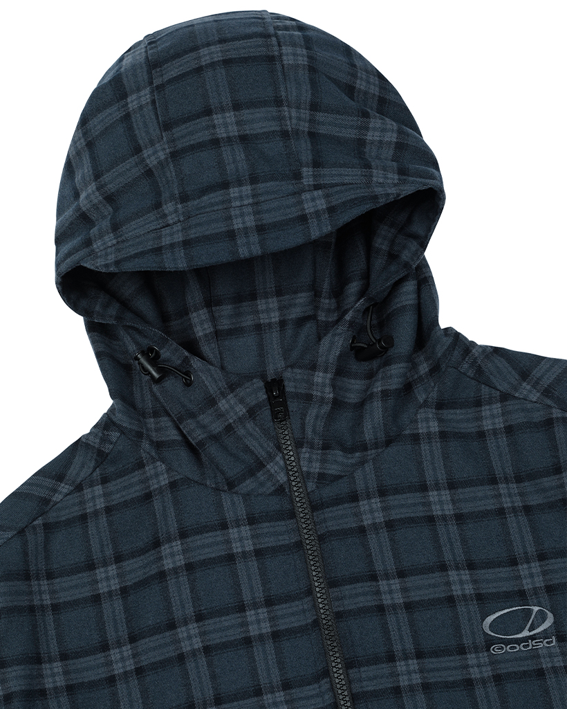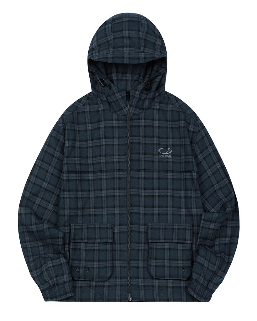 Flannel Check Hood Jacket - NAVY