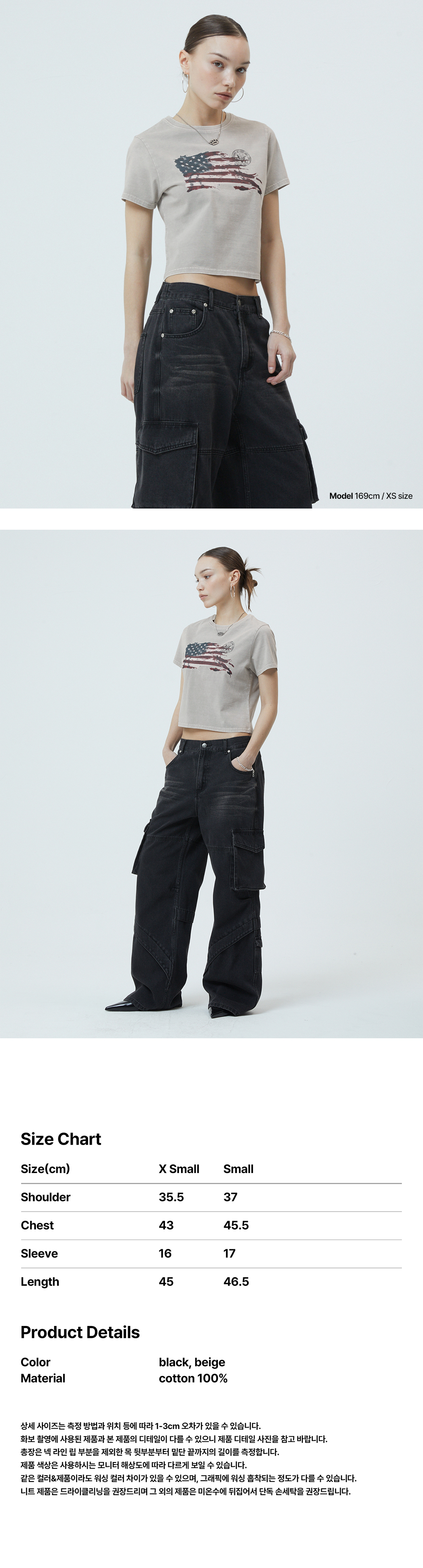 WASHED FLAG CROP TEE[BEIGE]