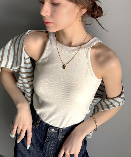 抜け感のあるアメスリデザインが魅力のタンクトップ。