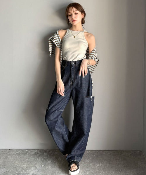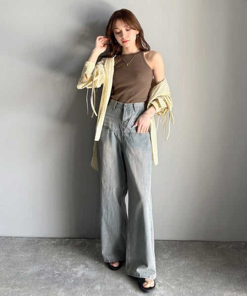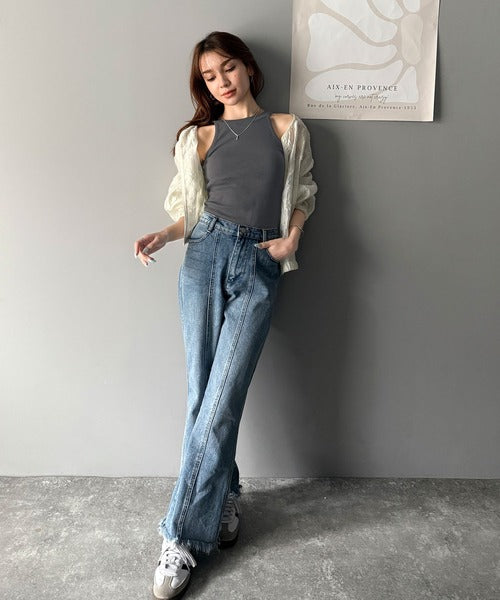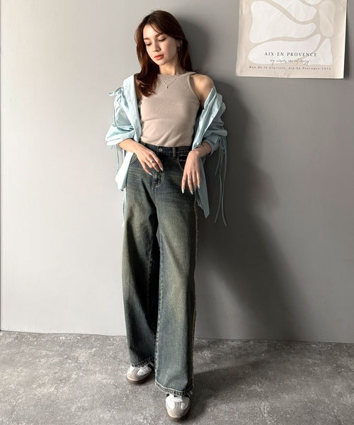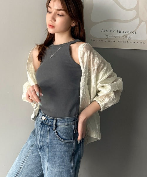 バンドカラーシャツやシアーブラウスを合わせたお出かけコーデとも相性抜群です♪