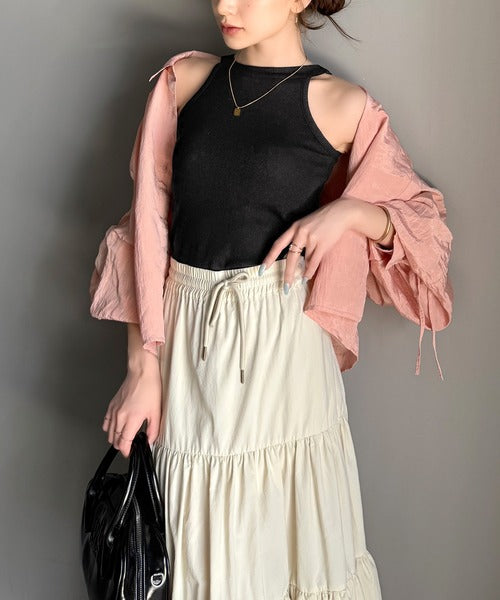今季はオフショルダートップスのなかにレイヤードするのがおすすめ♪