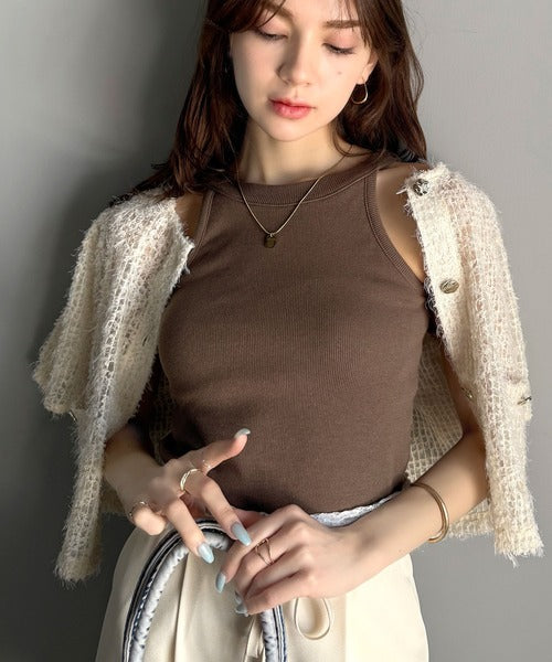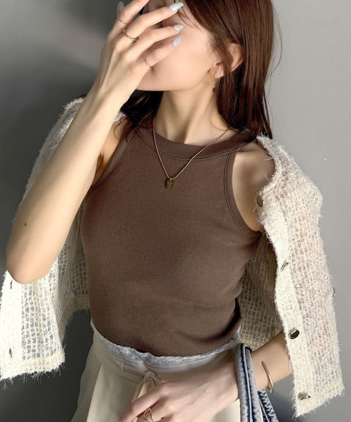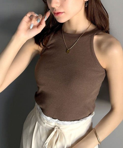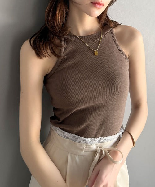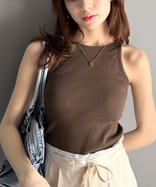 【mily bilet】シンプルに1枚でも着られる♪カップ付きテレコリブアメスリタンクトップ mi1029123