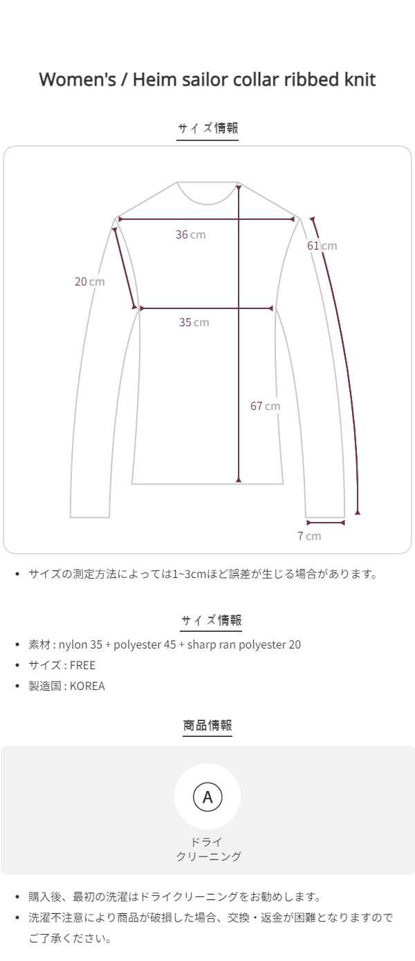 HEIGHT 168cm / BUST 81cm / WAIST 58cm / HIP 83cm