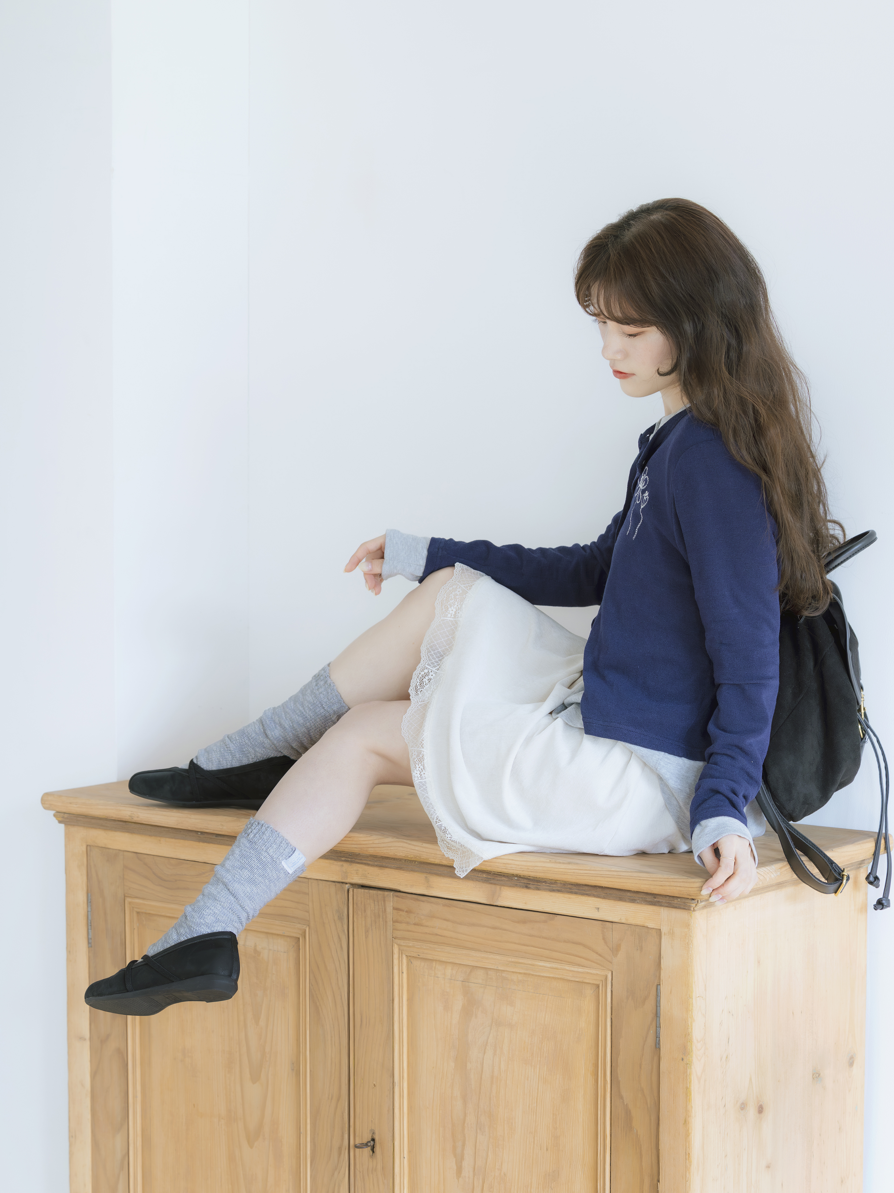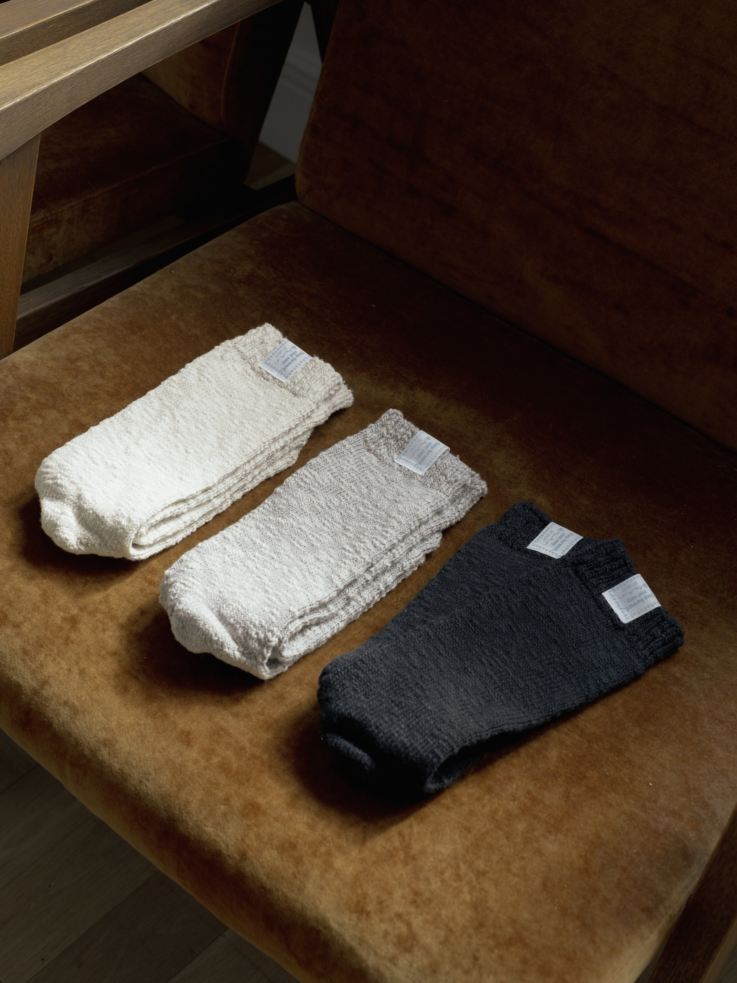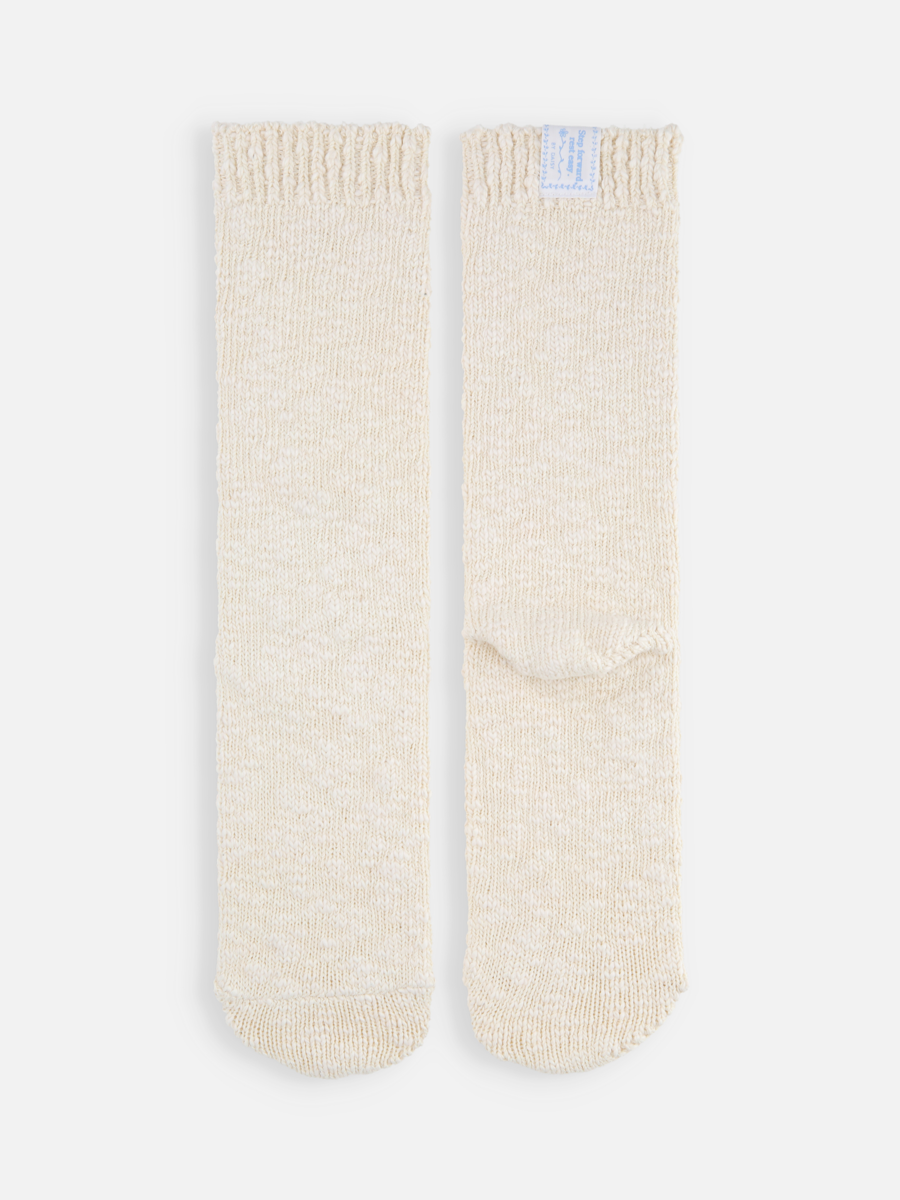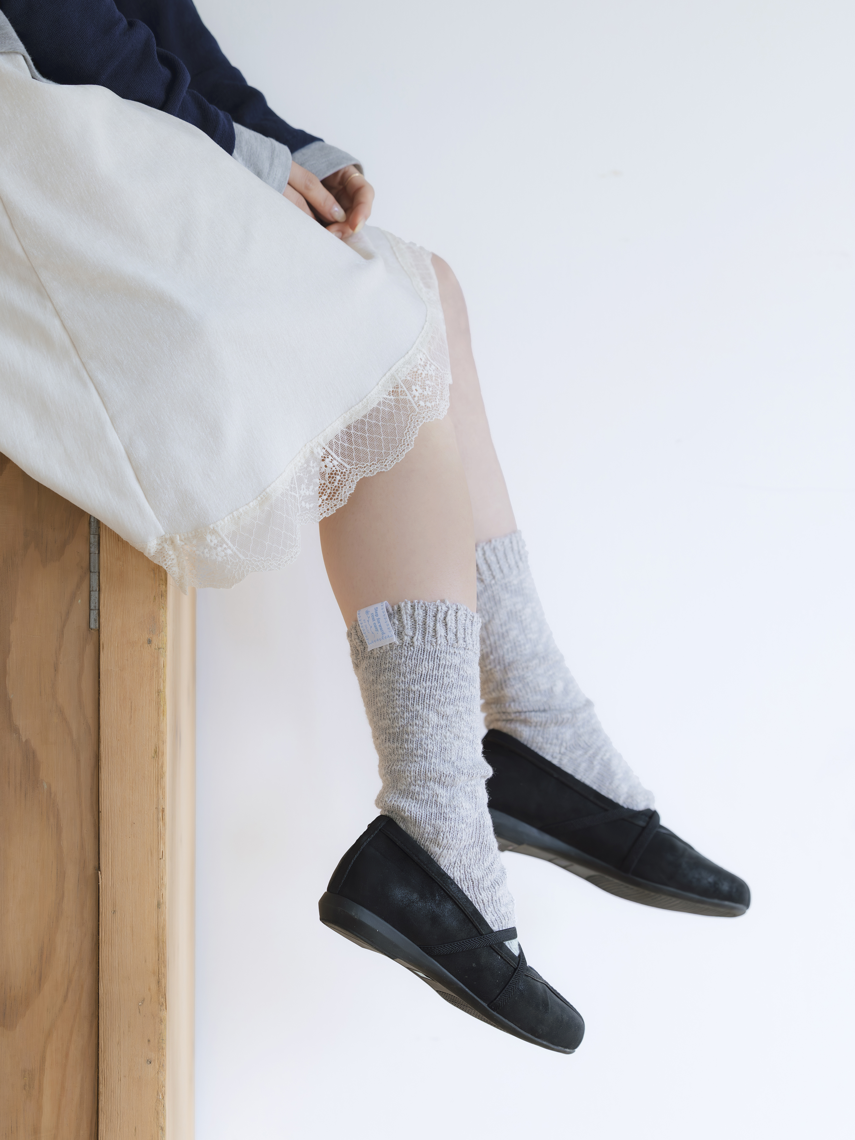 ざっくりとしたナチュラルなスラブ糸で編んだローゲージソック