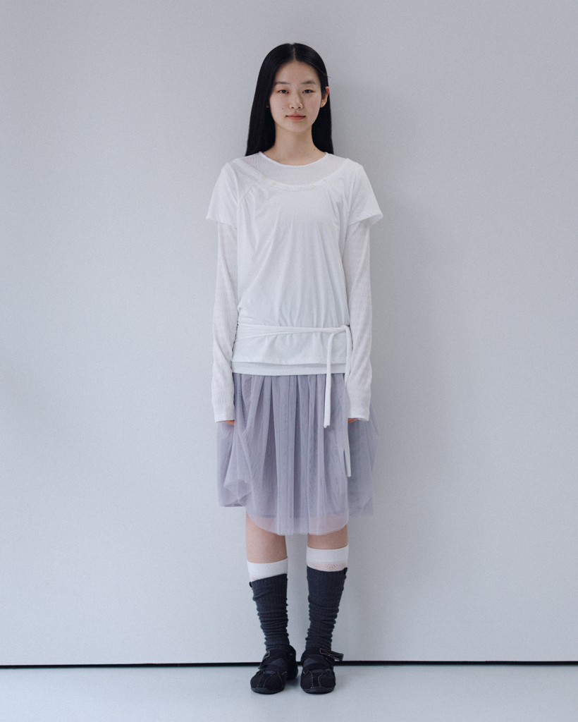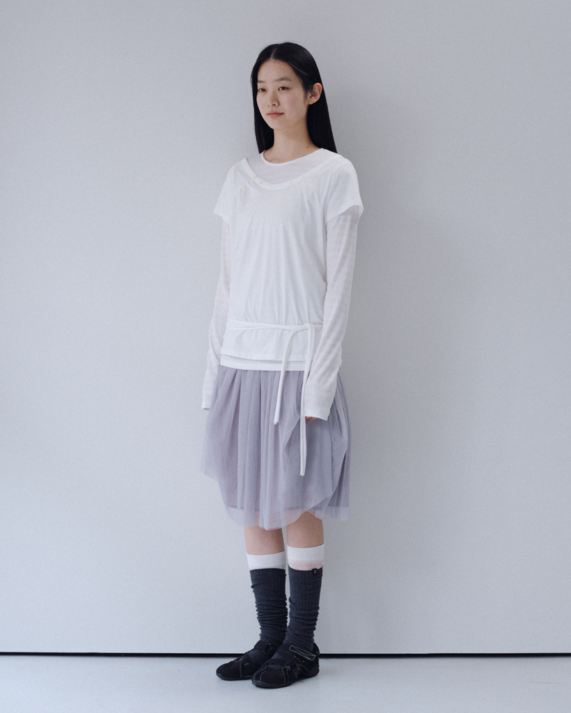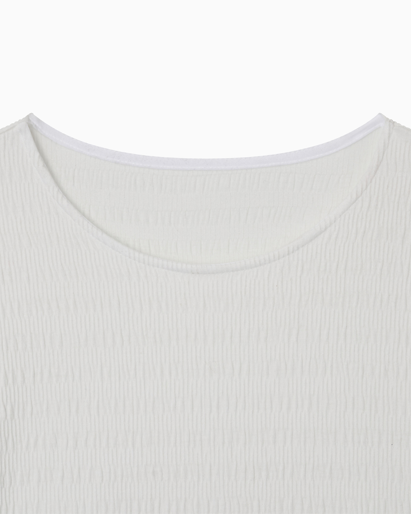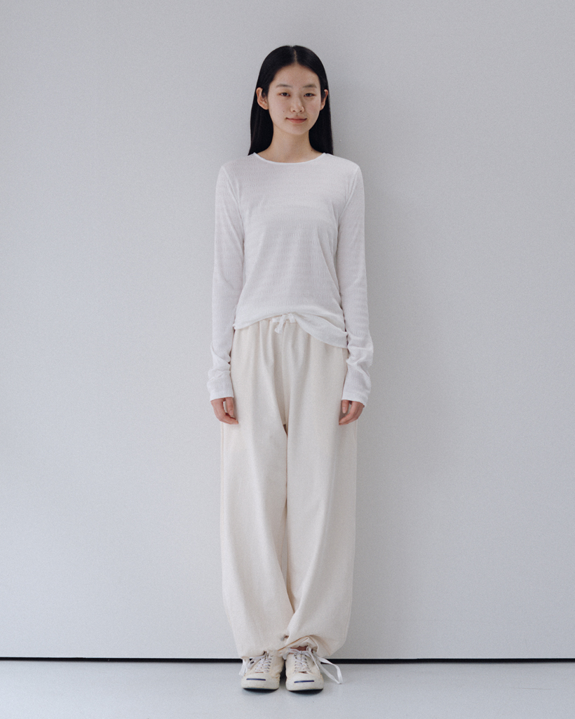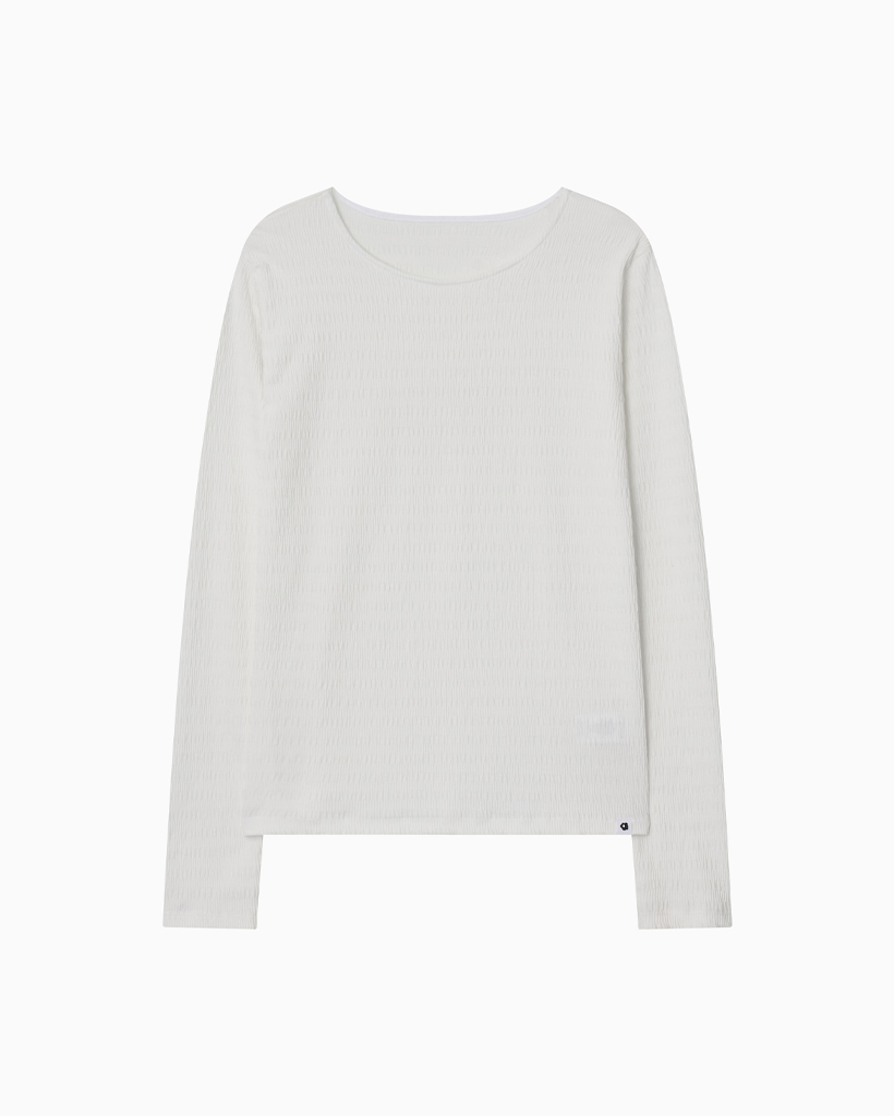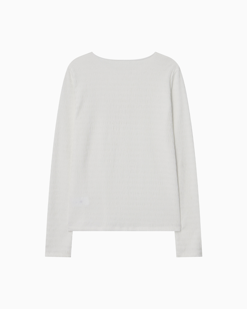 STRIPE PLEATED LONG SLEEVE, WHITE