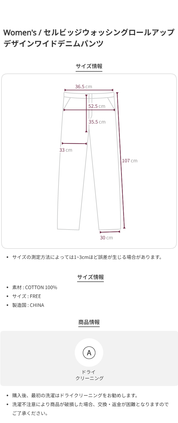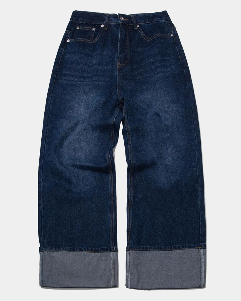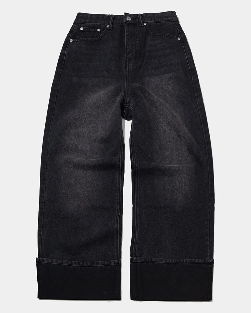 セルビッジウォッシングロールアップデザインワイドデニムパンツ_2COLOR