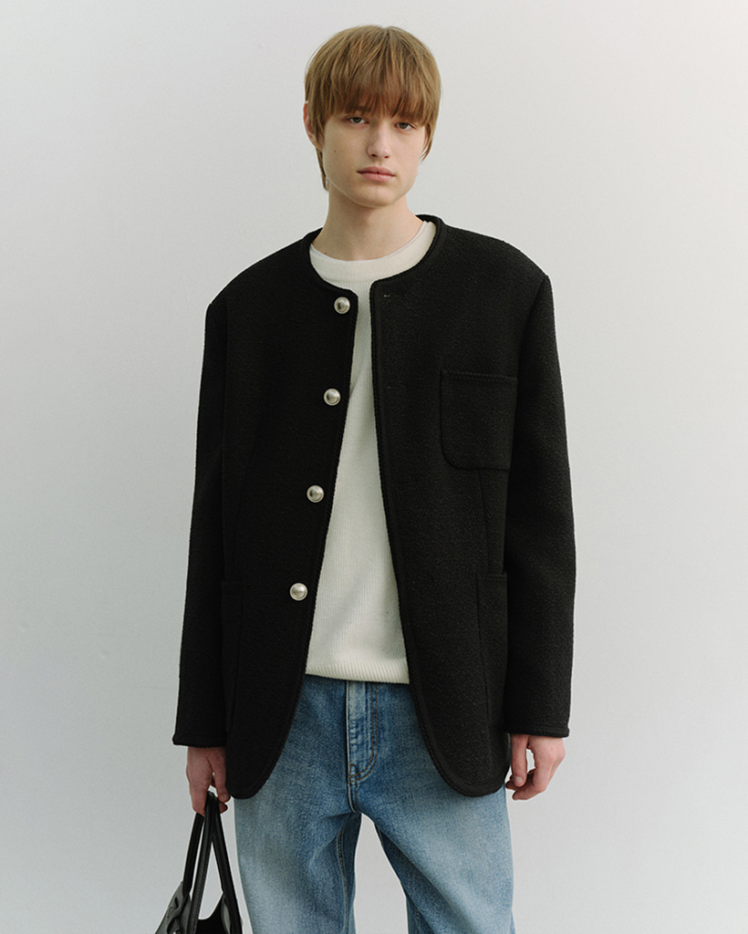 UNISEX COLLARLESS TWEED JACKET BLACK_M_UDJA6A109BK