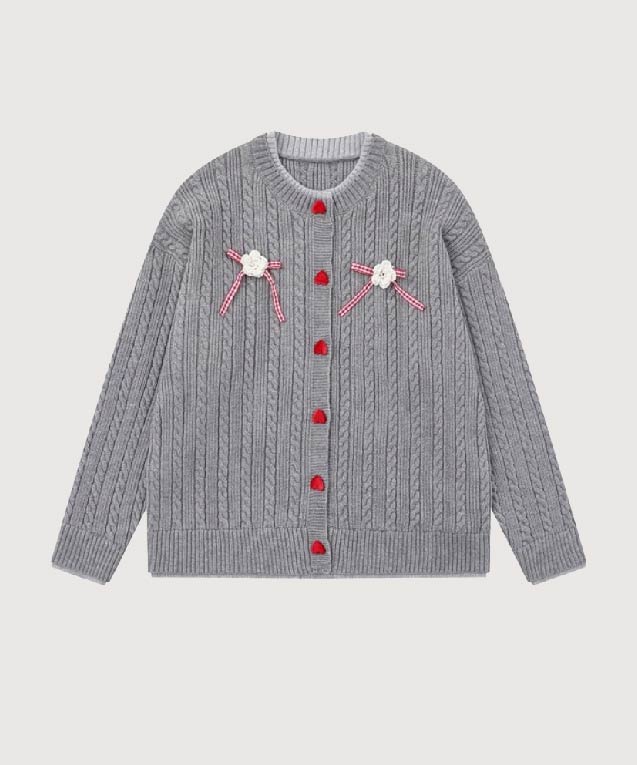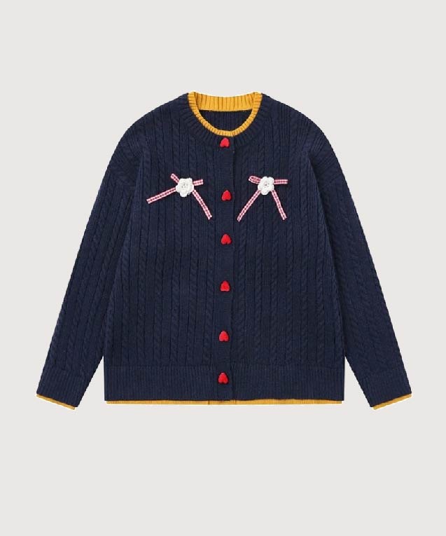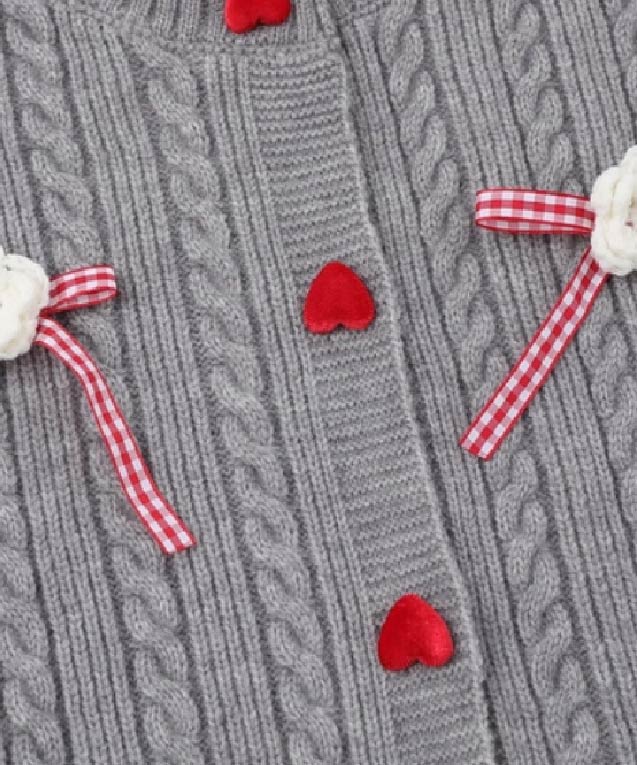 キュートリボンハートボタンリブカーディガン