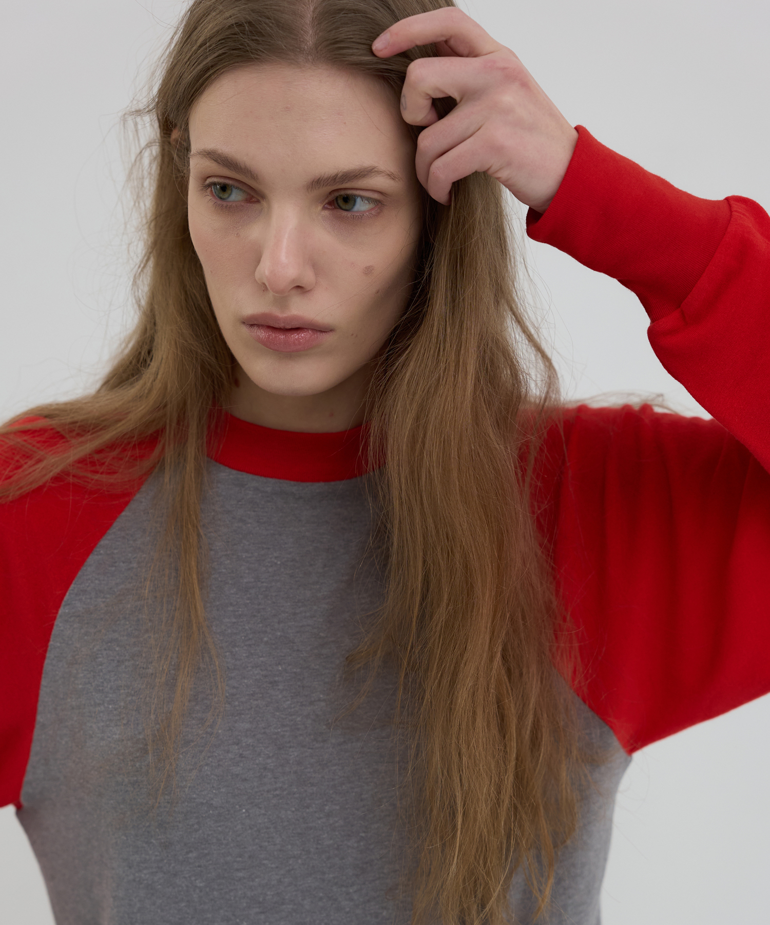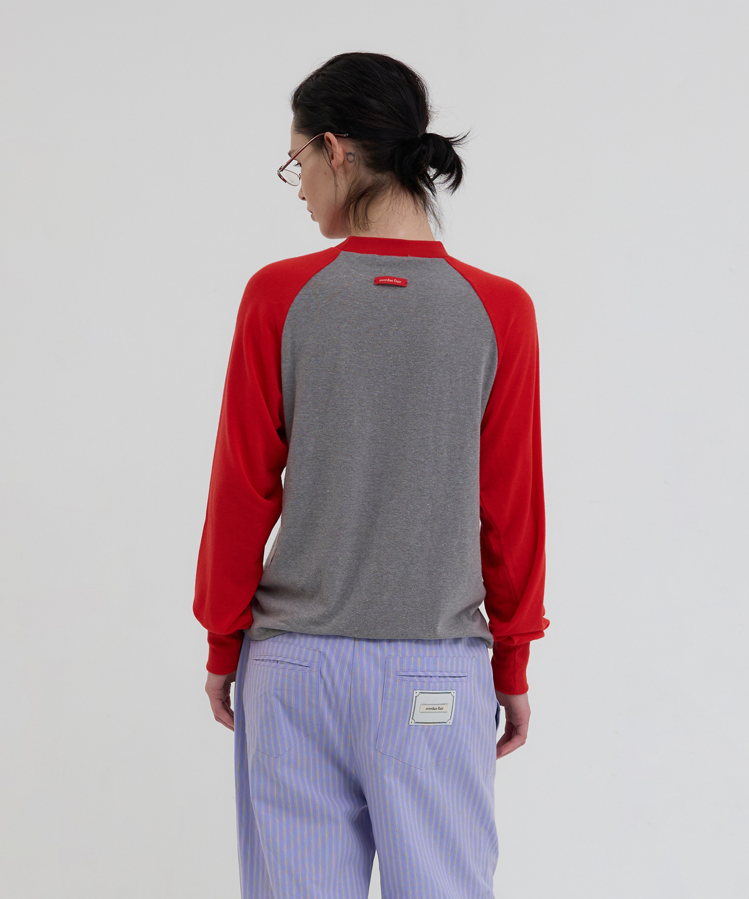 COLOR COMBI RAGLAN T-SHIRT_GRAY/RED