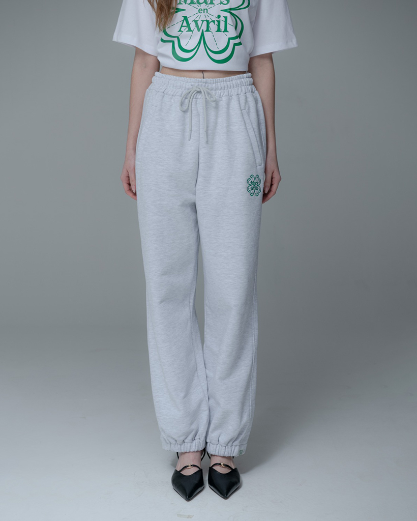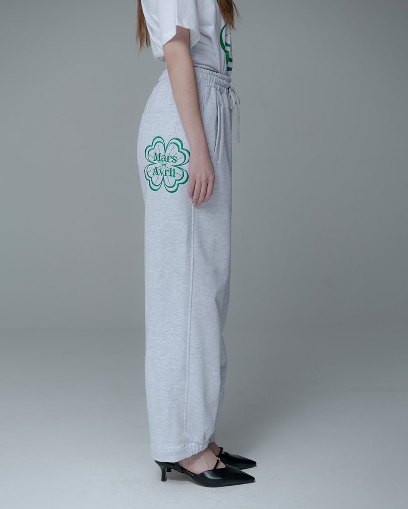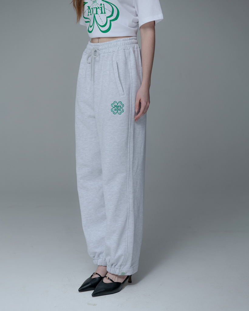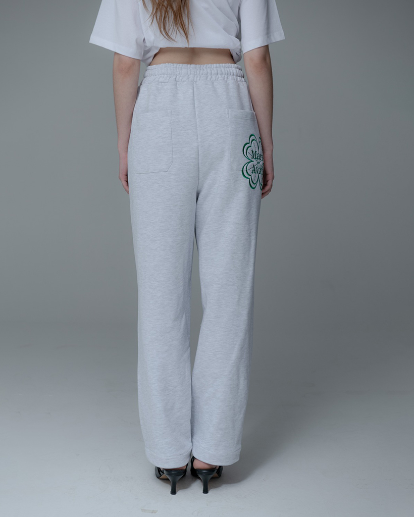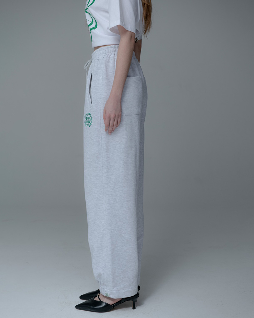 CLOVER NEEDLEWORK ZIPPOCKET SWEAT PANTS_WHITE MELANGE GREEN