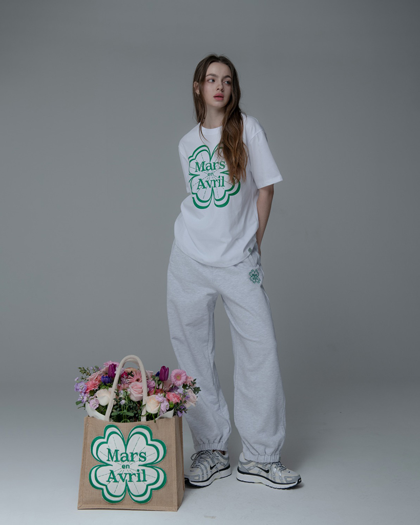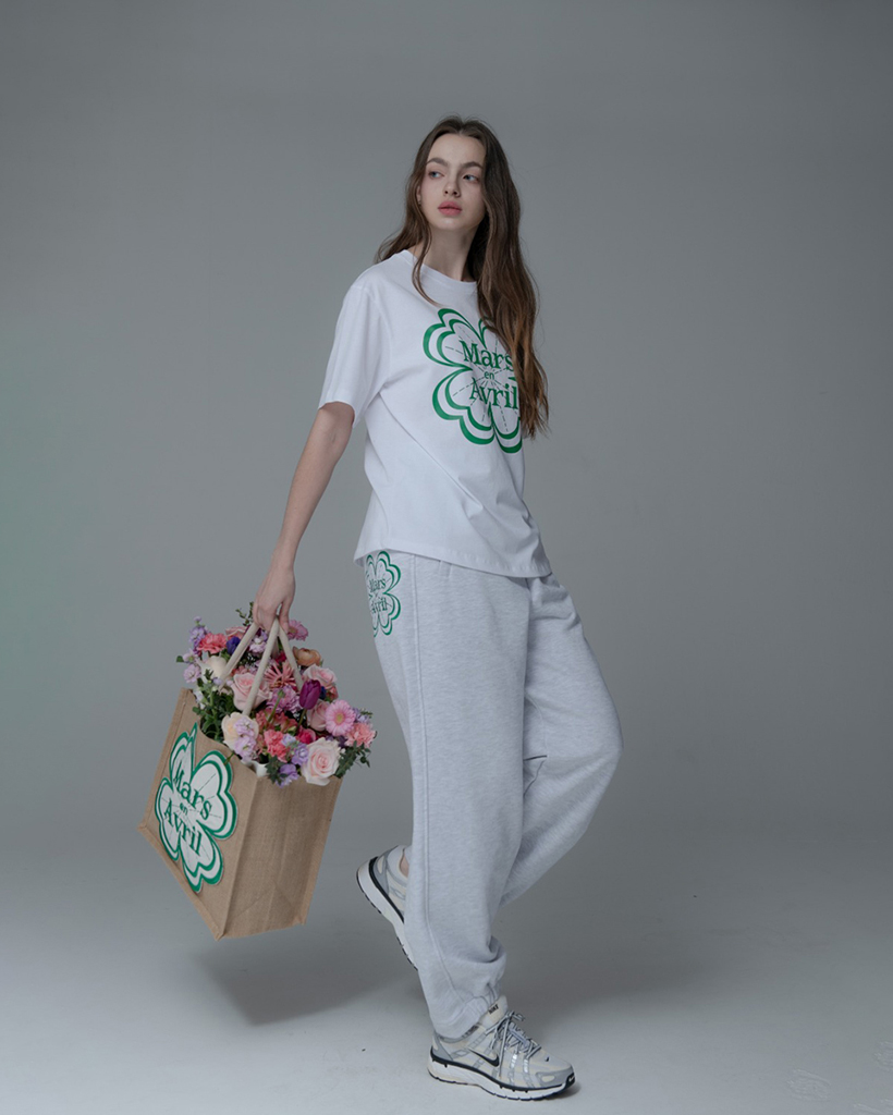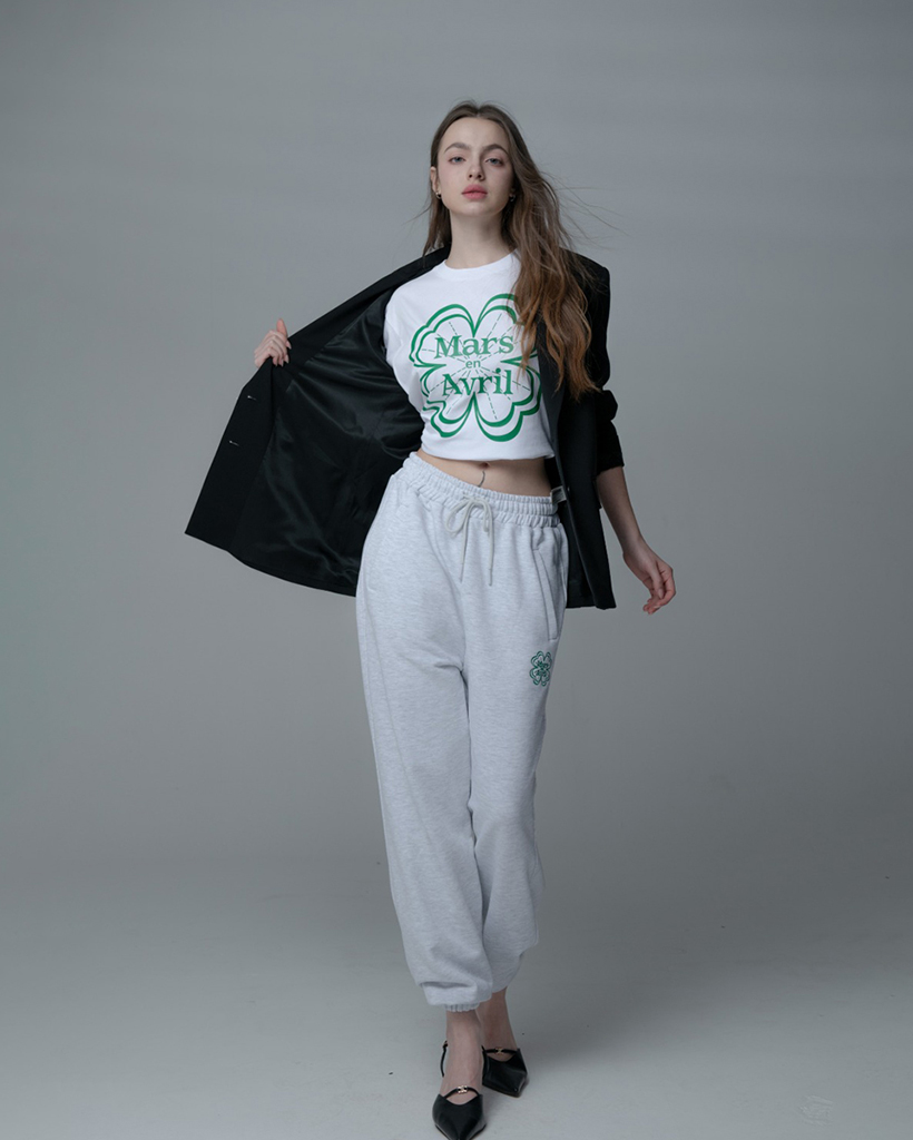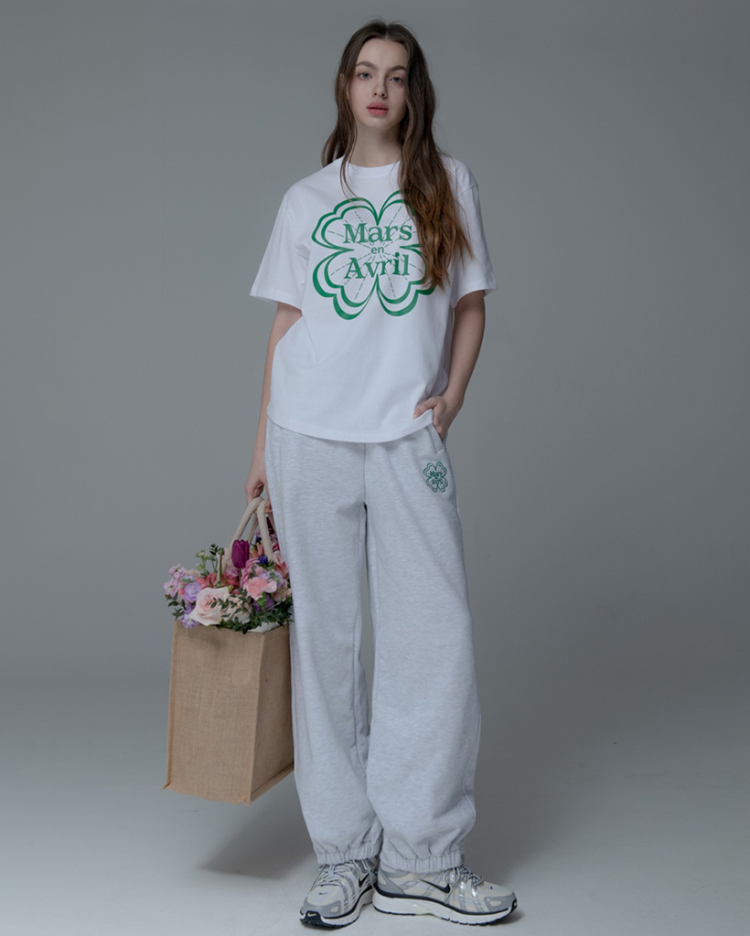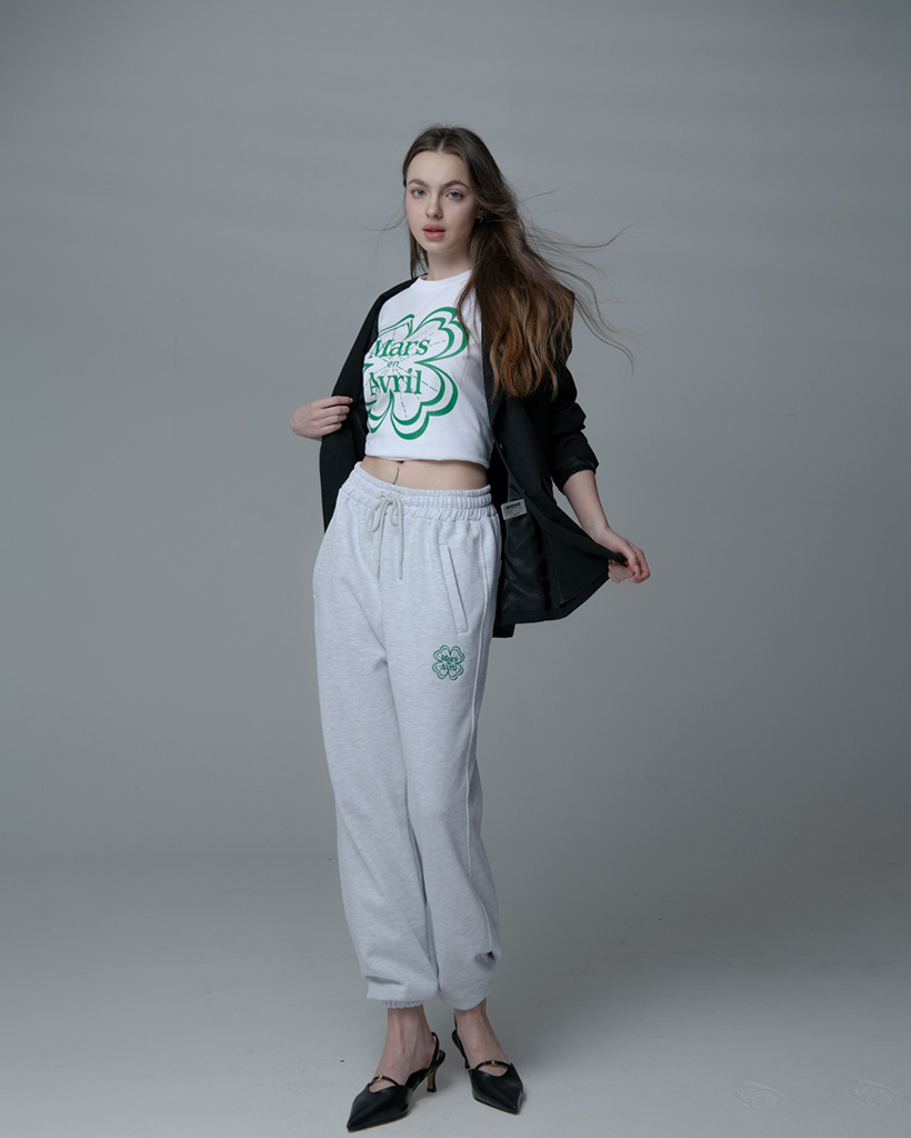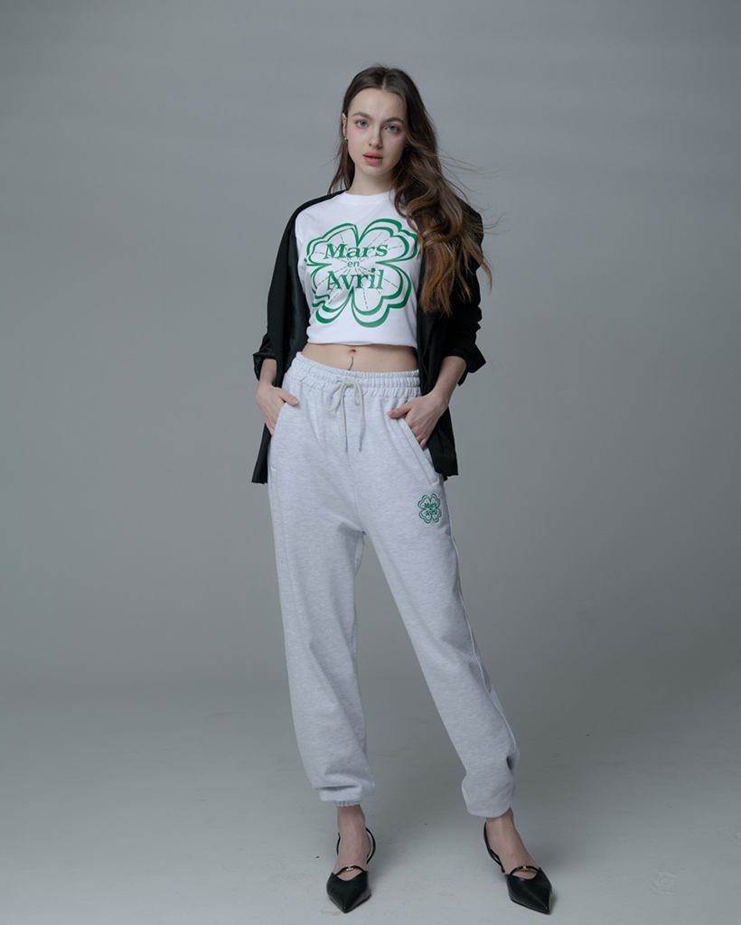 CLOVER NEEDLEWORK ZIPPOCKET SWEAT PANTS_WHITE MELANGE GREEN
