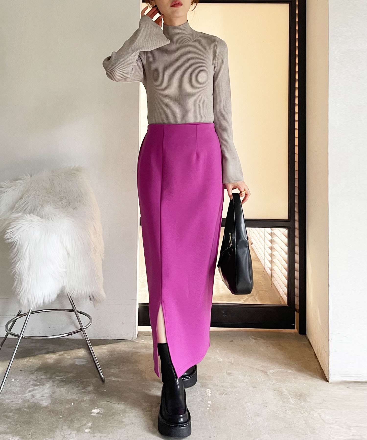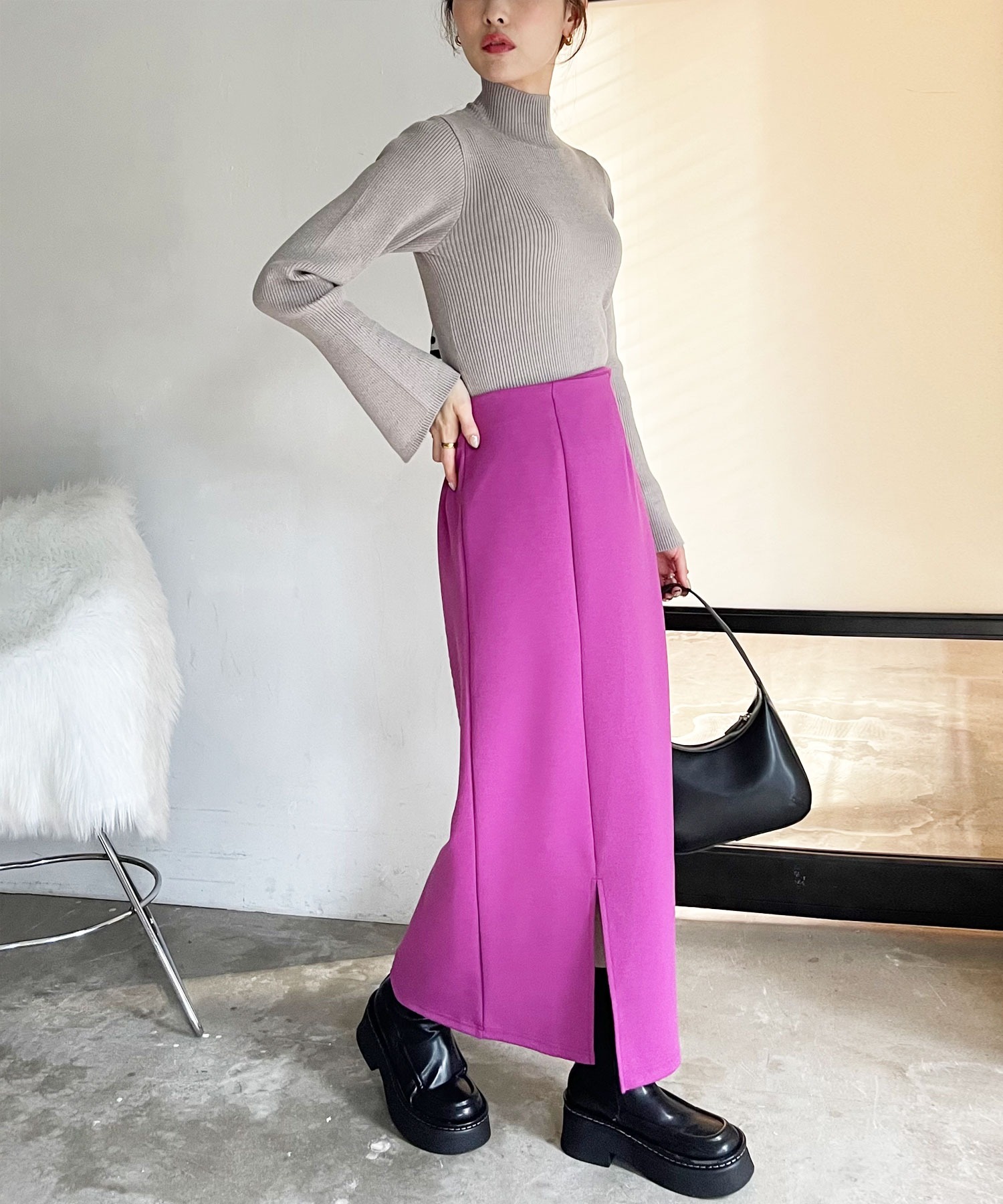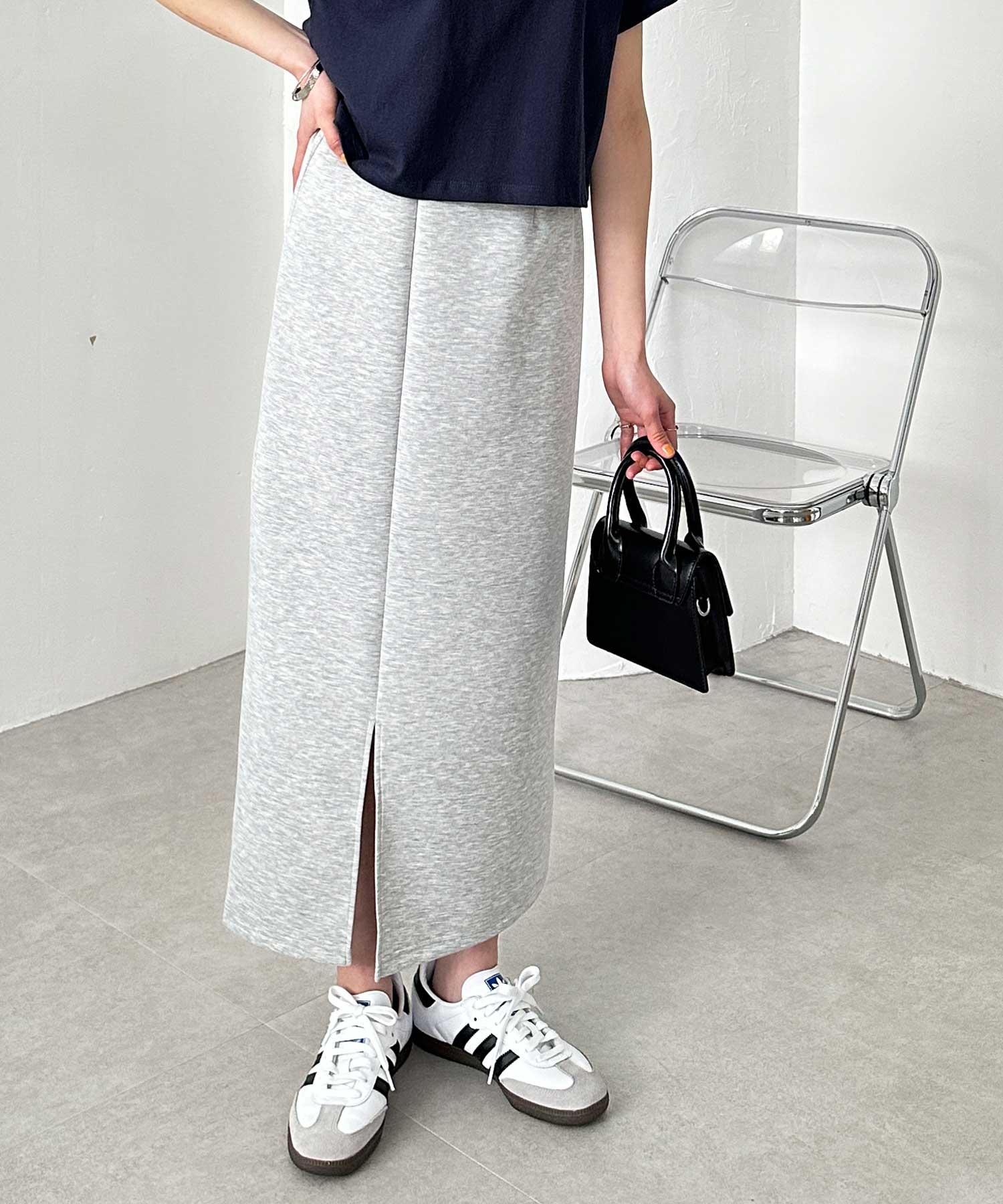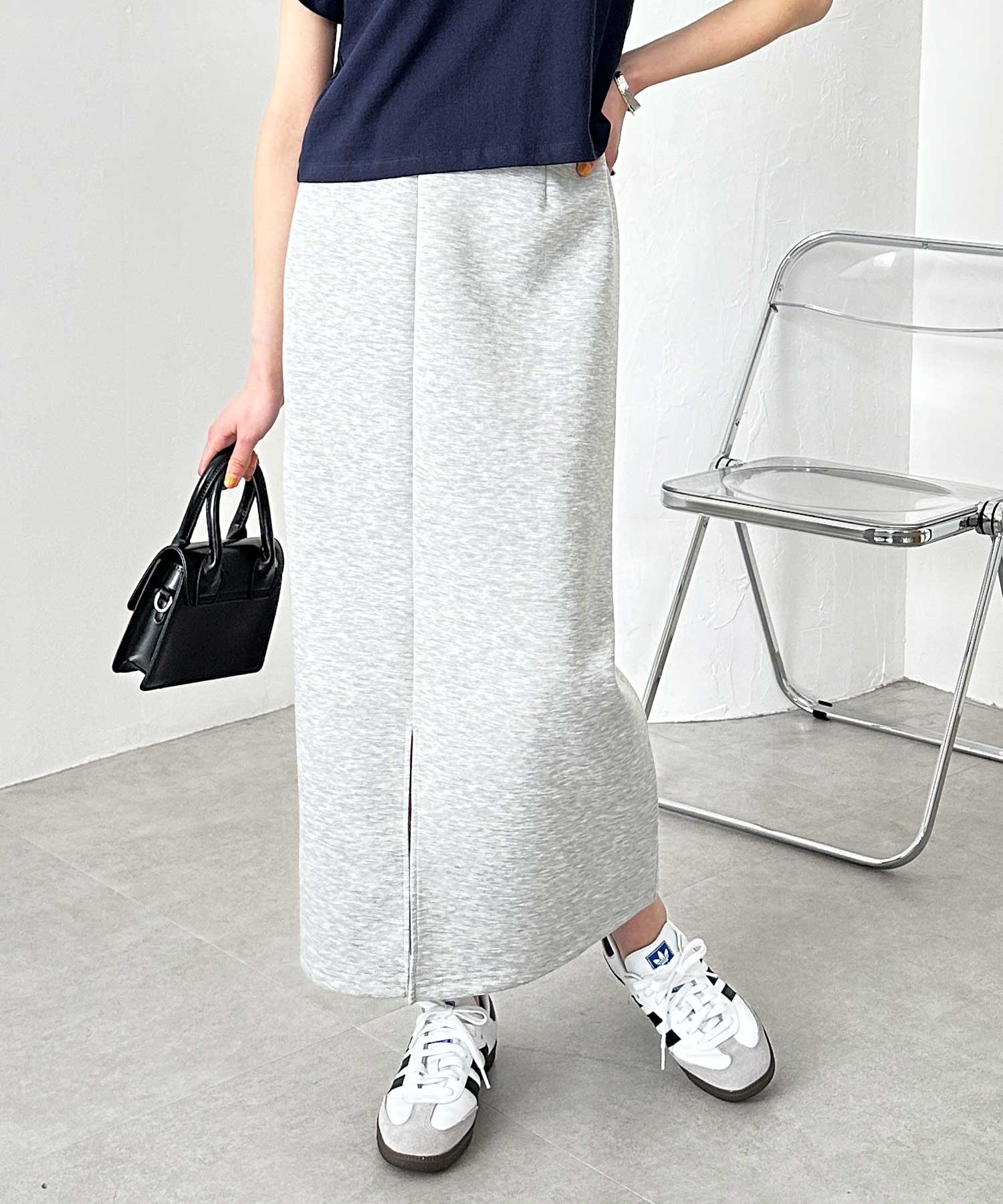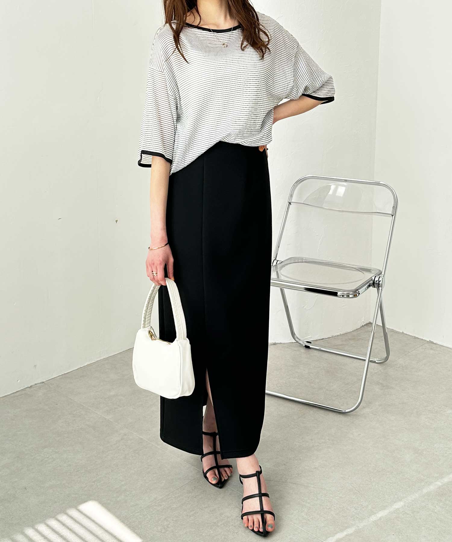 程よいロング丈なので脚長見せとスタイルアップも叶えてくれます。