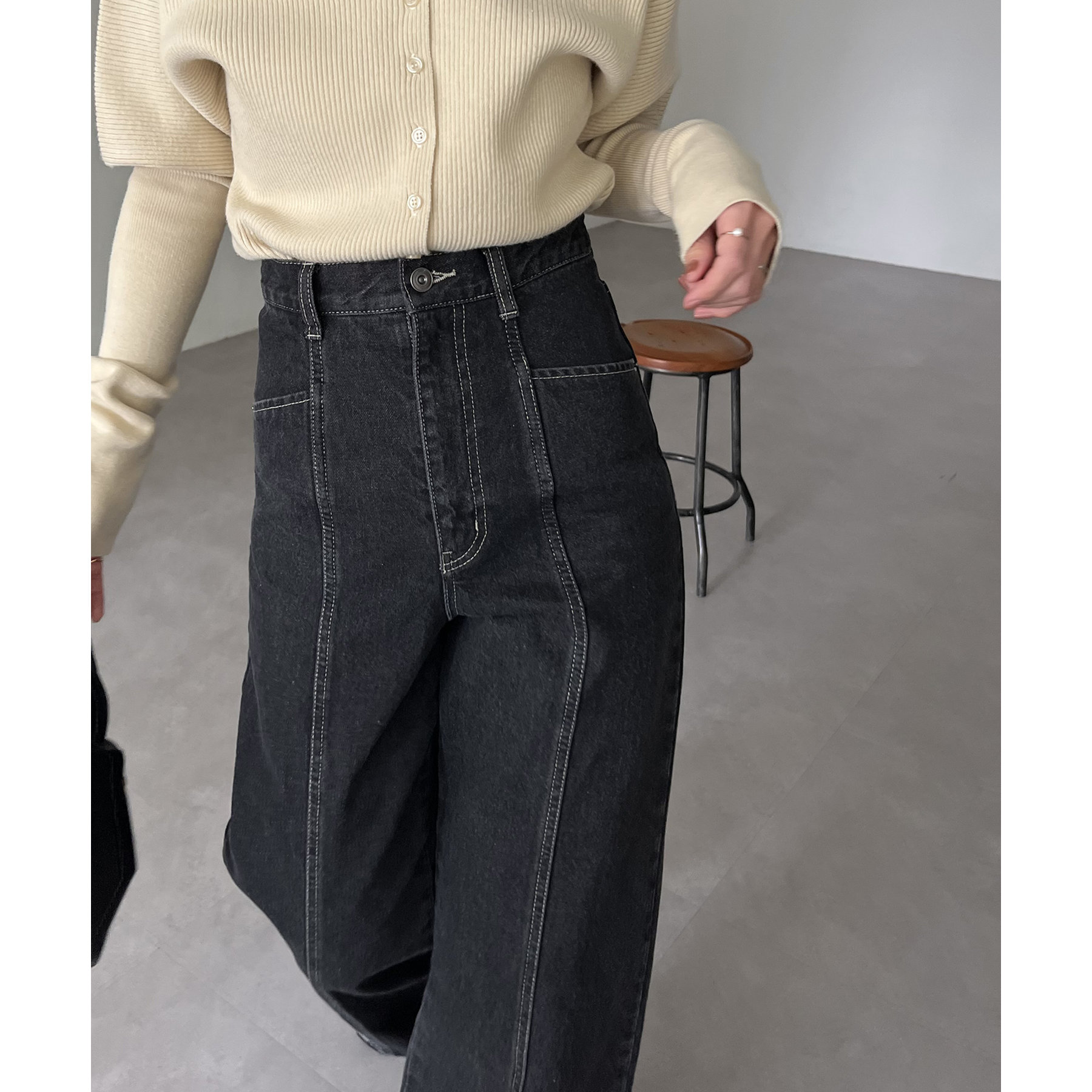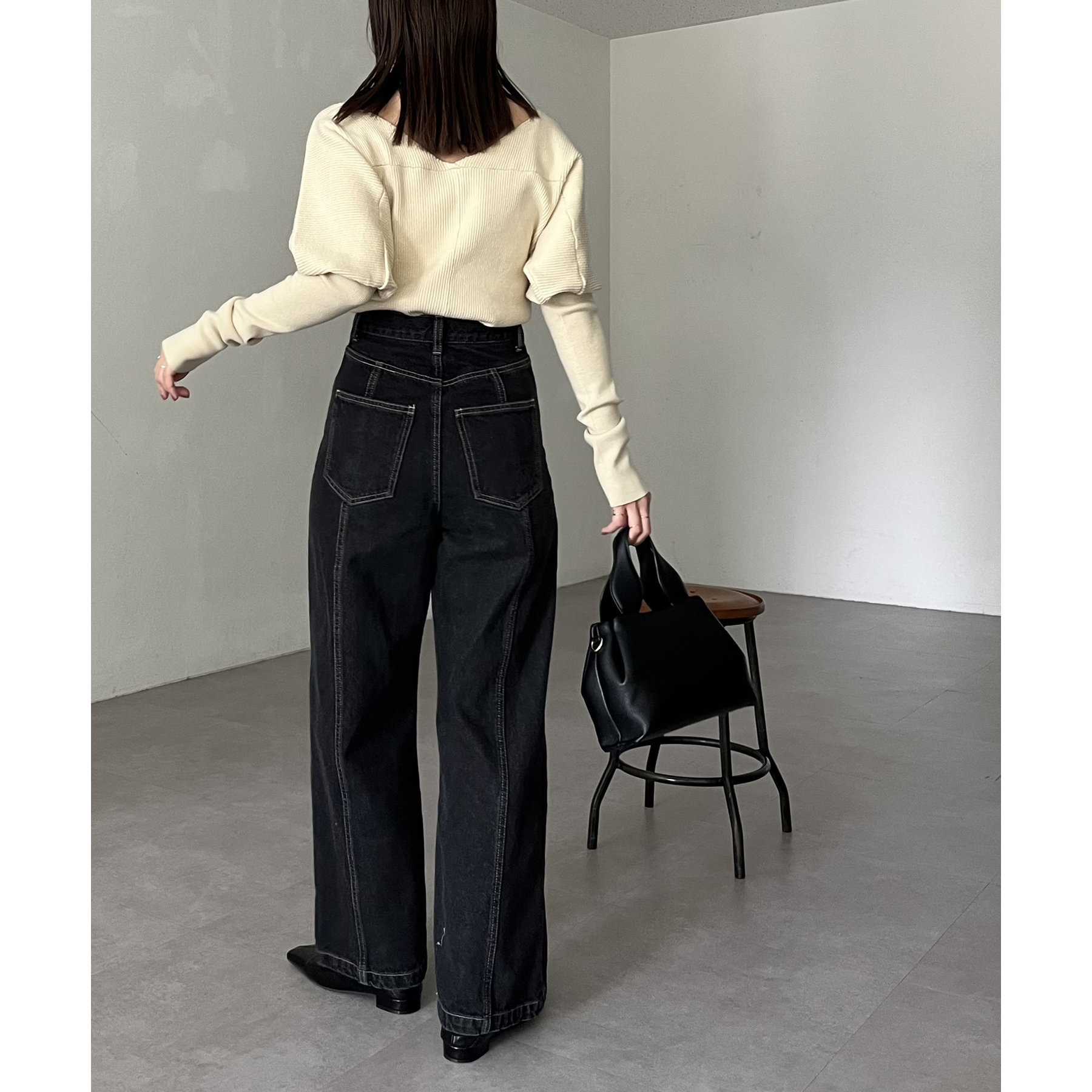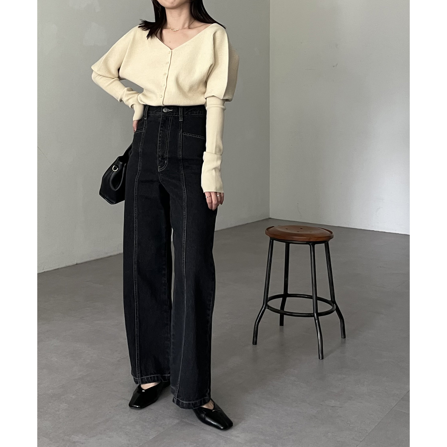 ・センターの切替から脇に向かって斜めに付いたポケットがすっきりとした印象に