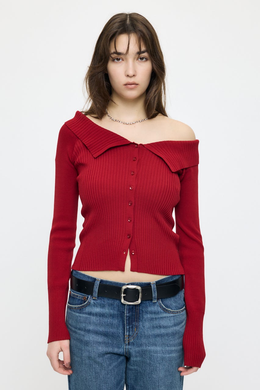 ボートネック・ワンショル・オフショルの3wayで着用できる、デザイン性の高いリブニット。