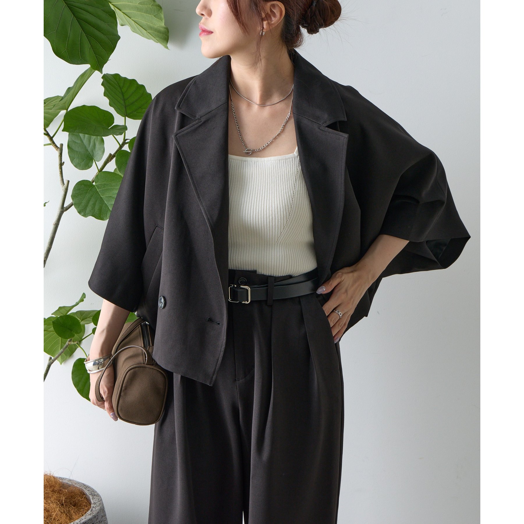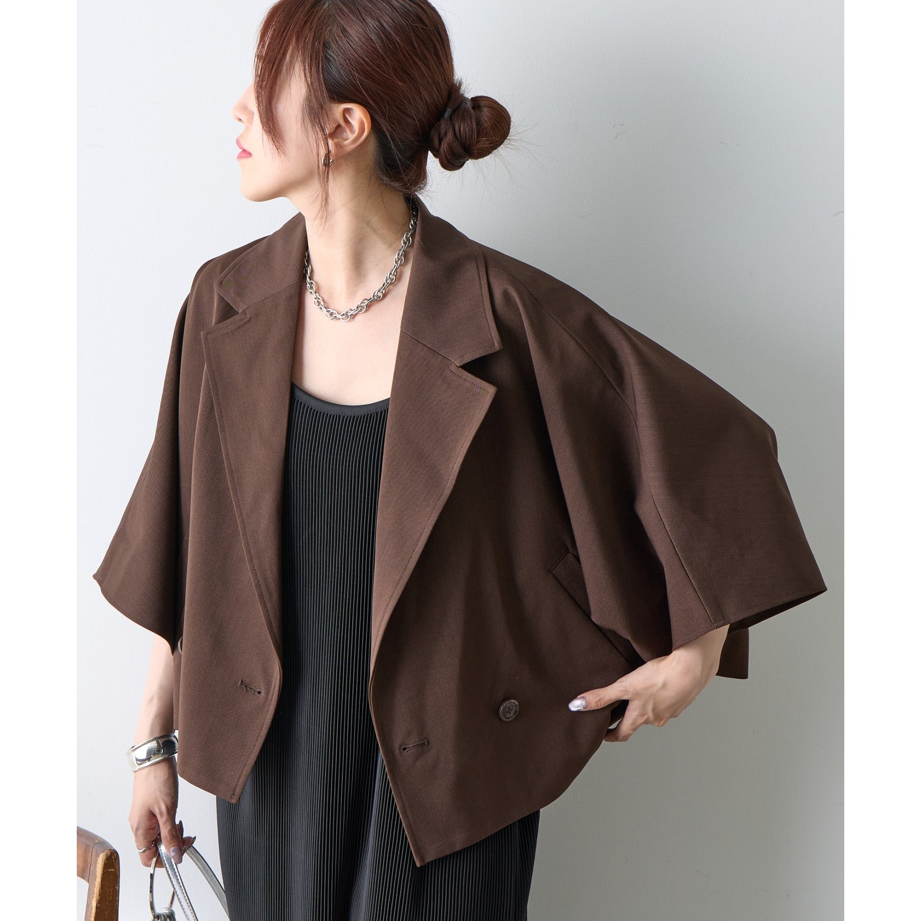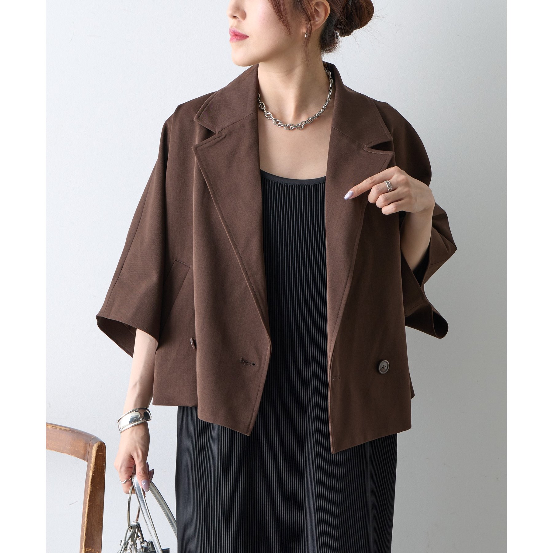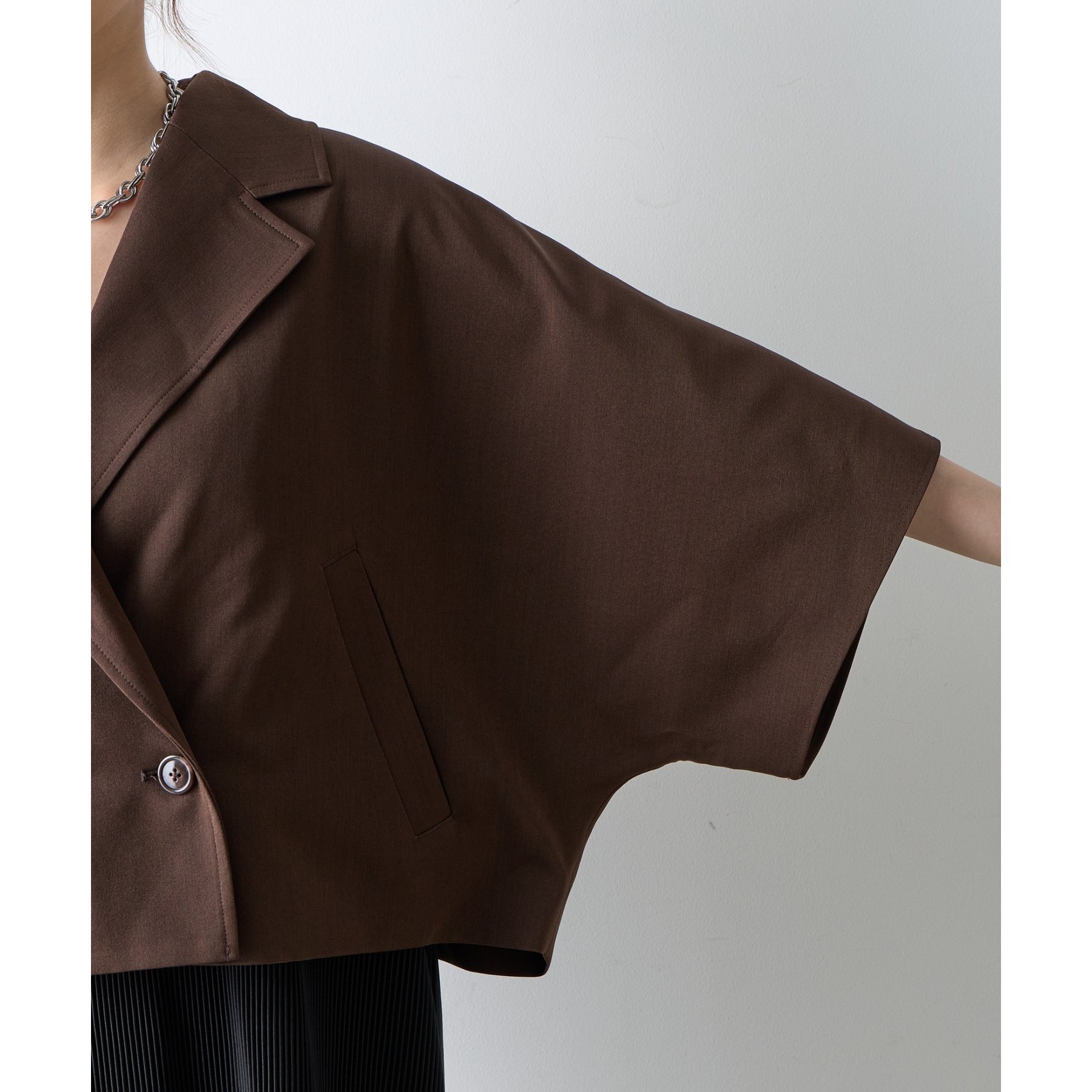クラシックなテーラードデザインとショートの丈感のバランスがかわいく、ビジネスからカジュアルまで幅広いシーンにマッチします。