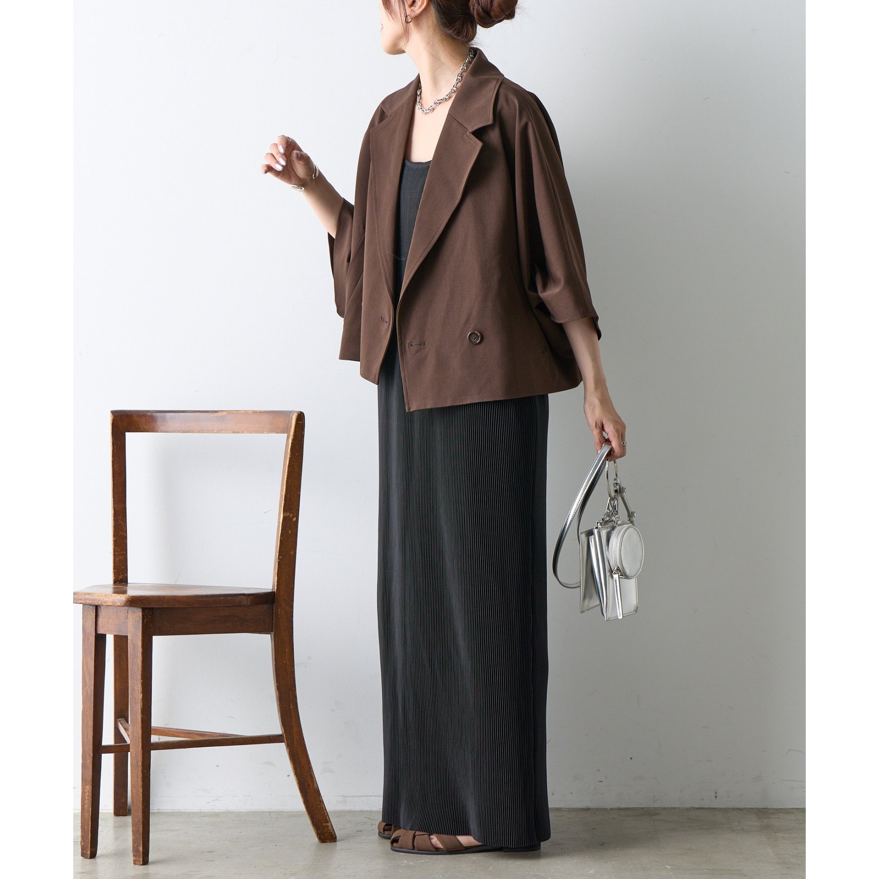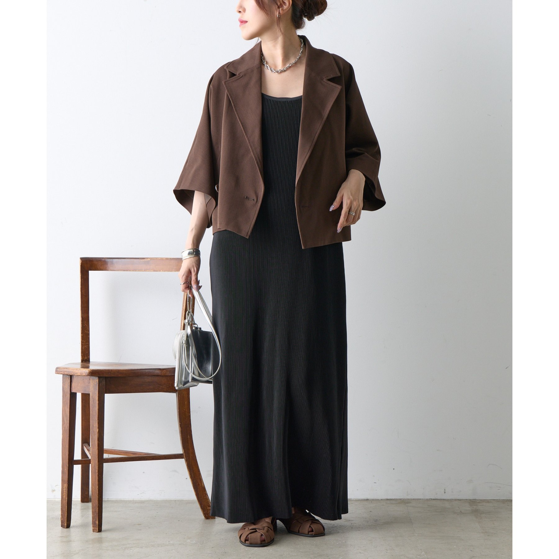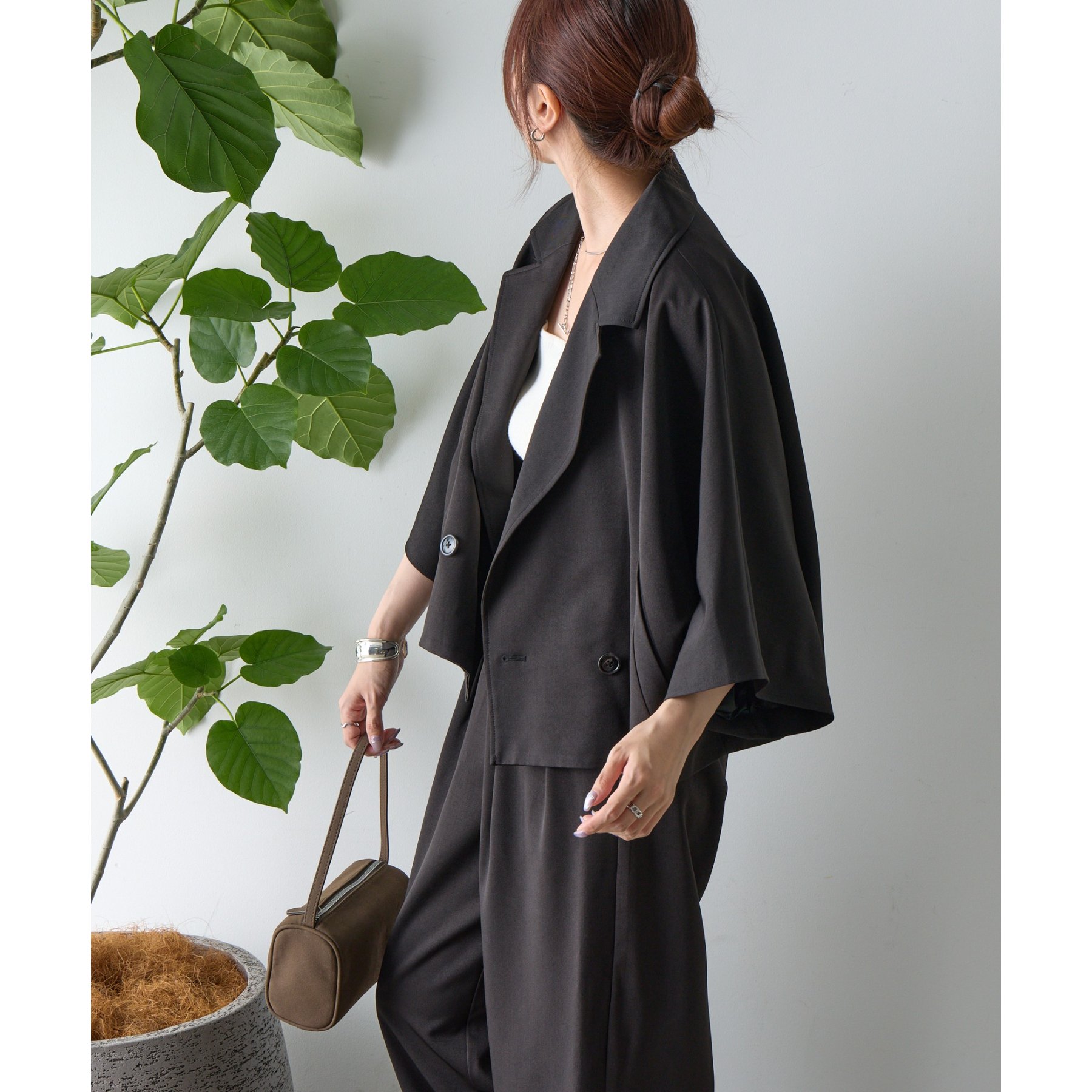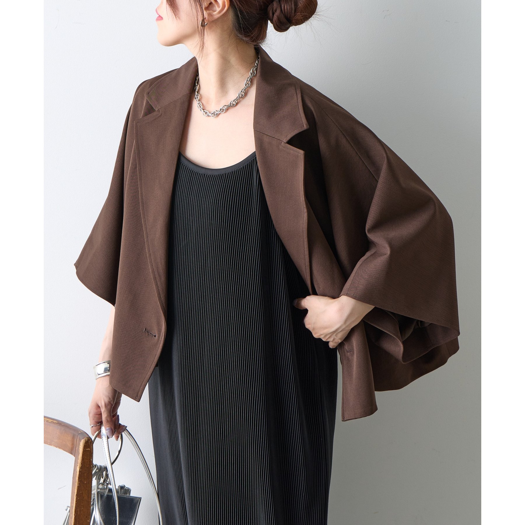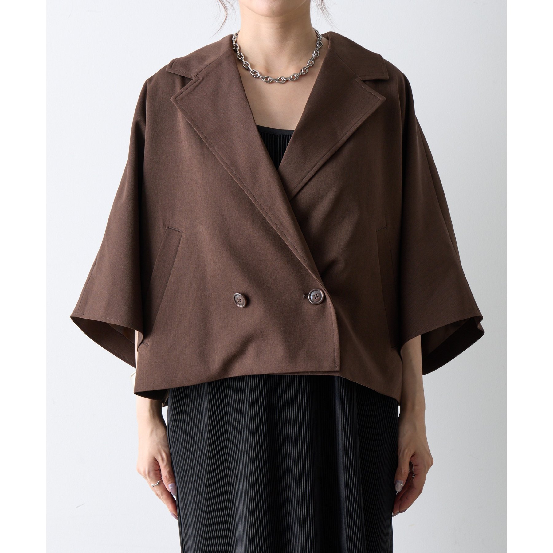 クラシックなテーラードデザインとショートの丈感のバランスがかわいく、ビジネスからカジュアルまで幅広いシーンにマッチします。