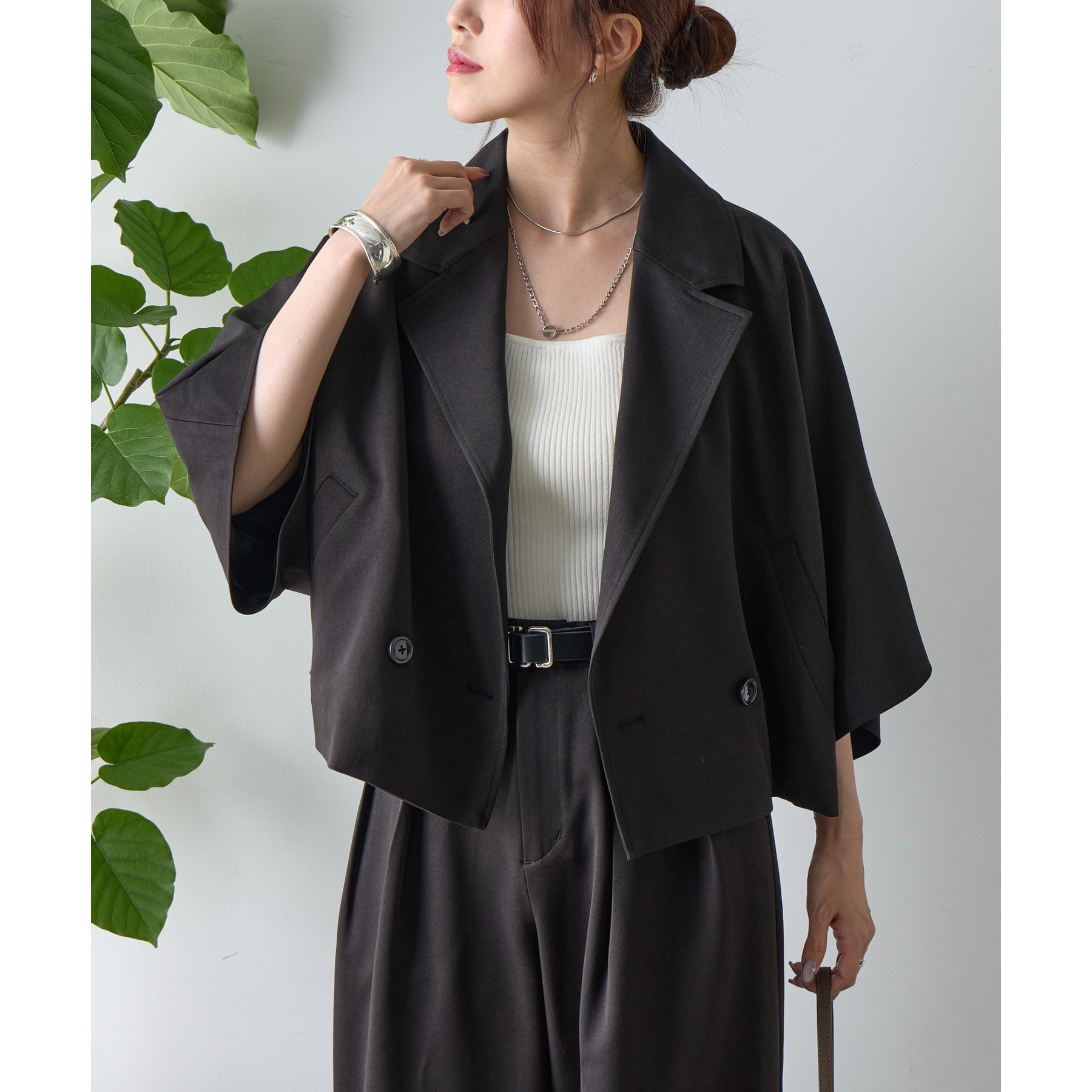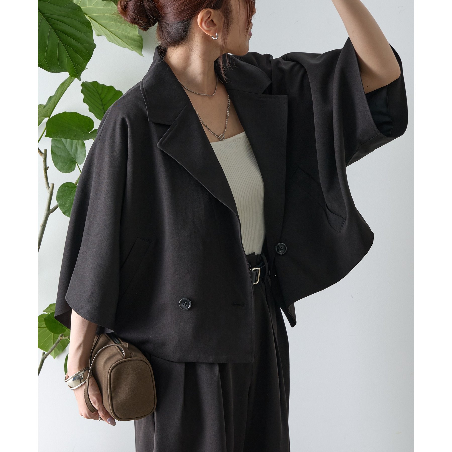 【セットアップ対応】5分袖テーラードショートジャケット
