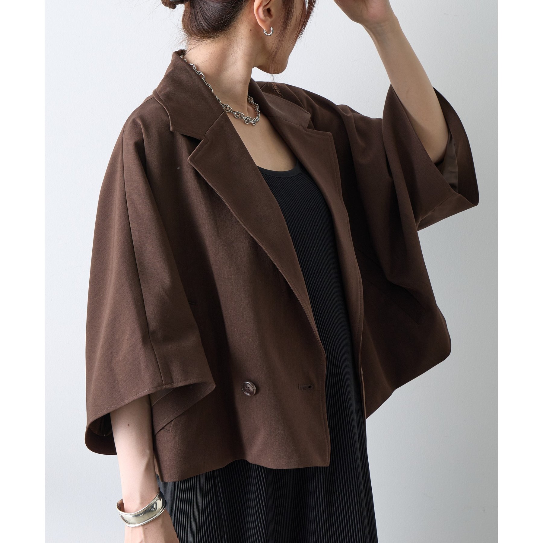 【軽やか5分袖テーラードショートジャケット】