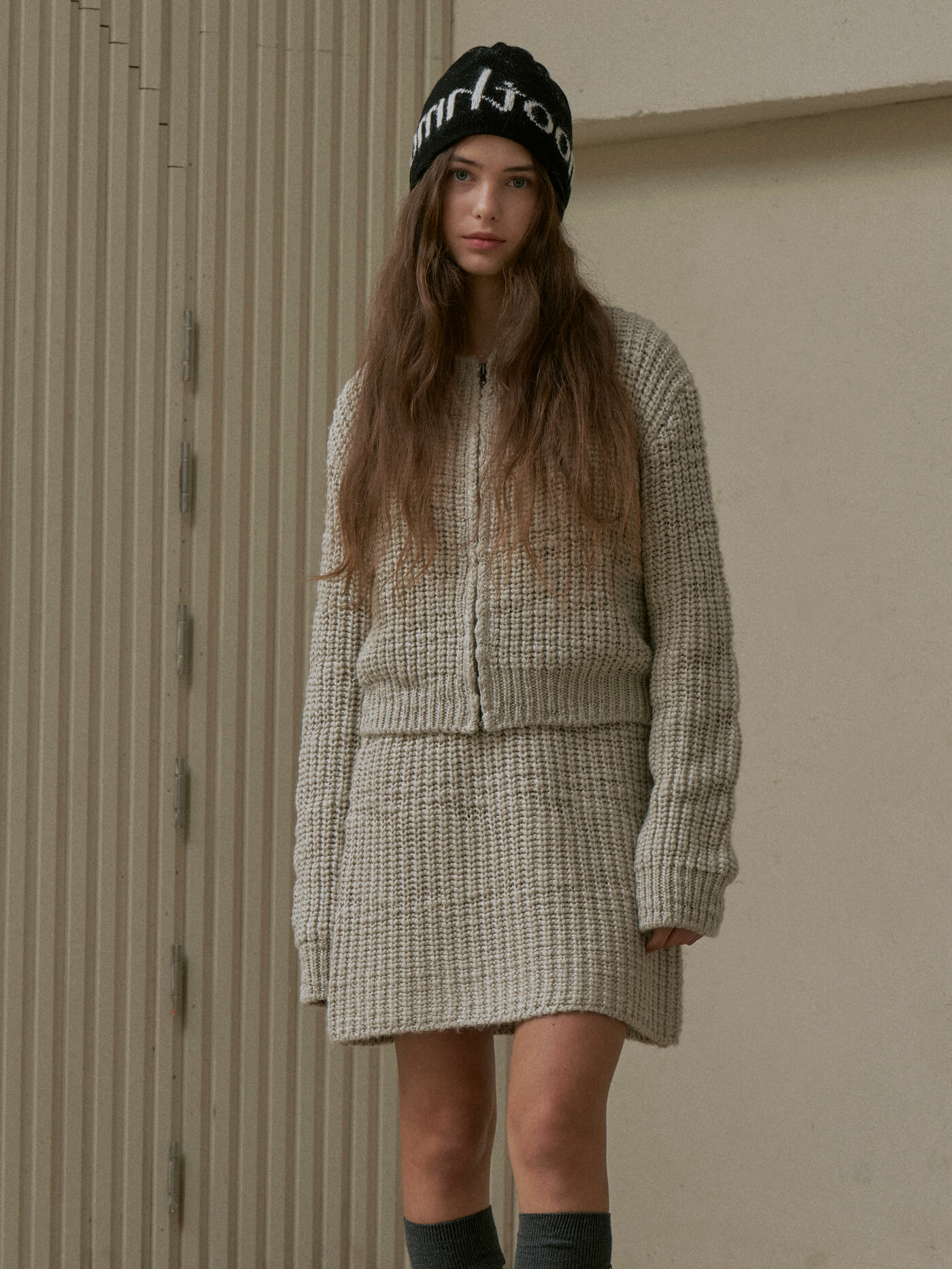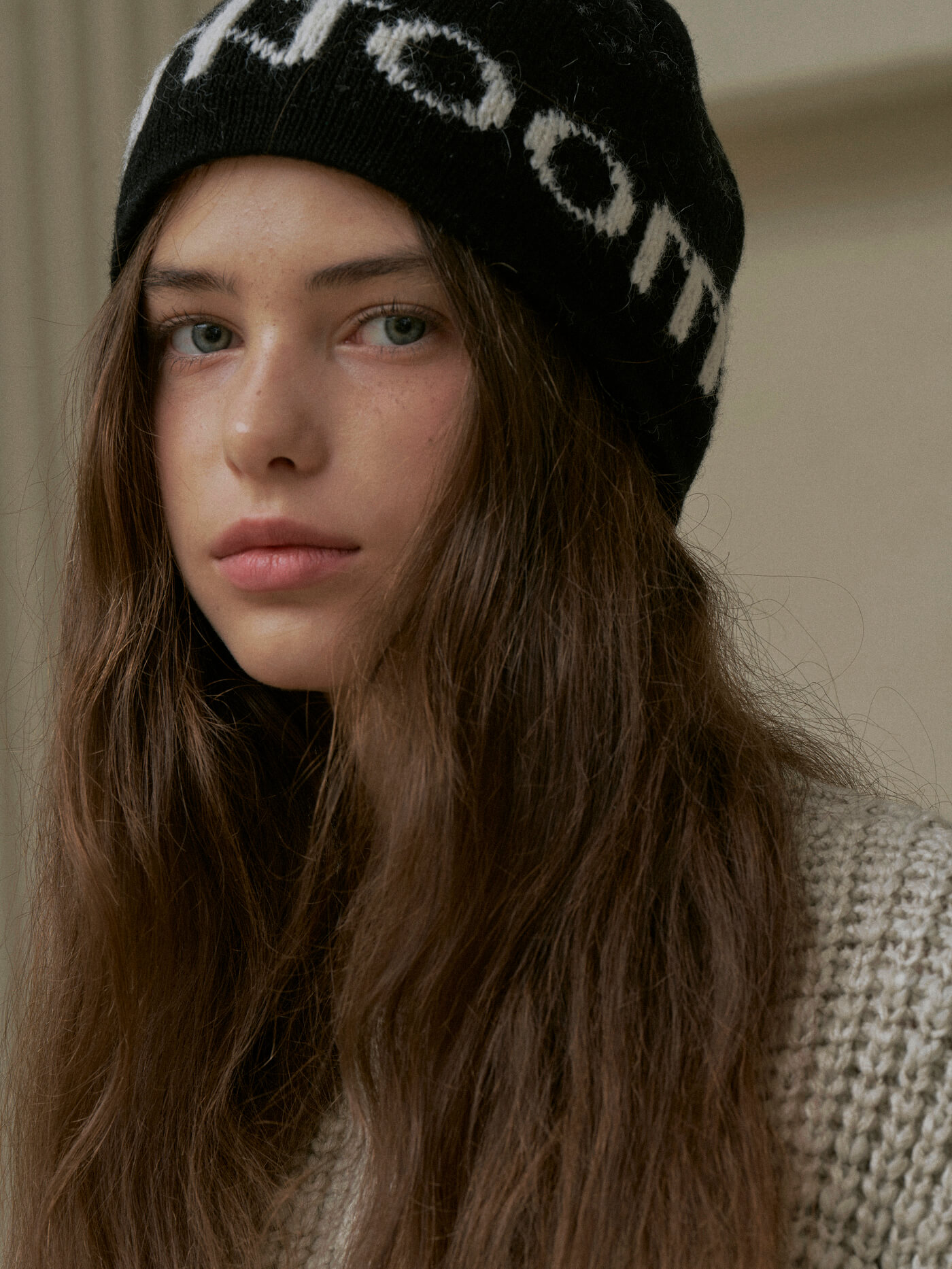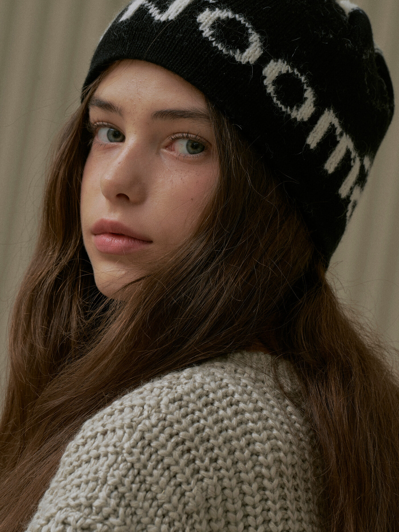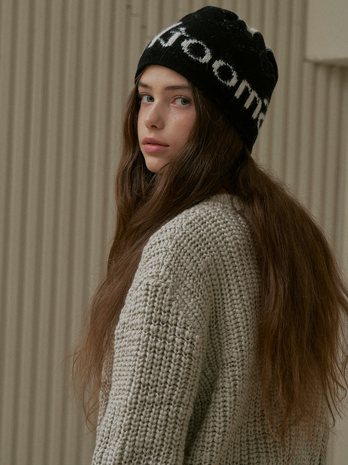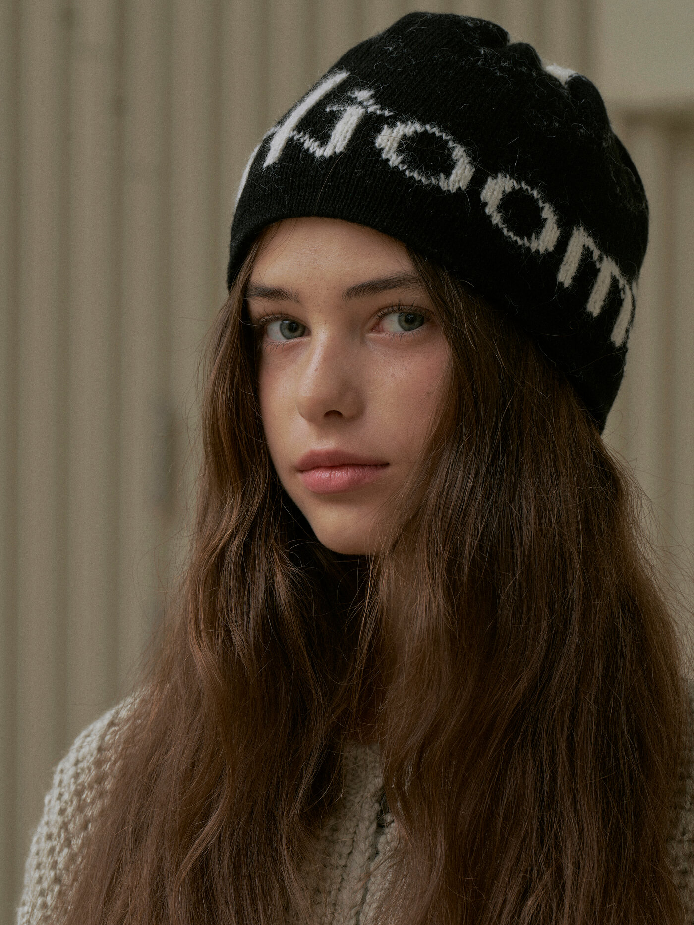 Roomie Logo Knit Hat Cream