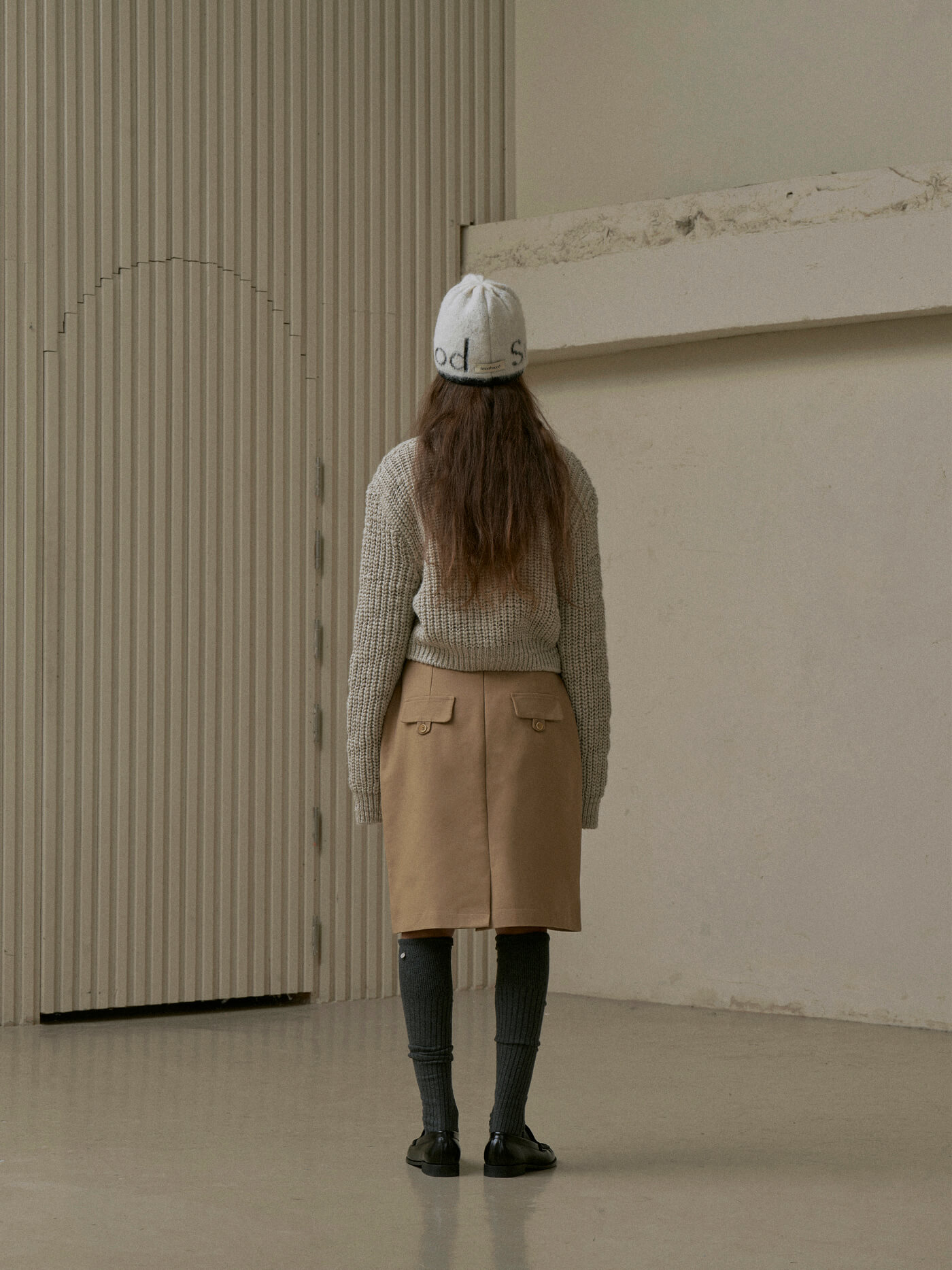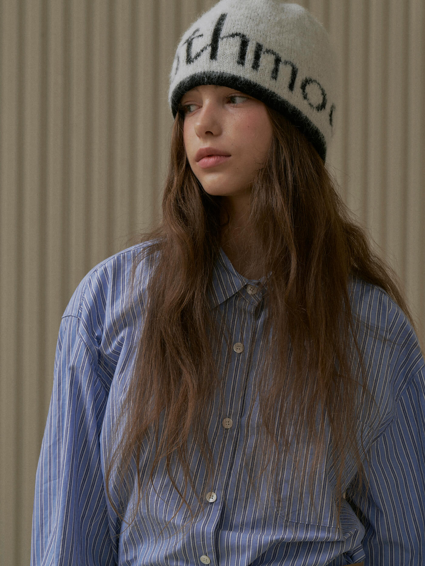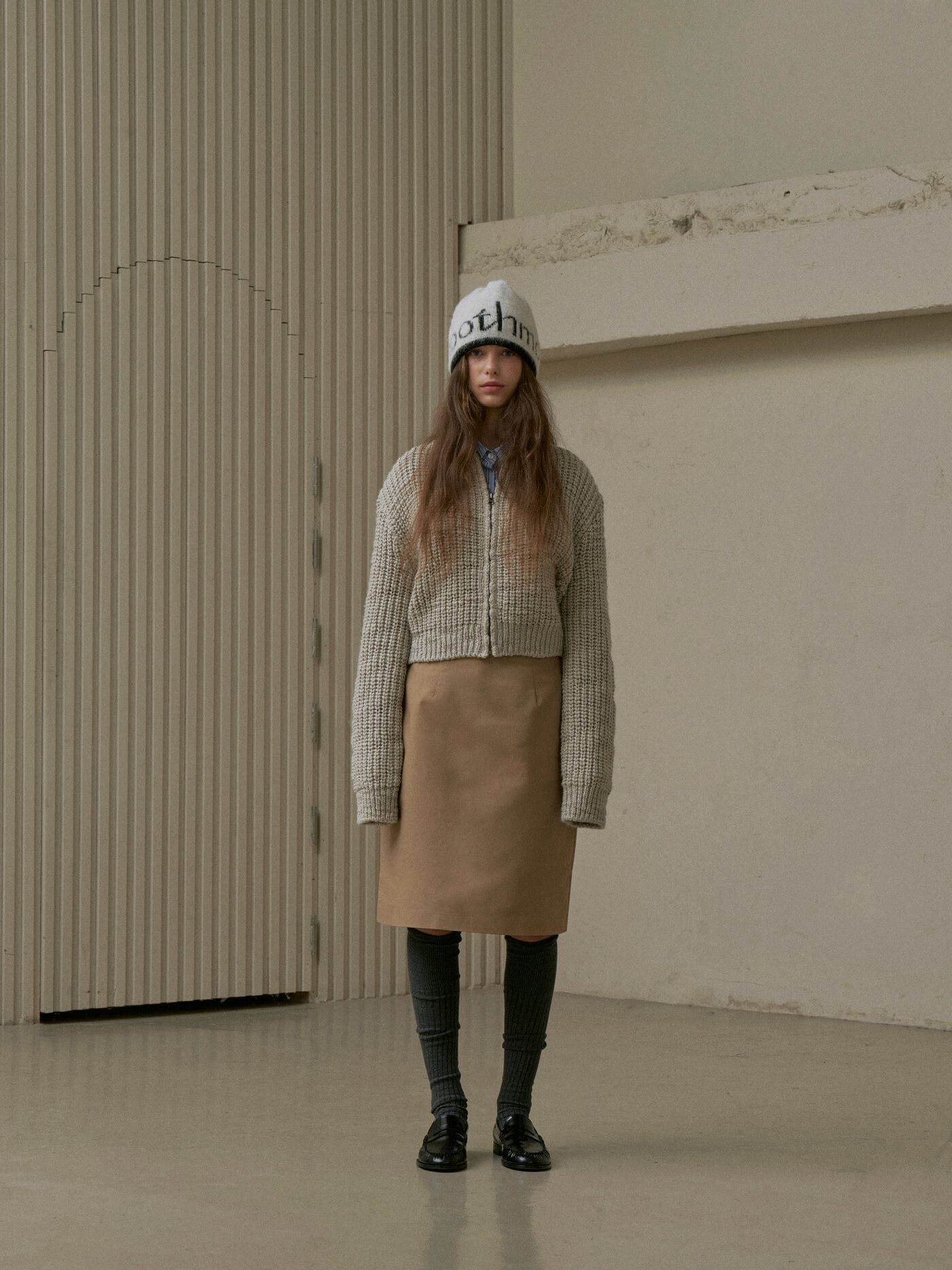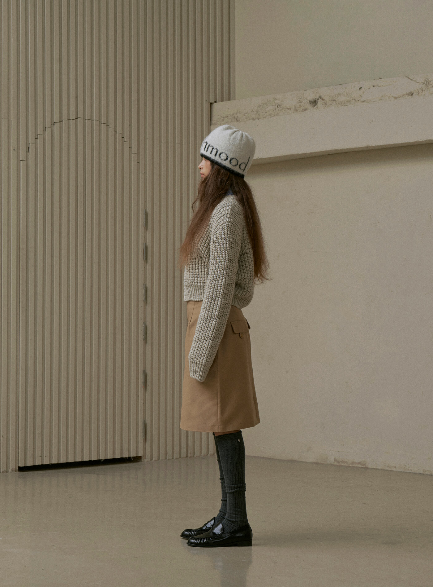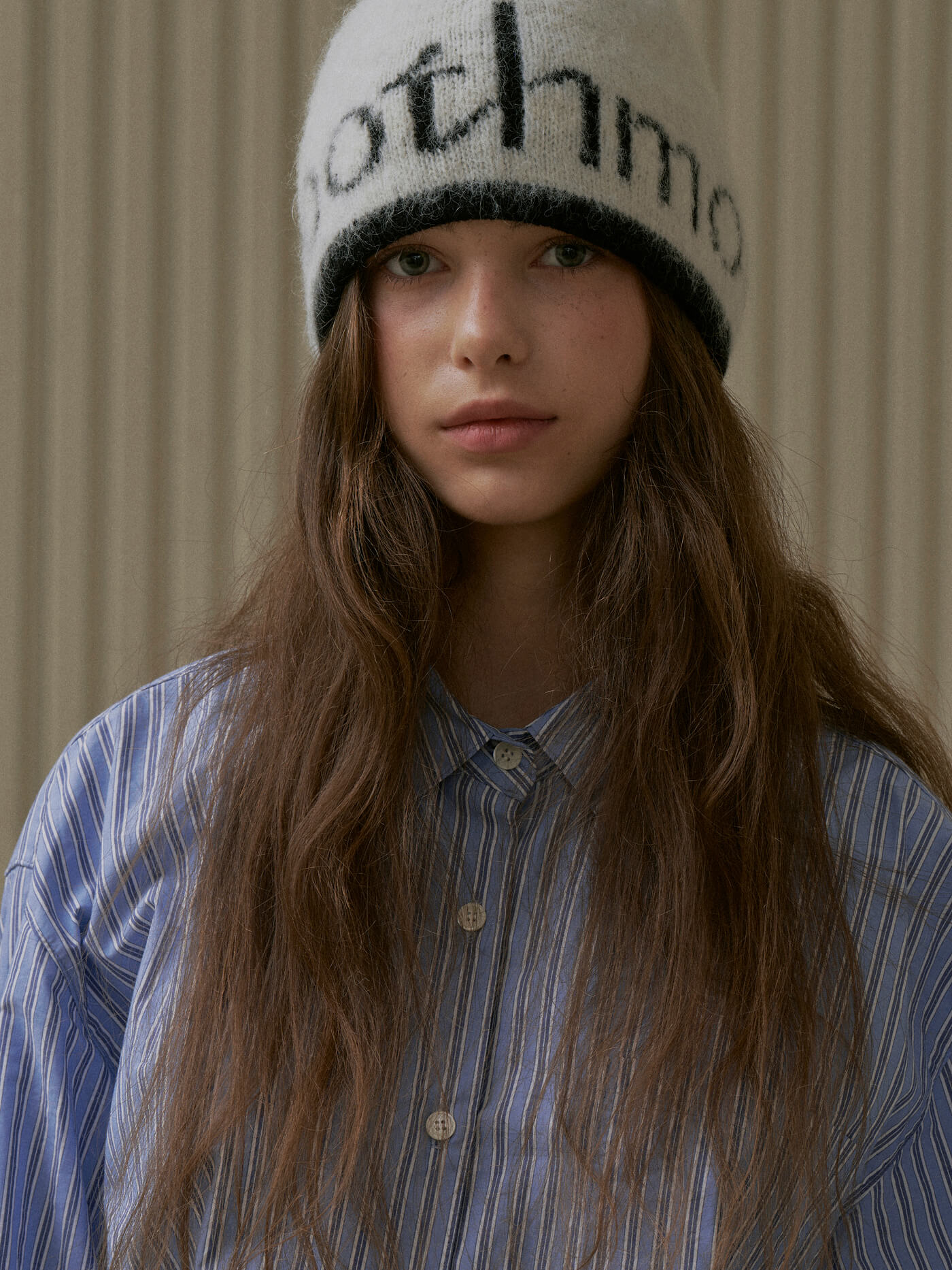 Roomie Logo Knit Hat Cream