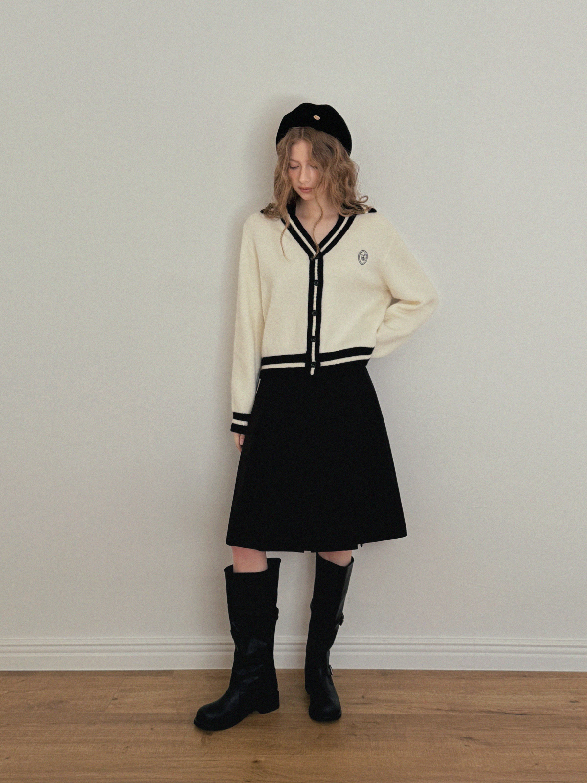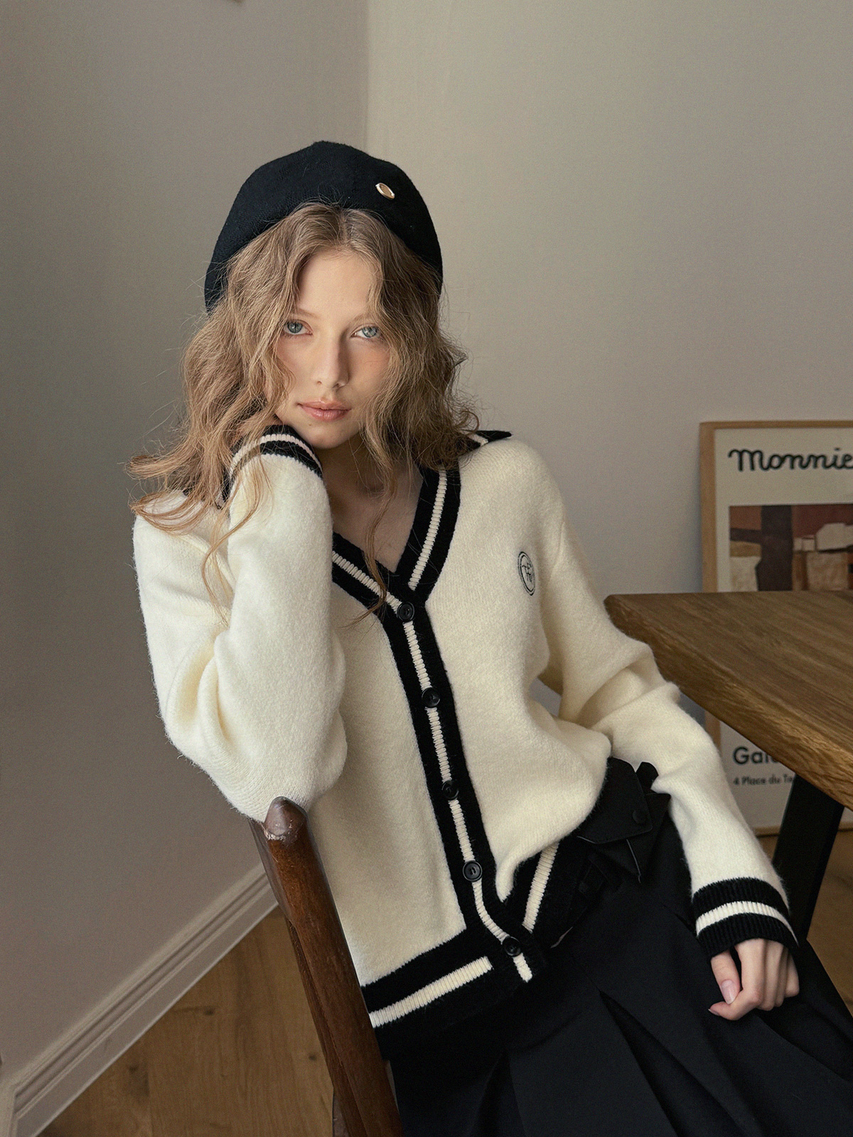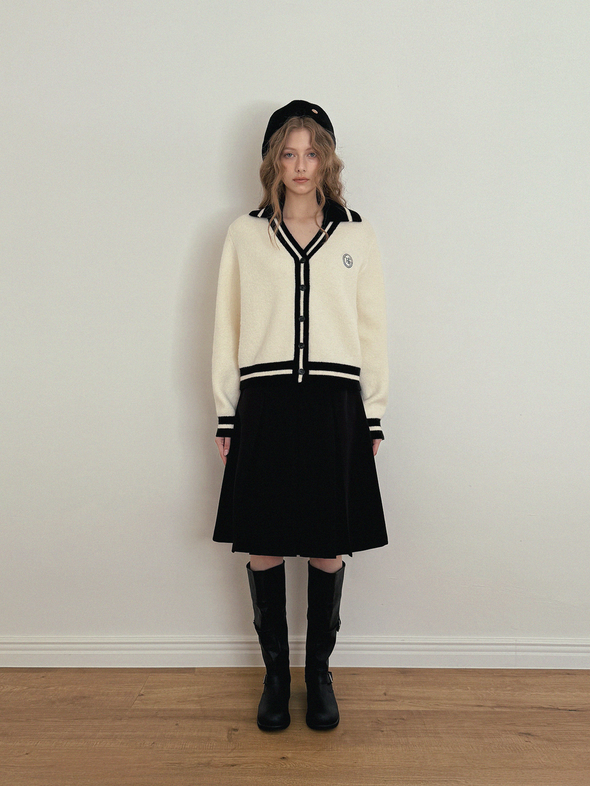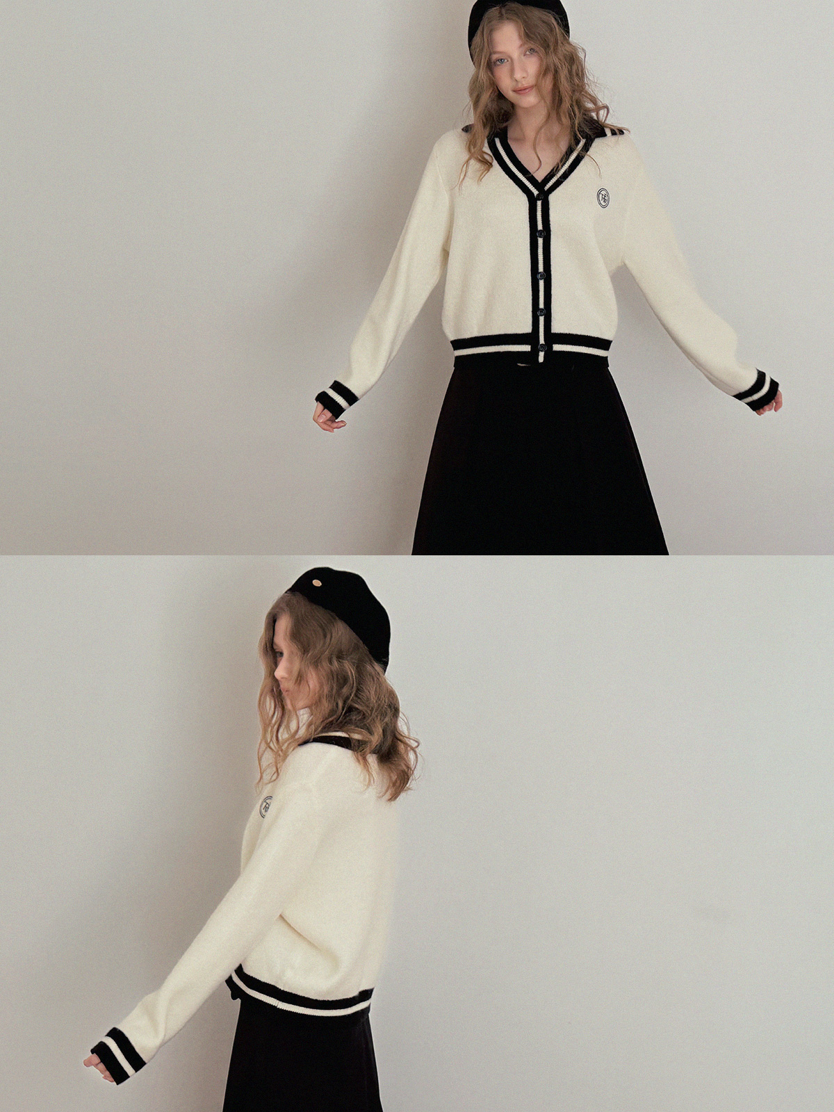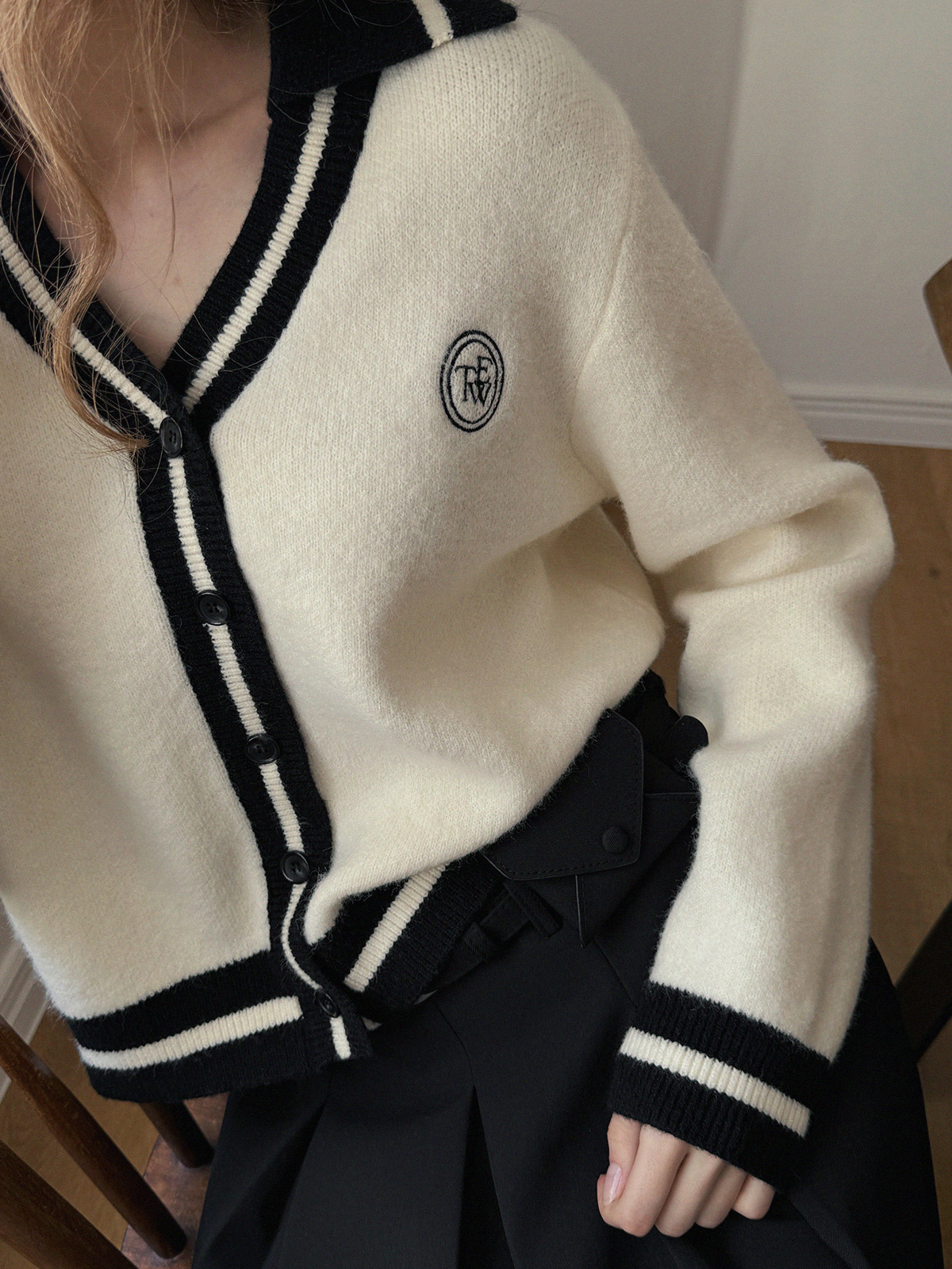 Yurel Contrast Collar Long Sleeve Cardigan